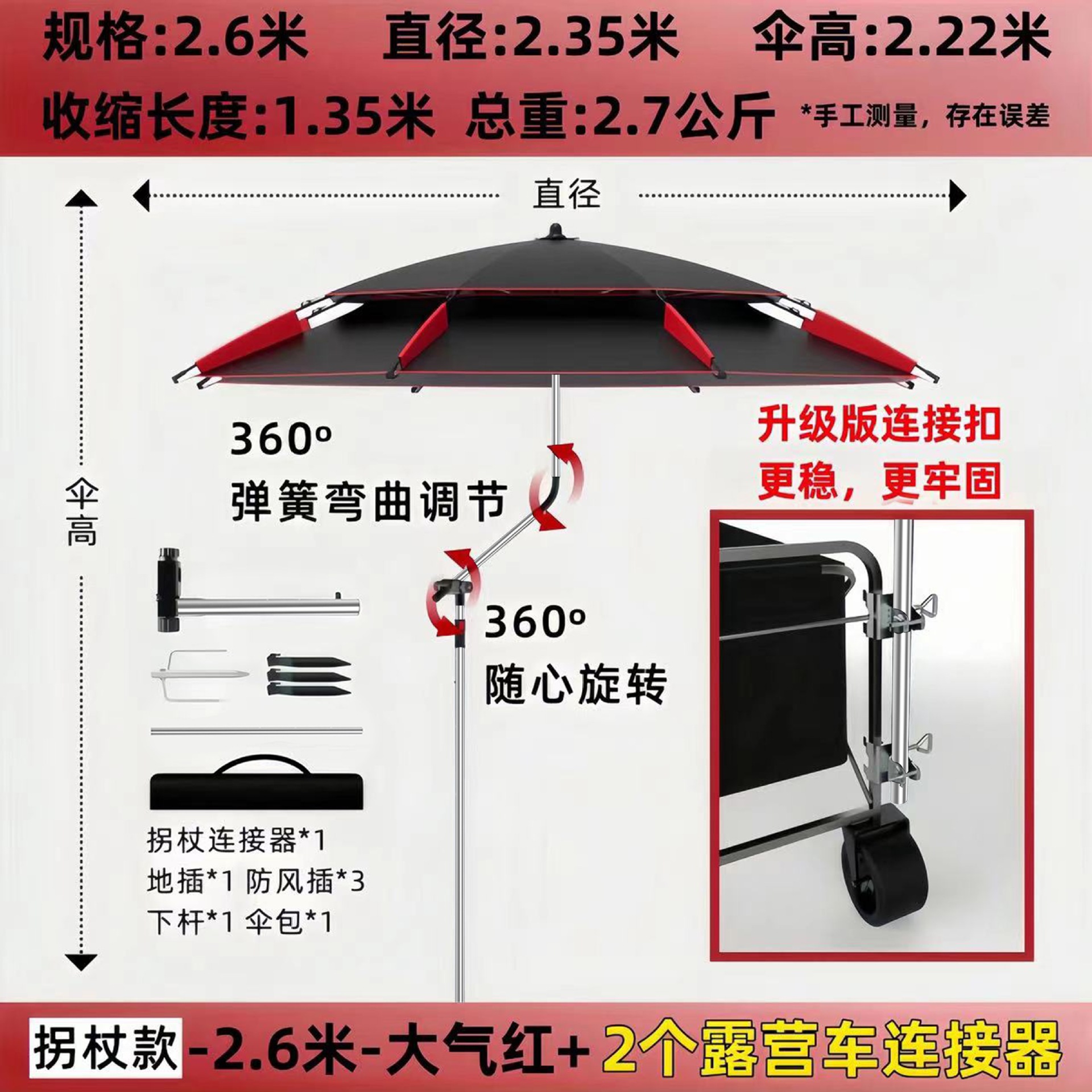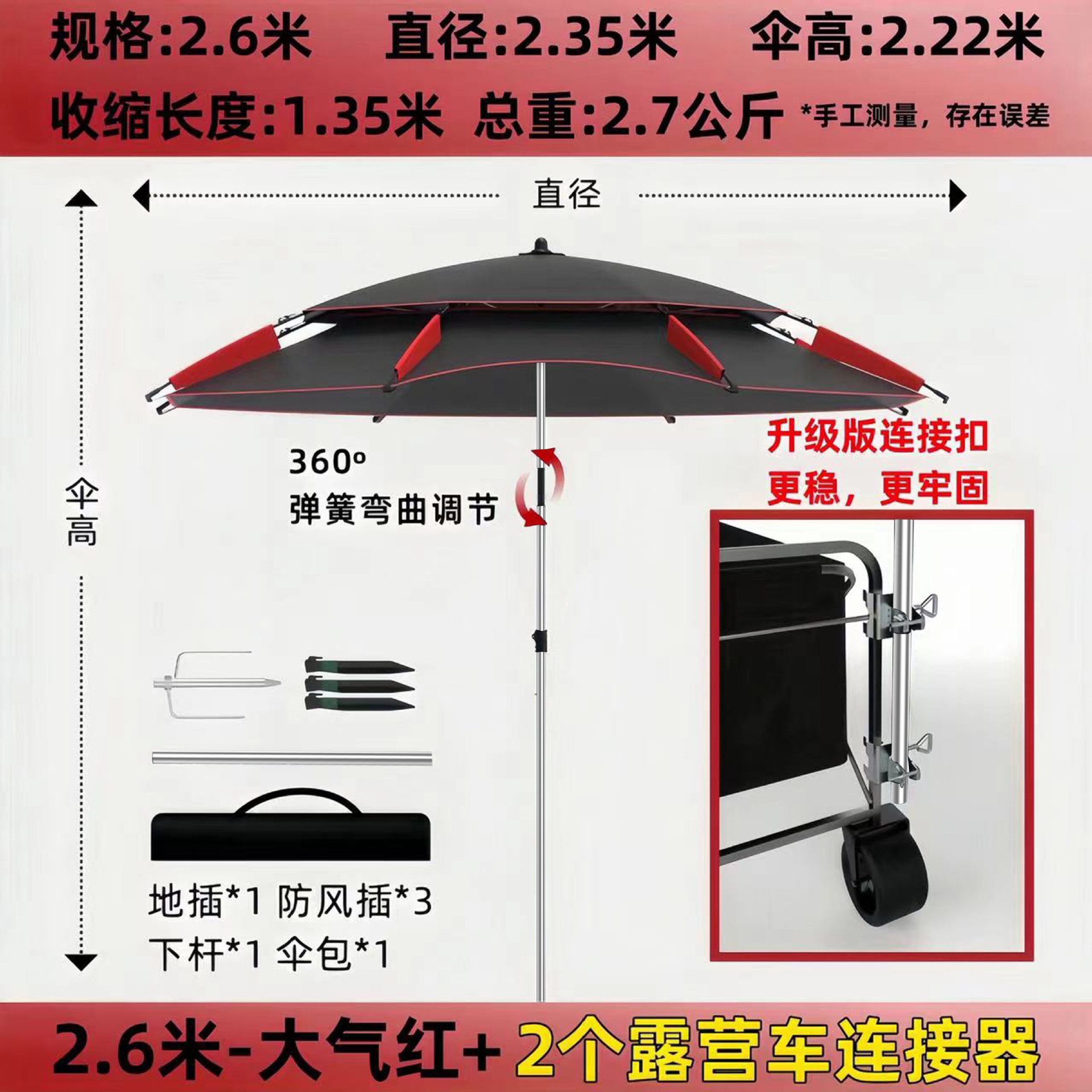 • [목발 모델] 2.6m - 대기 블랙/레드 + 캠핑카 커넥터 2개