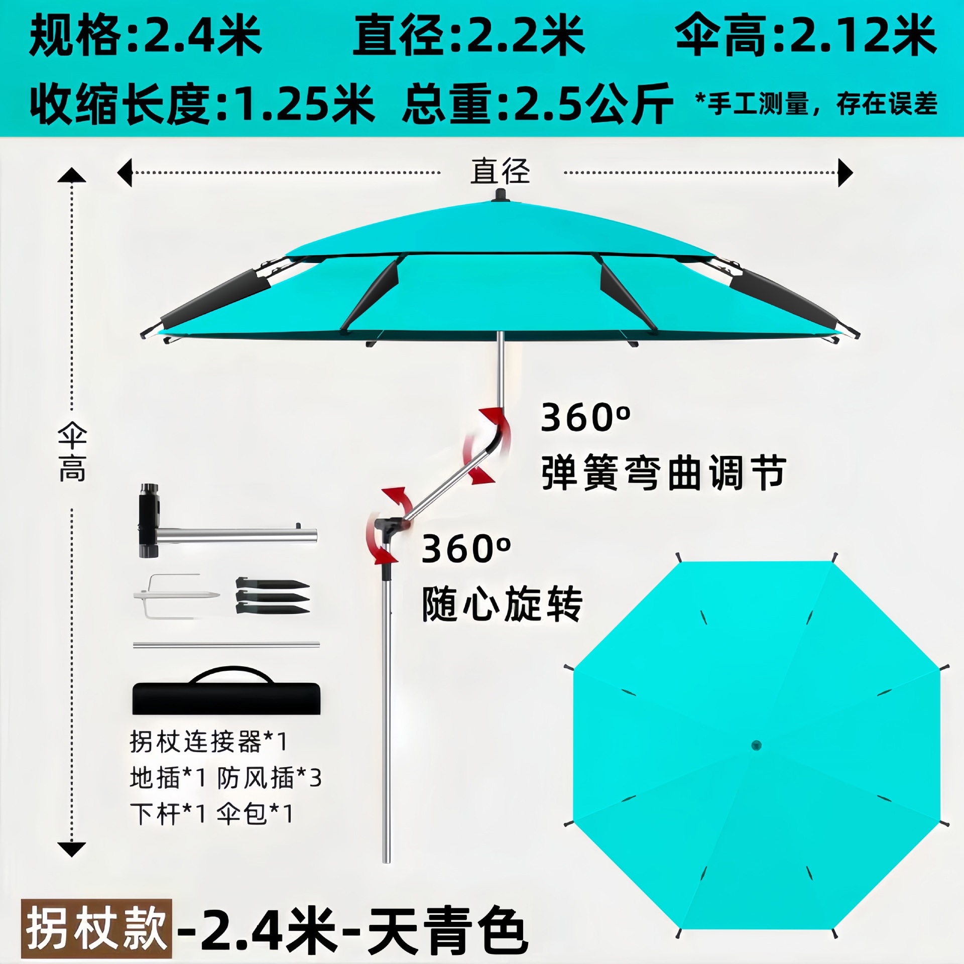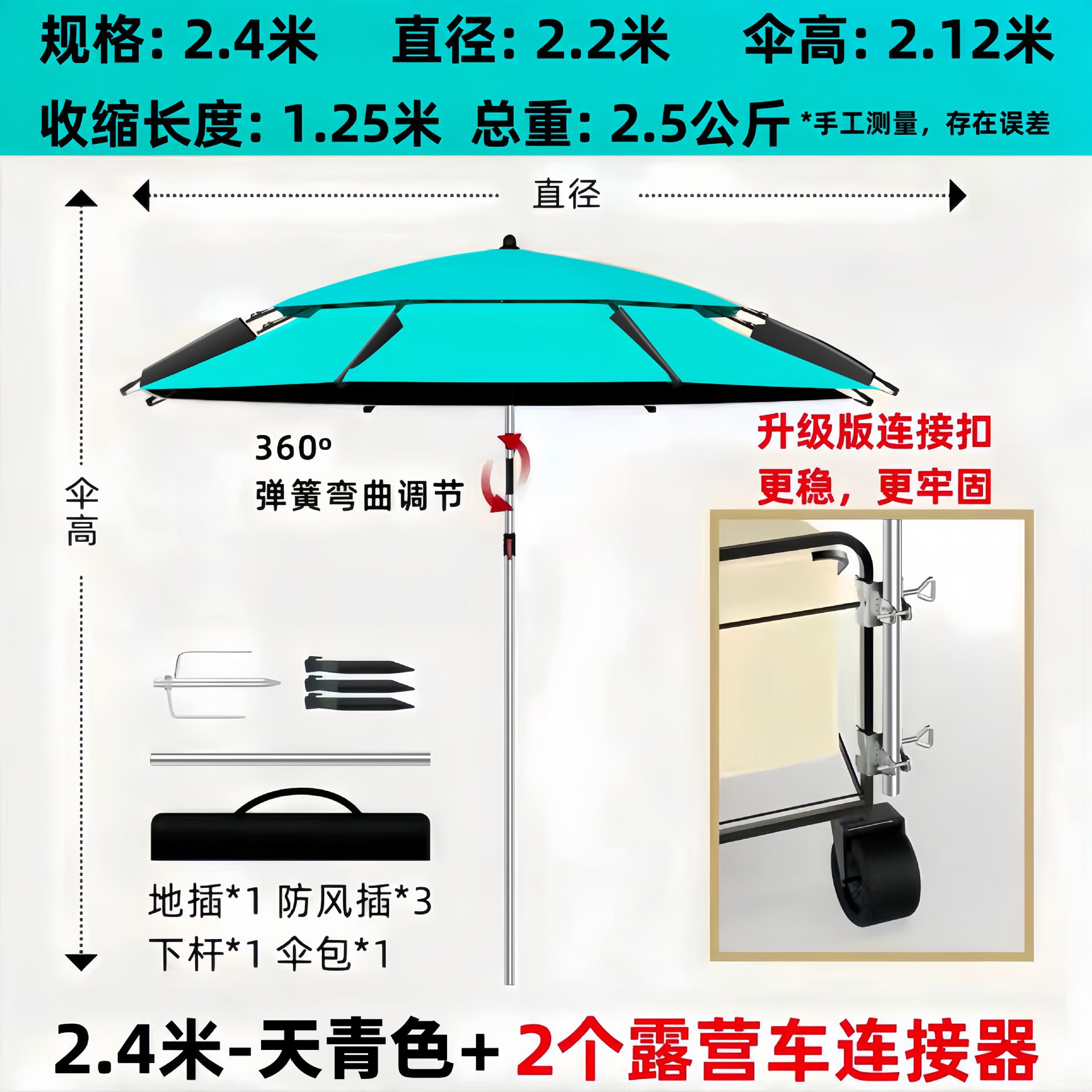 • [목발 모델] 2.4m - 하늘색 + 캠핑카 커넥터 2개