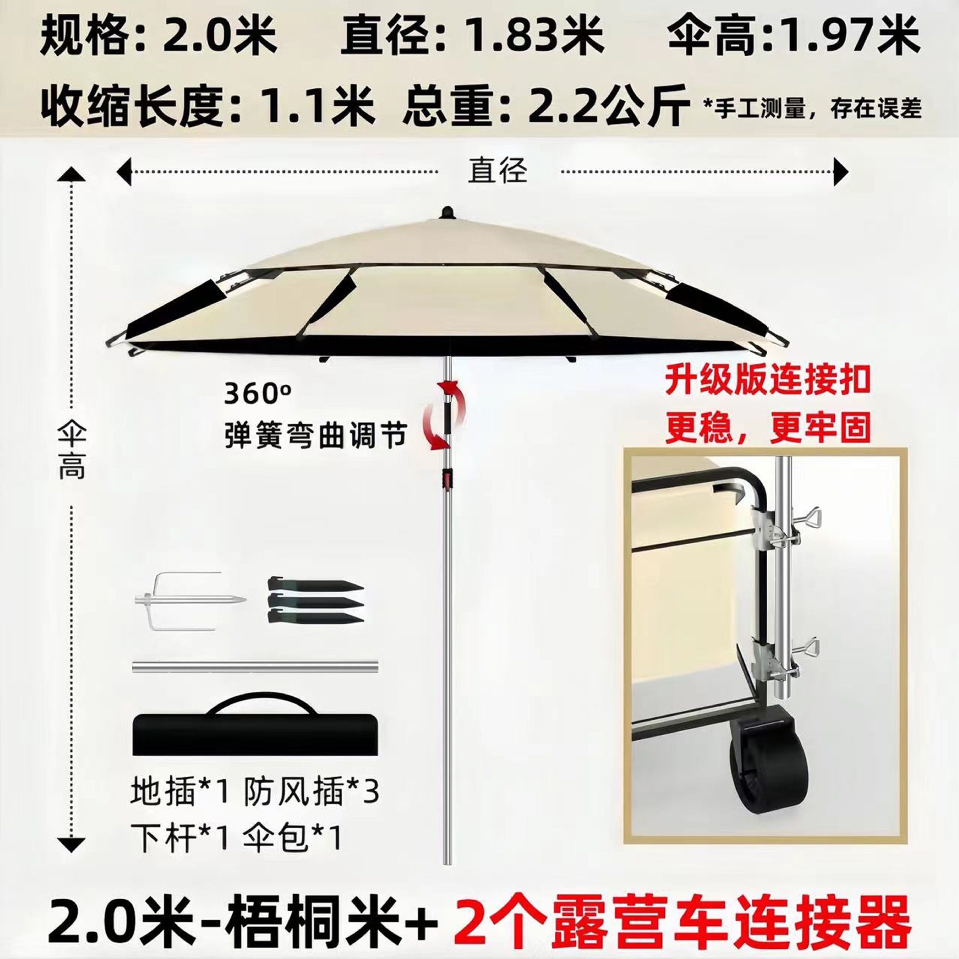 • [목발 모델] 2.0m - 우통 쌀 + 캠핑카 커넥터 2개