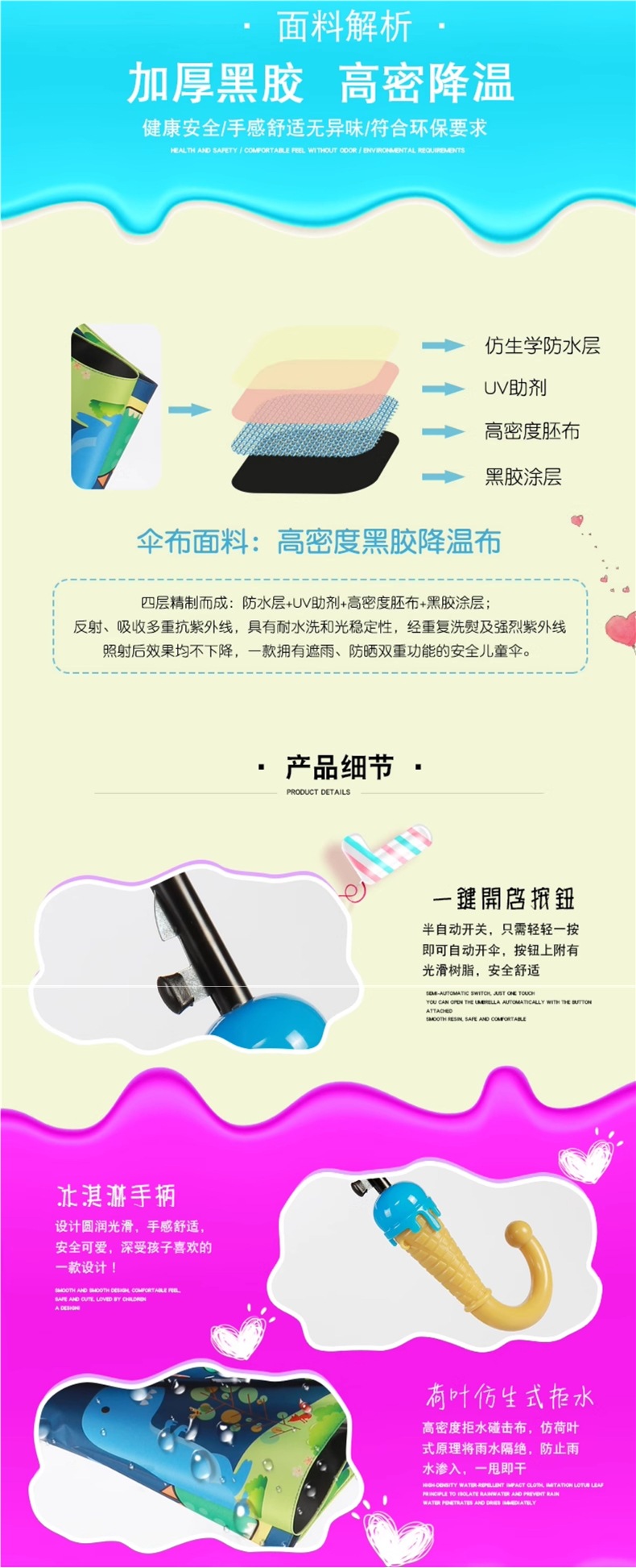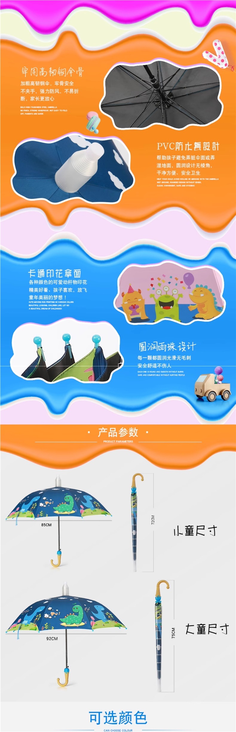 어린이 우산 소년 유치원 초등학생 자동 비 또는 빛 아기 공룡 태양 우산