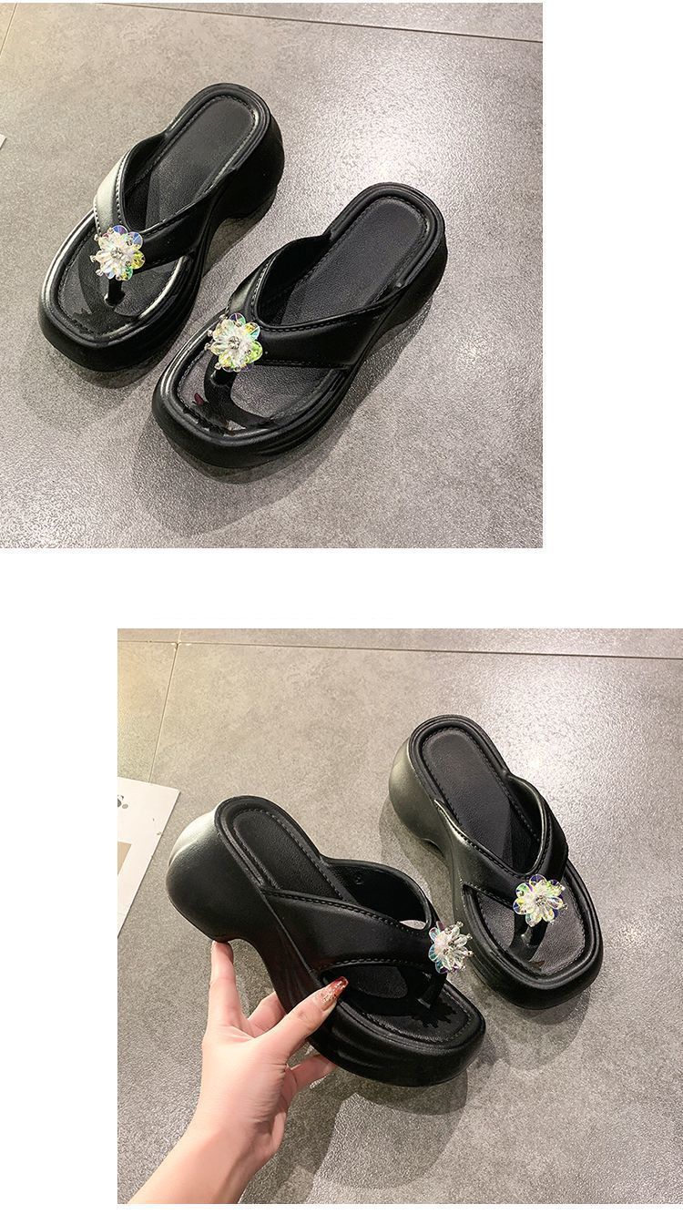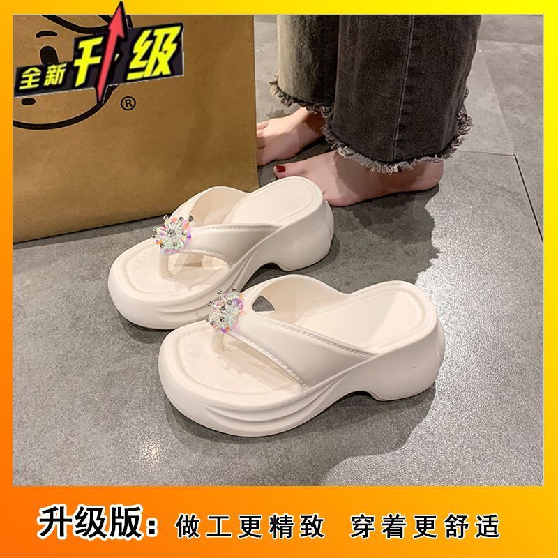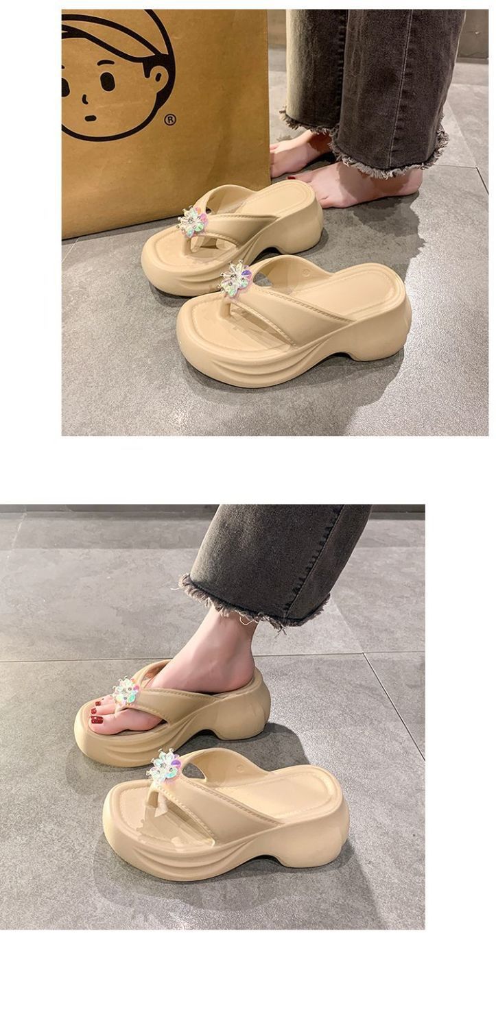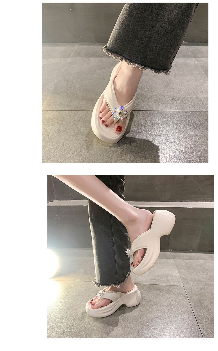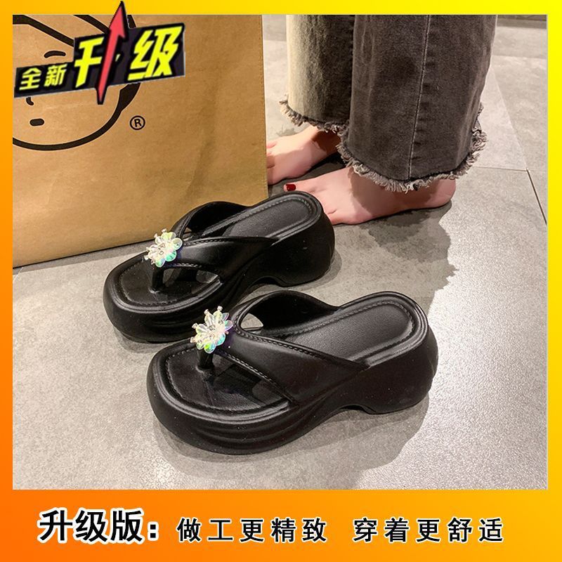 여성을 위한 틈새 디자인 플랫폼 힐 샌들 2025 여름 새로운 두꺼운 밑창 달콤한 높이 증가 플립 플롭 여성용 겉옷스토어 가기