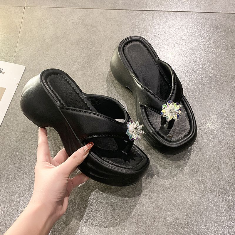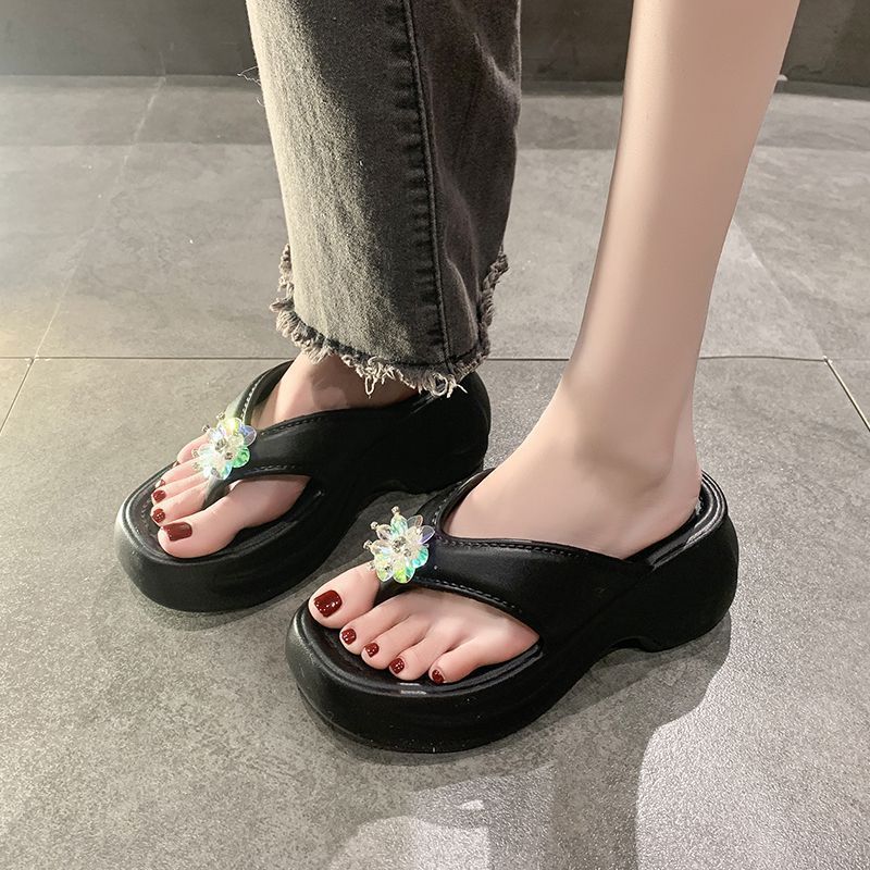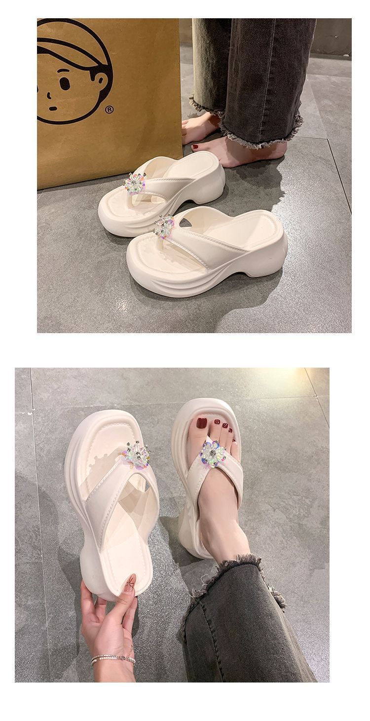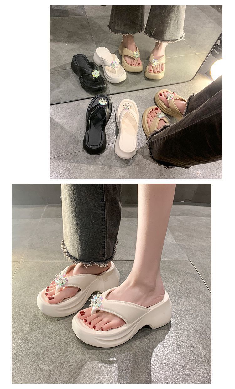 여성을 위한 틈새 디자인 플랫폼 힐 샌들 2025 여름 새로운 두꺼운 밑창 달콤한 높이 증가 플립 플롭 여성용 겉옷스토어 가기