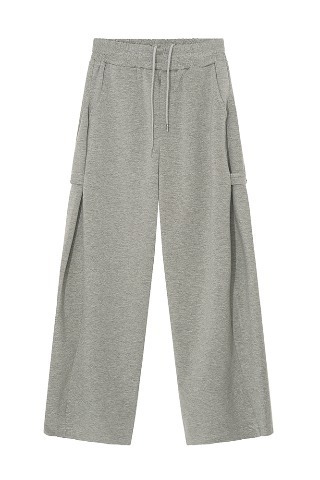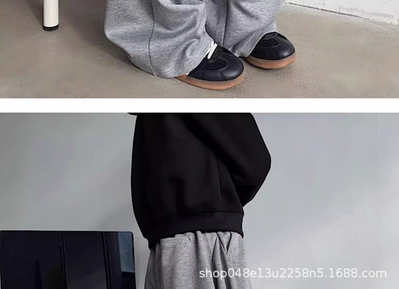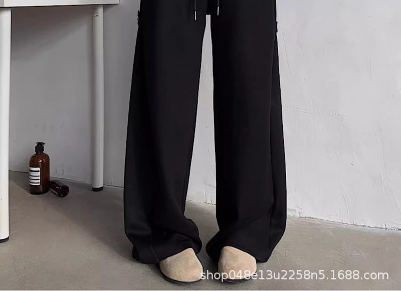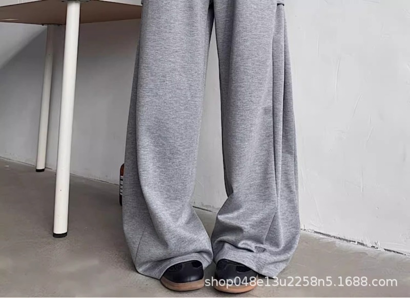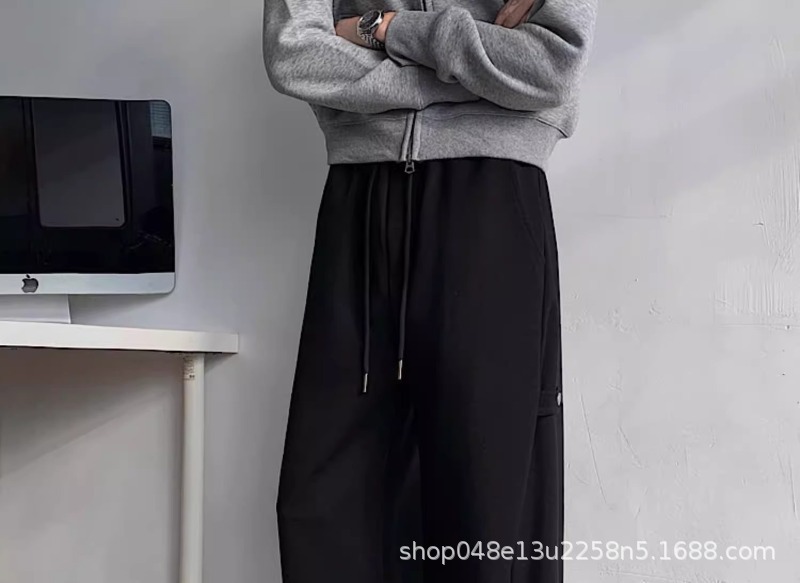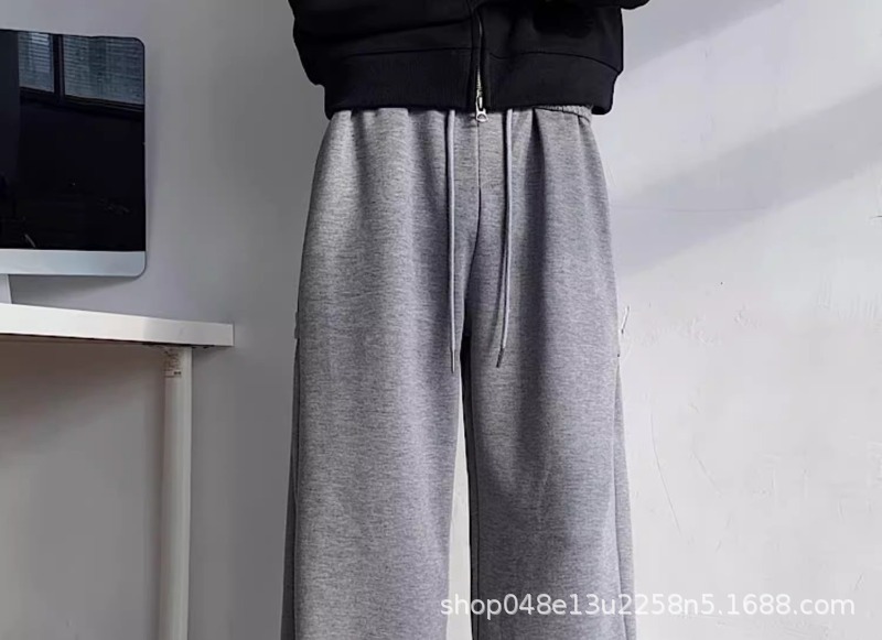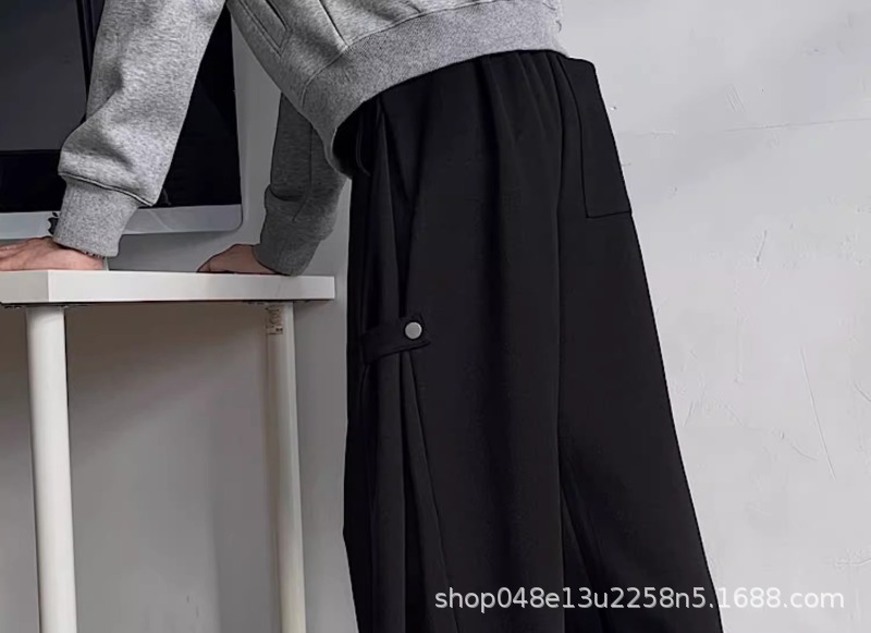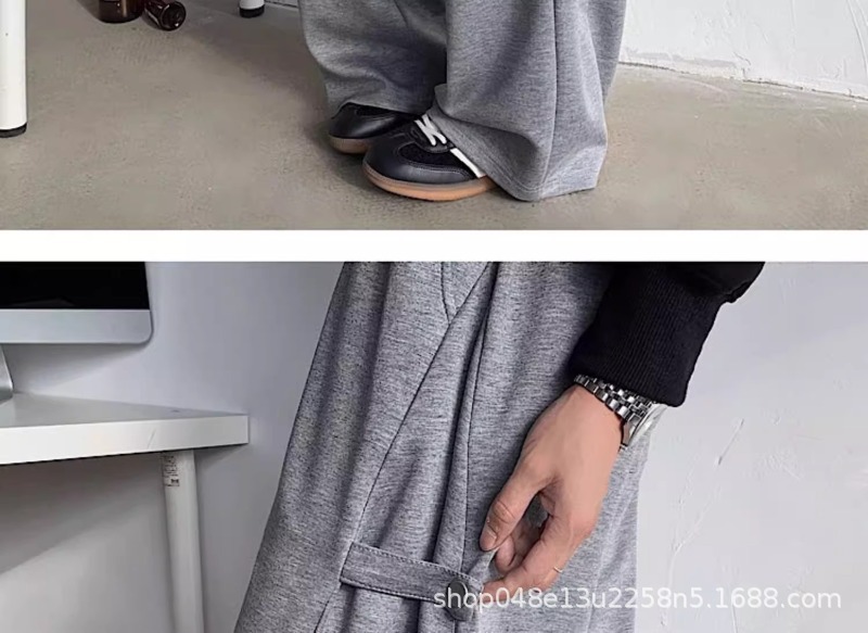 스트랩 디자인이 돋보이는 남성용 고급 그레이 헤비급 와이드 레그 스포츠 팬츠, 캐주얼 팬츠, 루즈한 드레이프 바닥 길이 팬츠스토어 가기