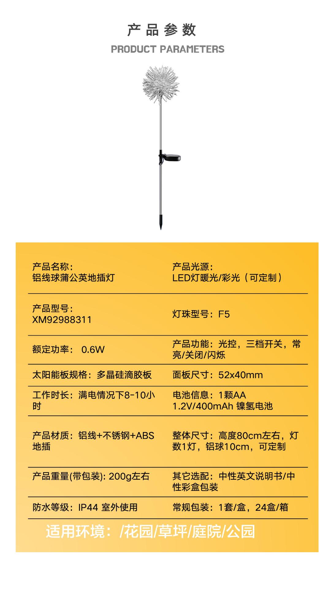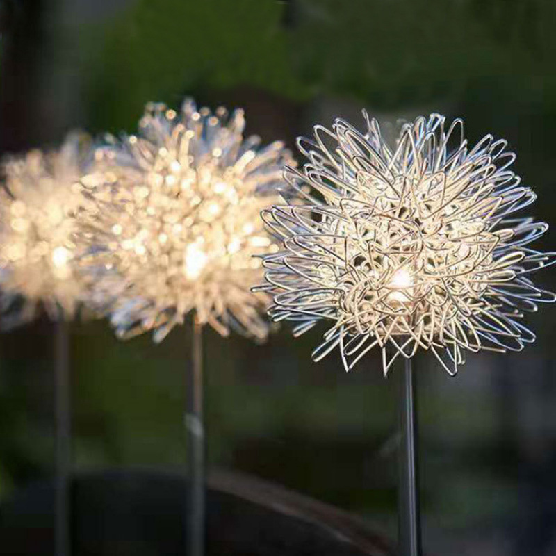 알루미늄 와이어 램프 태양 광 발광 민들레 램프 알루미늄 와이어 볼 플러그인 램프 야외 방수 정원 잔디 램프 조경 램프