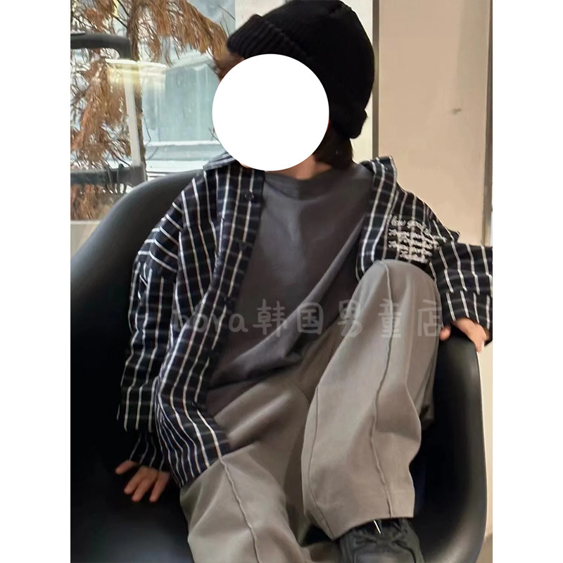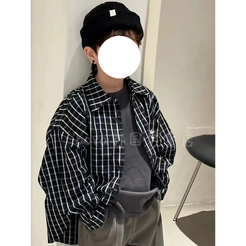 소년 긴팔 셔츠 재킷 2025 새로운 봄 유행 브랜드 스트리트 핸섬 스타일 아동 셔츠 큰 어린이 격자 무늬 면화스토어 가기