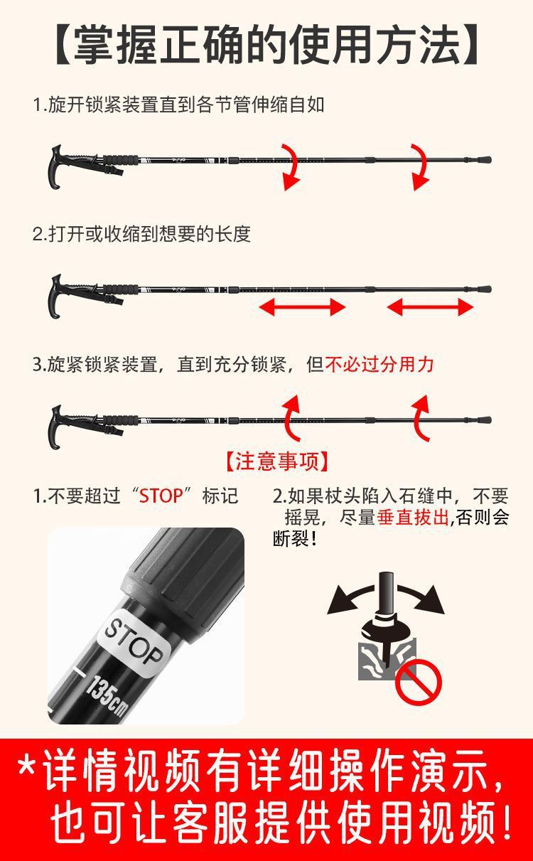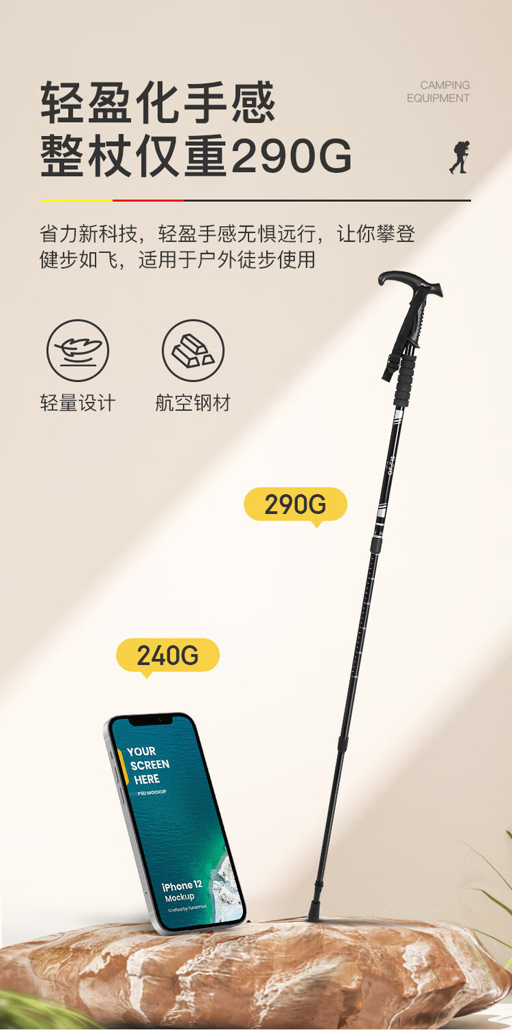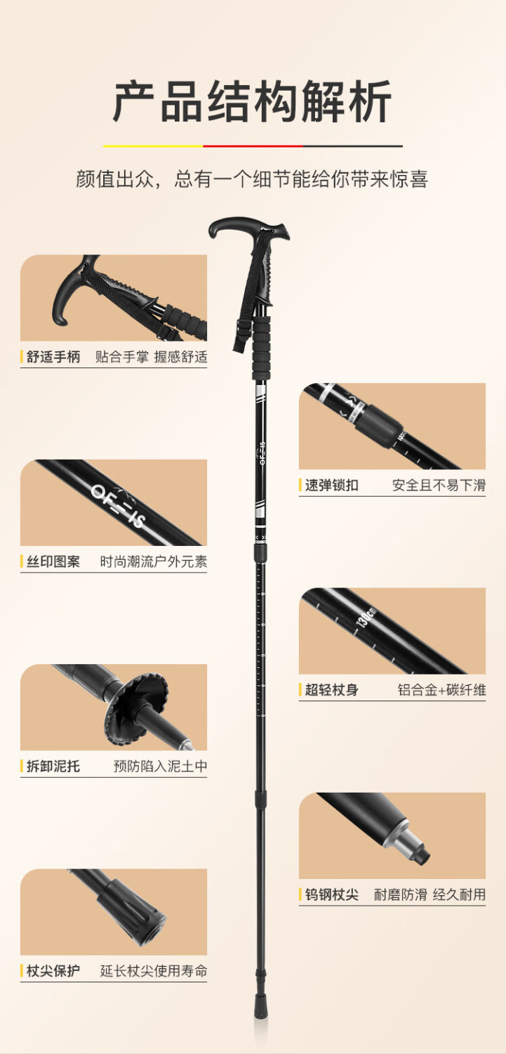 ZSDOFEIS 트레킹 스틱 전문 야외 등산 및 하이킹 장비 지팡이 노인을위한 초경량 접이식 텔레스코픽 지팡이