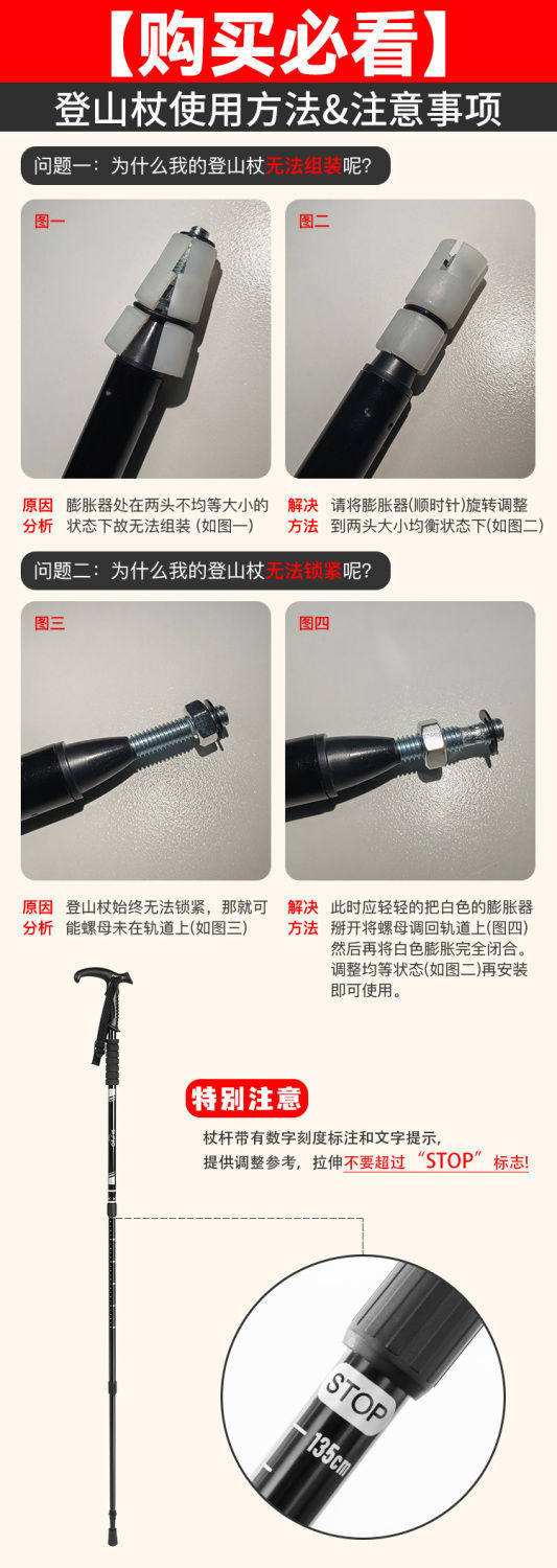 ZSDOFEIS 트레킹 스틱 전문 야외 등산 및 하이킹 장비 지팡이 노인을위한 초경량 접이식 텔레스코픽 지팡이스토어 가기