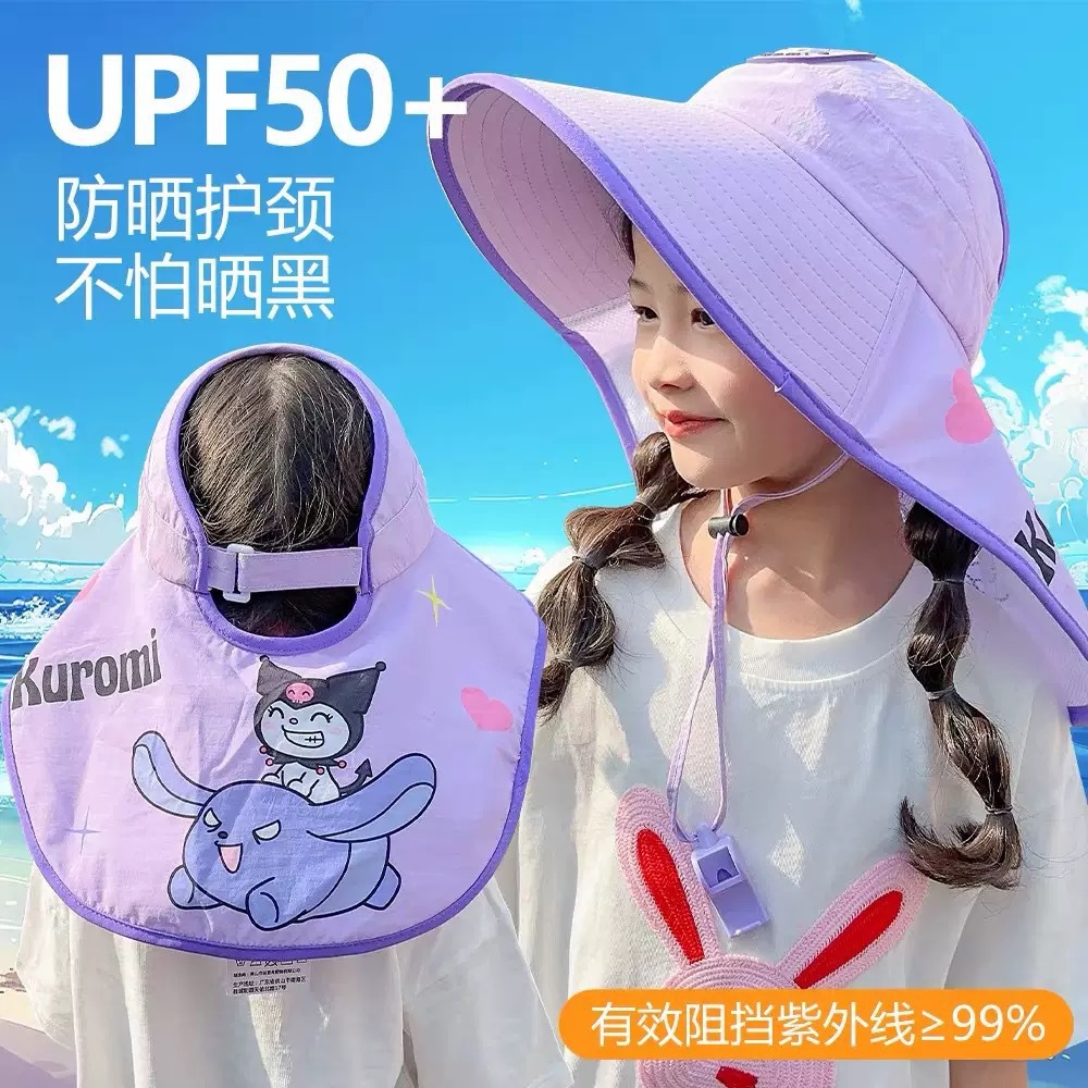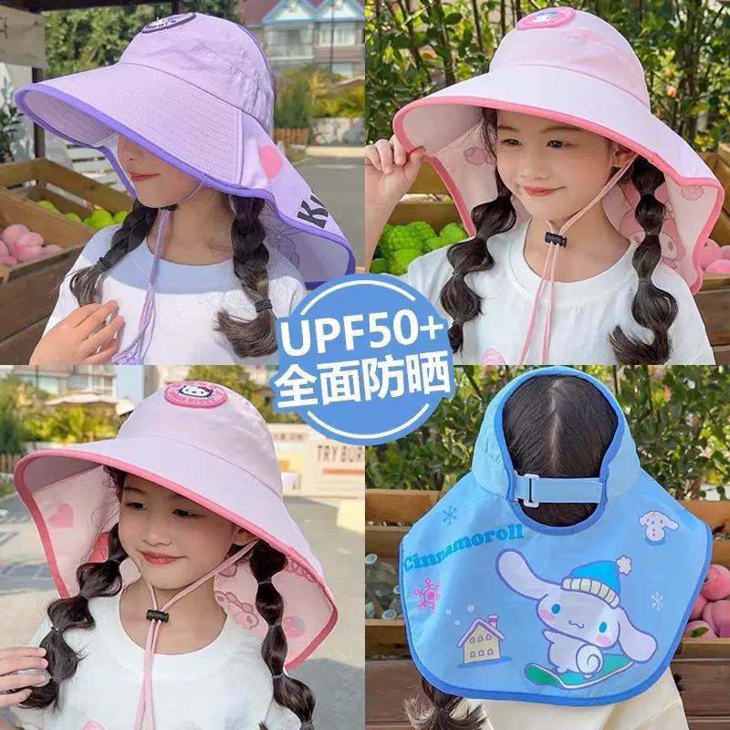 어린이 만화 목도리 모자 여름 큰 챙 소녀 빈 탑 태양 모자 태양 보호 UV 아기 태양 모자