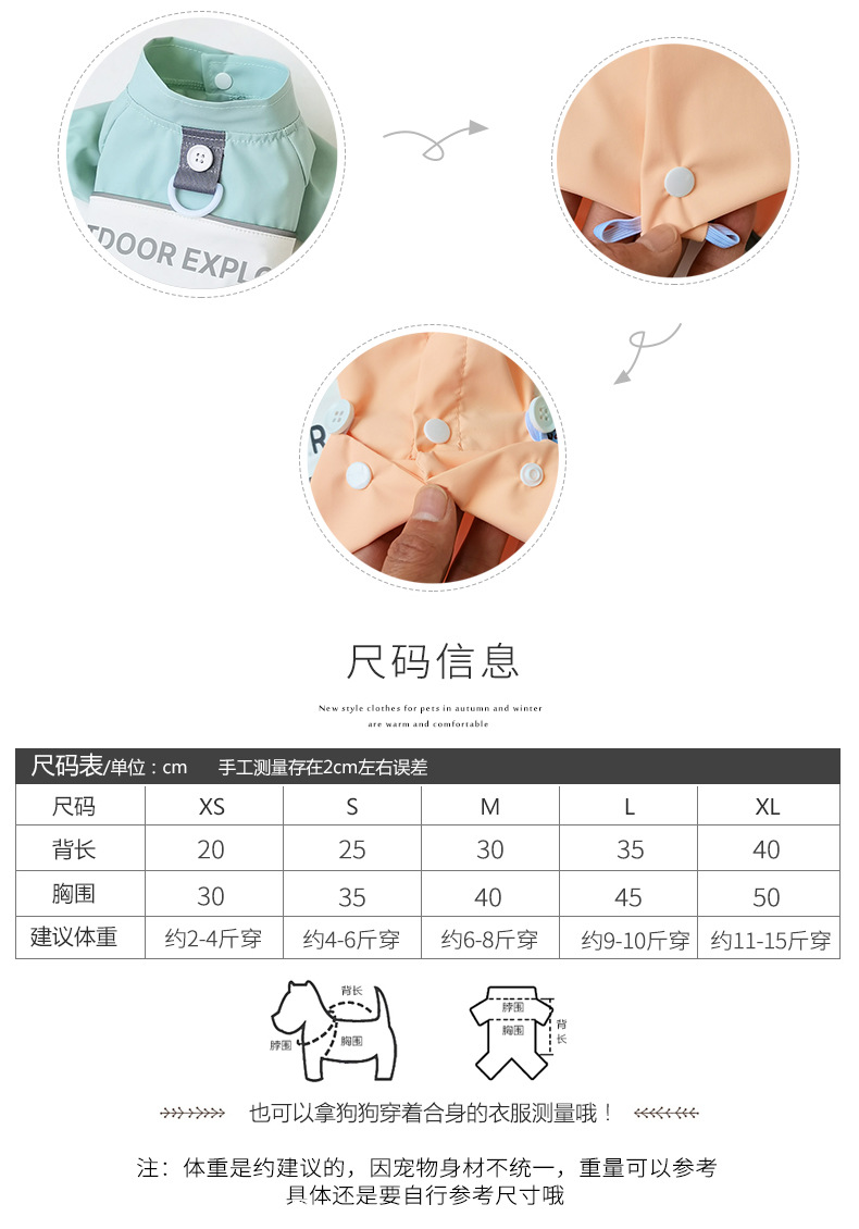 개 옷 통기성 비옷 판초 방수 견인 가능한 4 다리 배꼽 가방 작은 개 애완 동물 6838 국경 간 도매스토어 가기