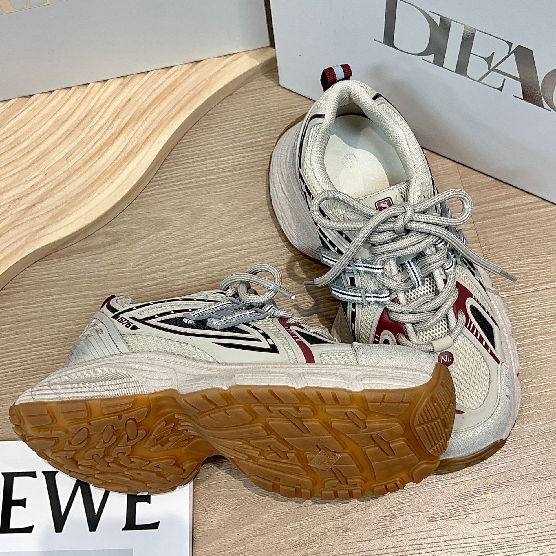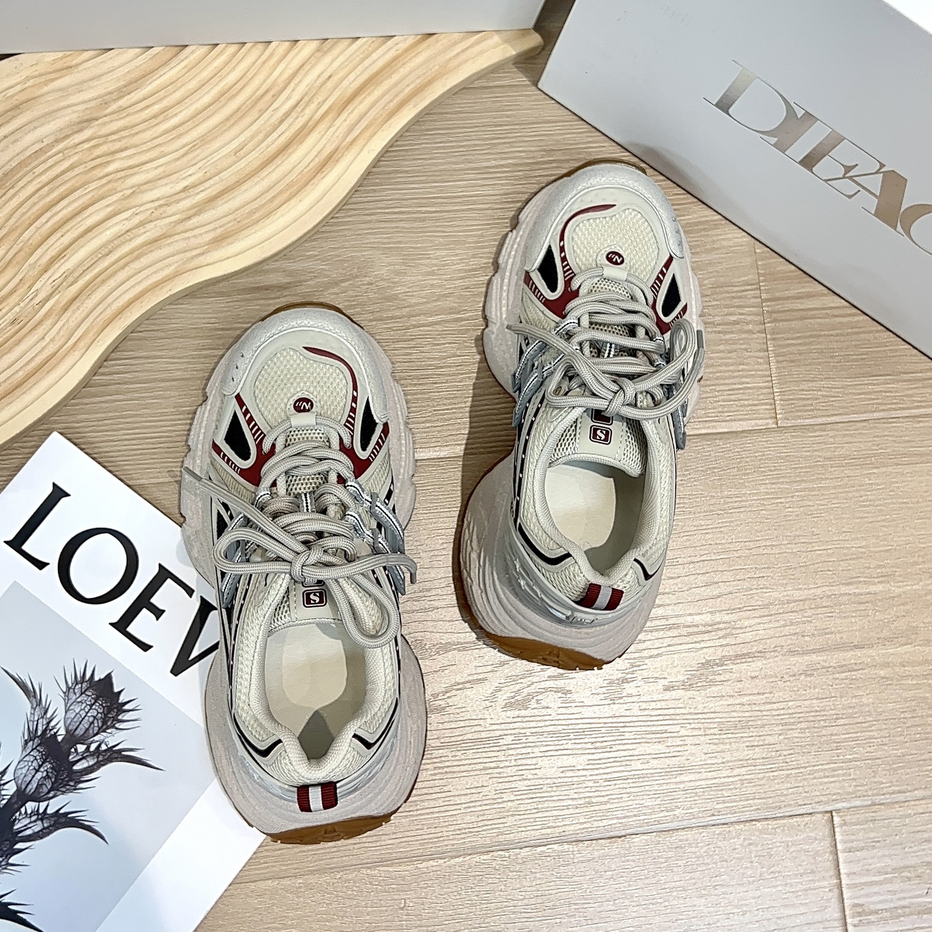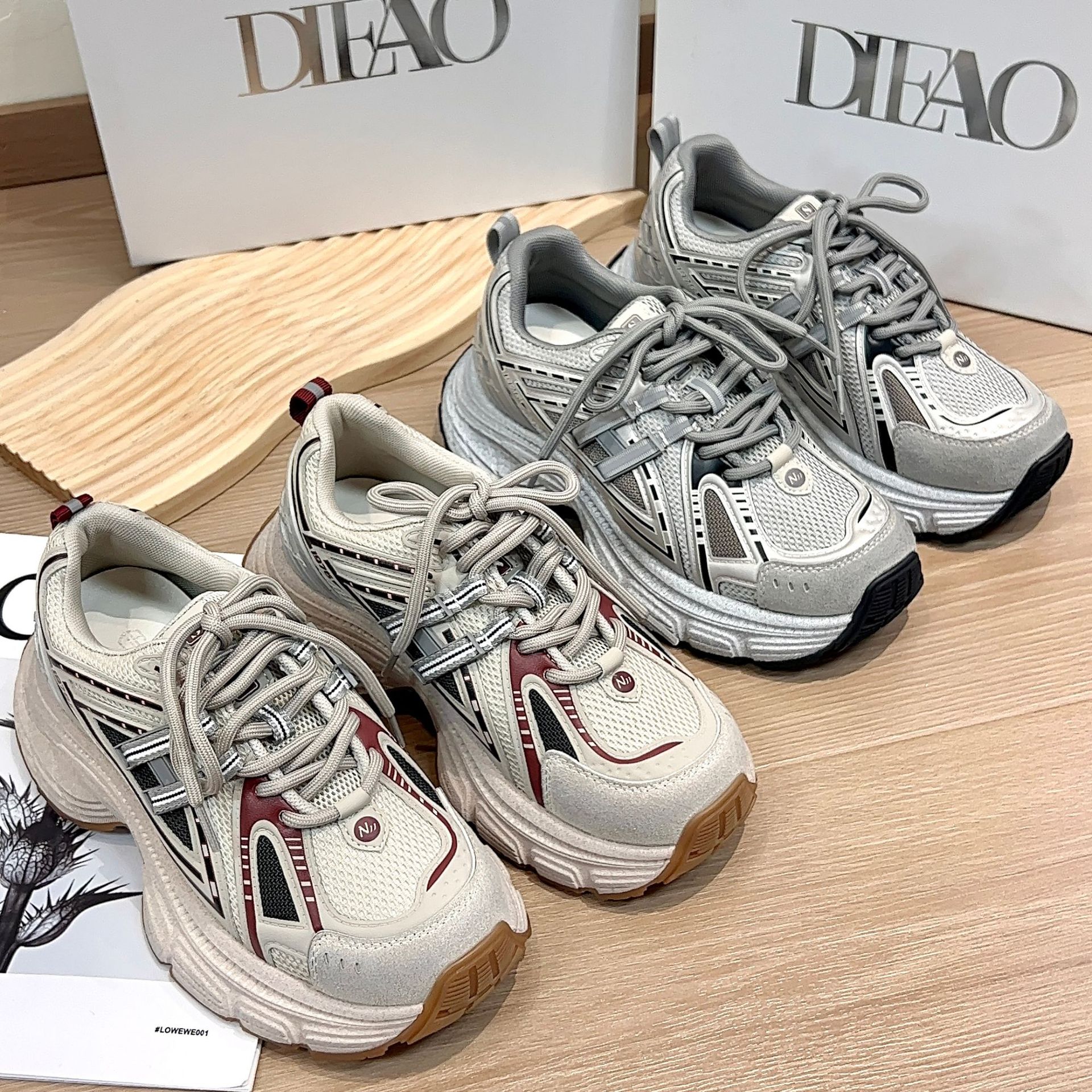 디에오 정품 가죽 여성용 런닝화 2025 신상 9518 두꺼운 밑창 키높이 운동화 여성용 빈티지 공예 캐주얼 여성화스토어 가기