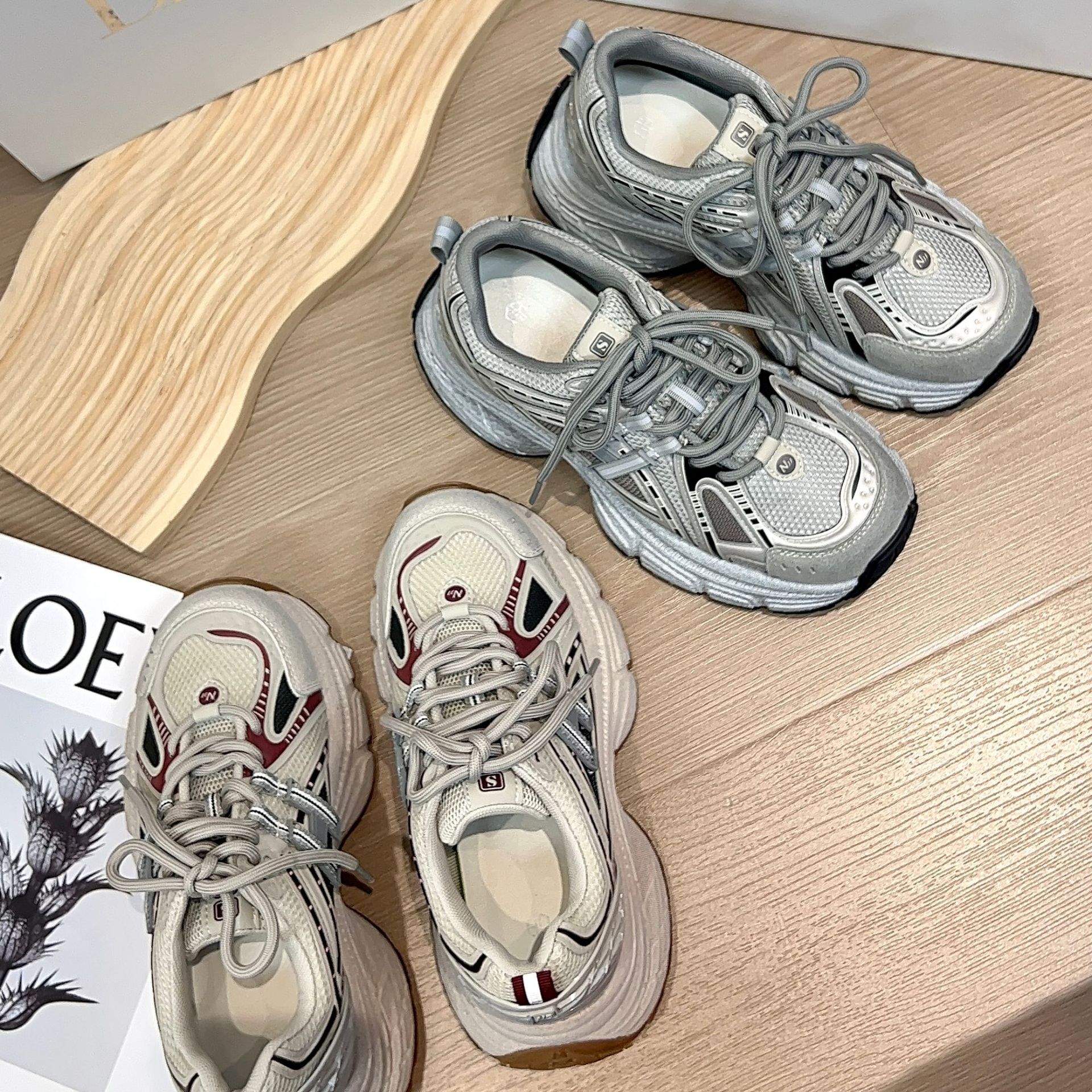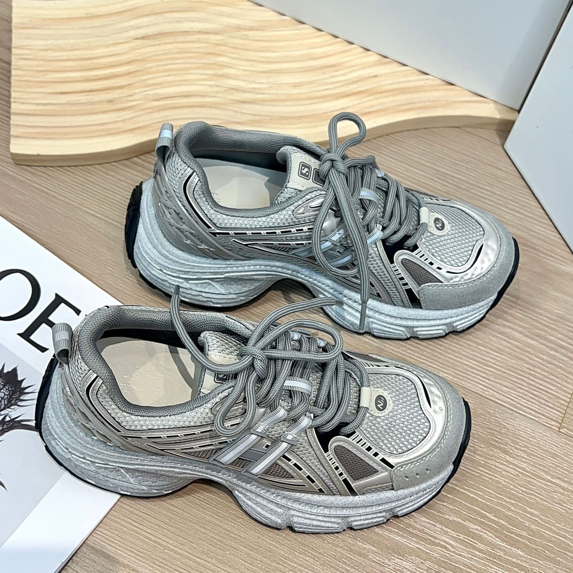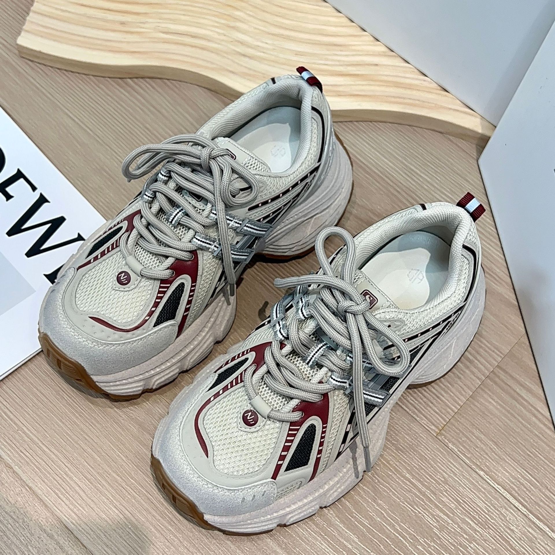 디에오 정품 가죽 여성용 런닝화 2025 신상 9518 두꺼운 밑창 키높이 운동화 여성용 빈티지 공예 캐주얼 여성화스토어 가기