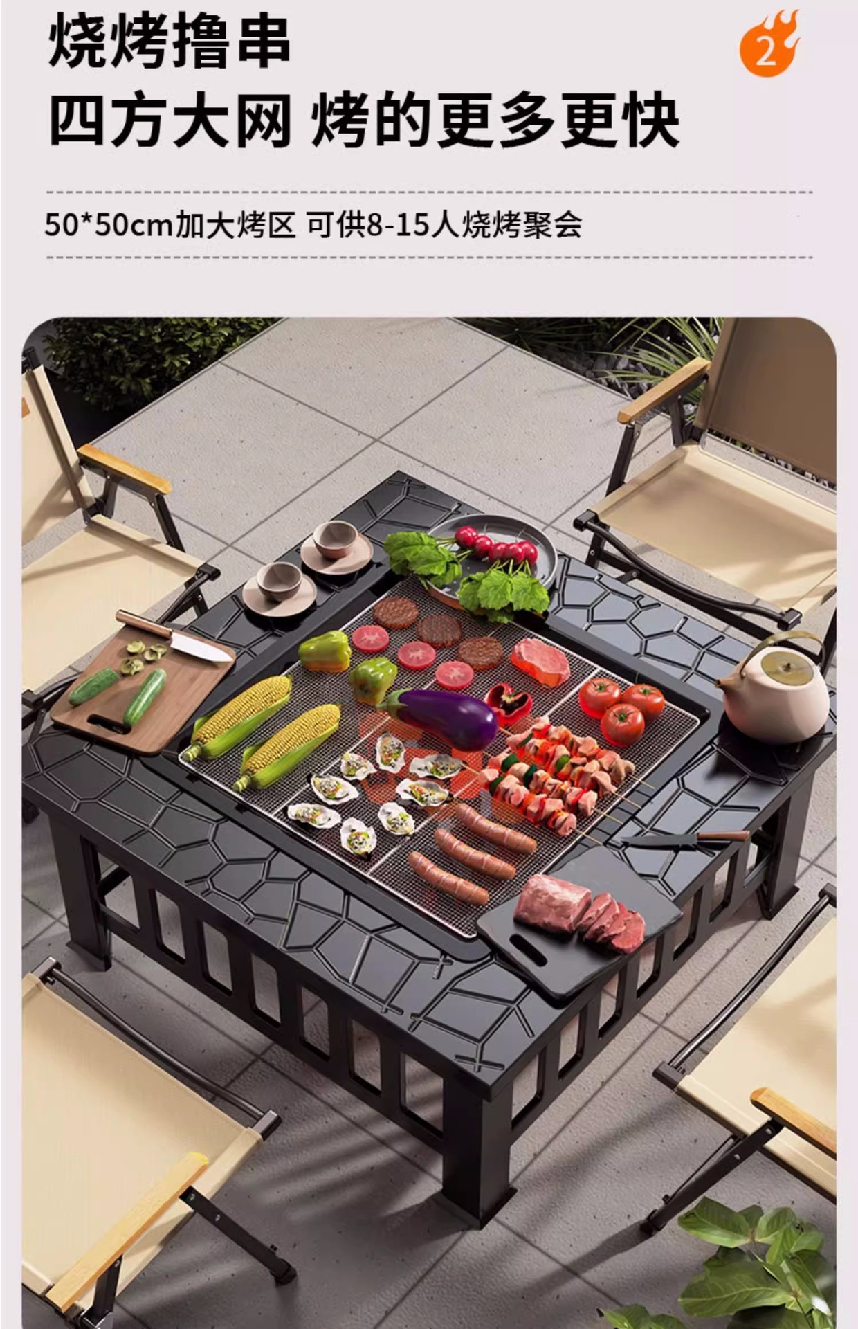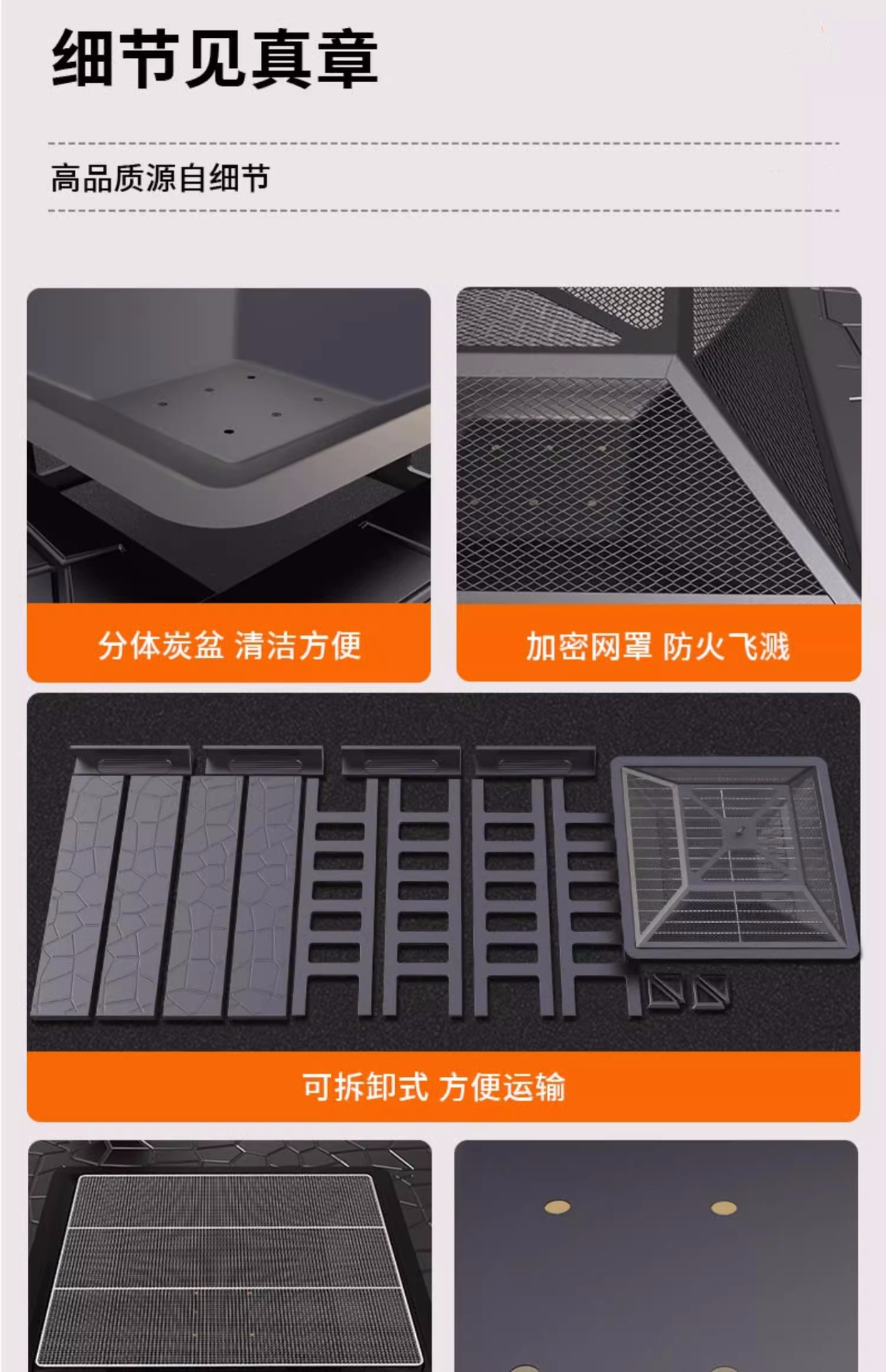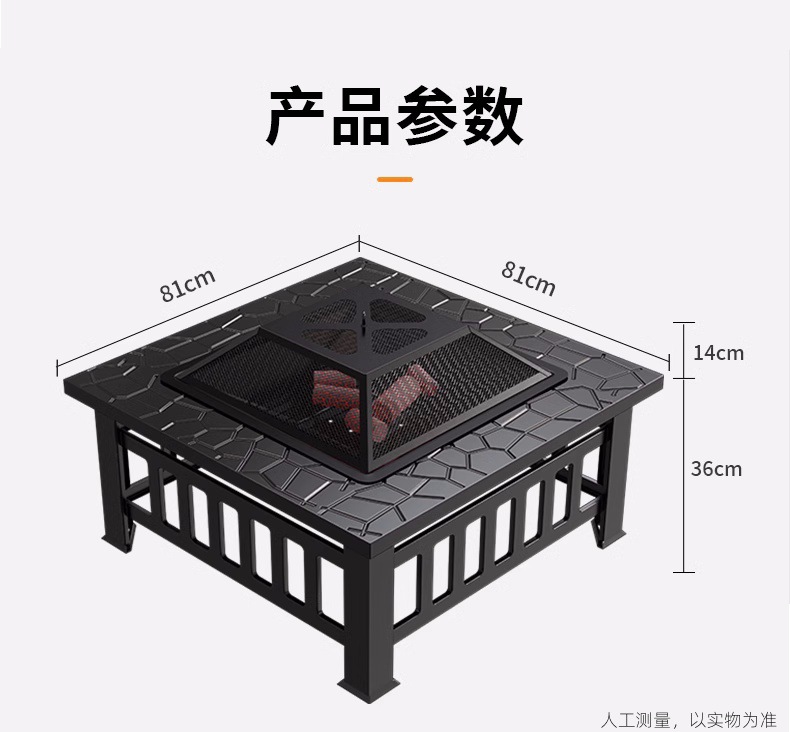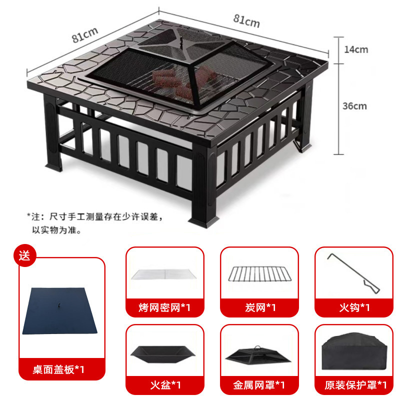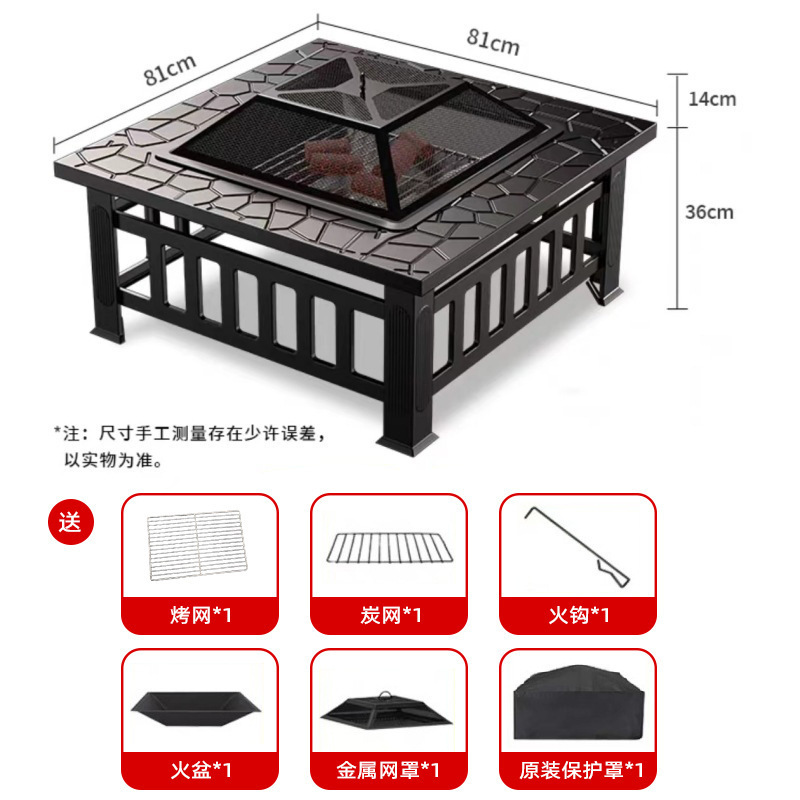 • 강화된 사각형 스토브(카본 그릴, 그릴 그릴, 그릴 커버, 더스트 커버, 후크 집게) - 랜덤 서라운드 패널