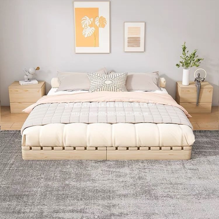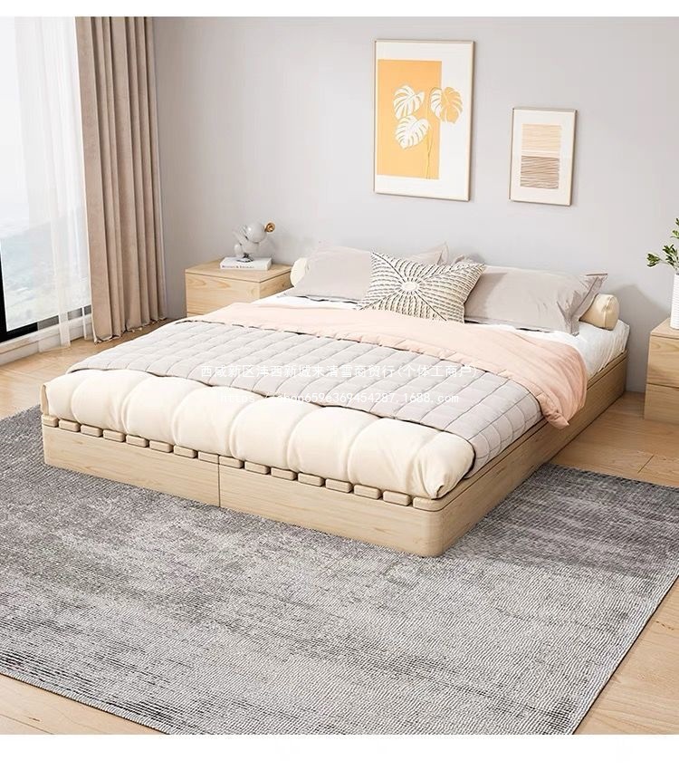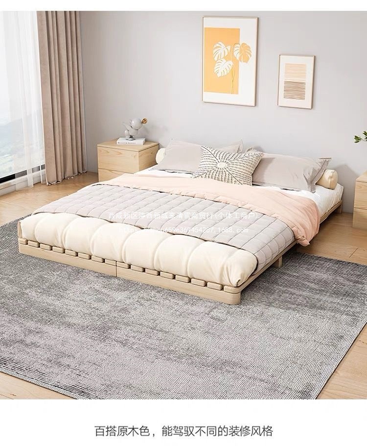 단단한 나무 일본식 다다미 침대 바닥 스탠딩 임대 접이식 침대 프레임 현대 더블 행 뼈대 침실 나무 침대