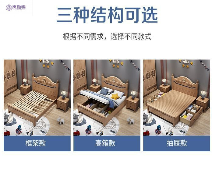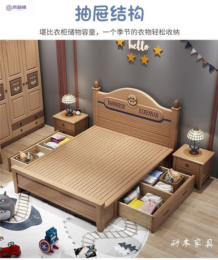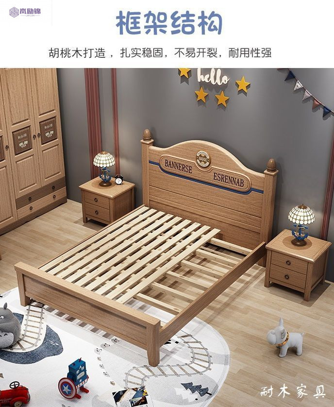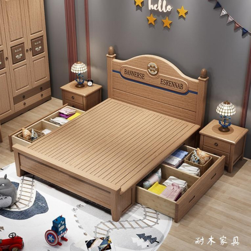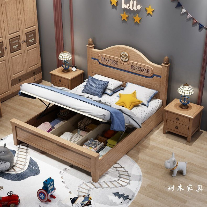 원목 청소년용 어린이용 유아용 침대 남아용 1.5m 호두나무 침대 1.2 싱글 하이박스 수납 내구성