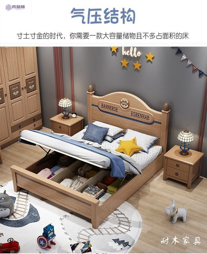 원목 청소년용 어린이용 유아용 침대 남아용 1.5m 호두나무 침대 1.2 싱글 하이박스 수납 내구성스토어 가기