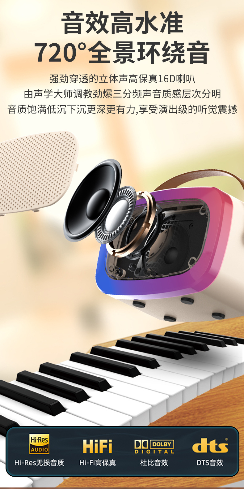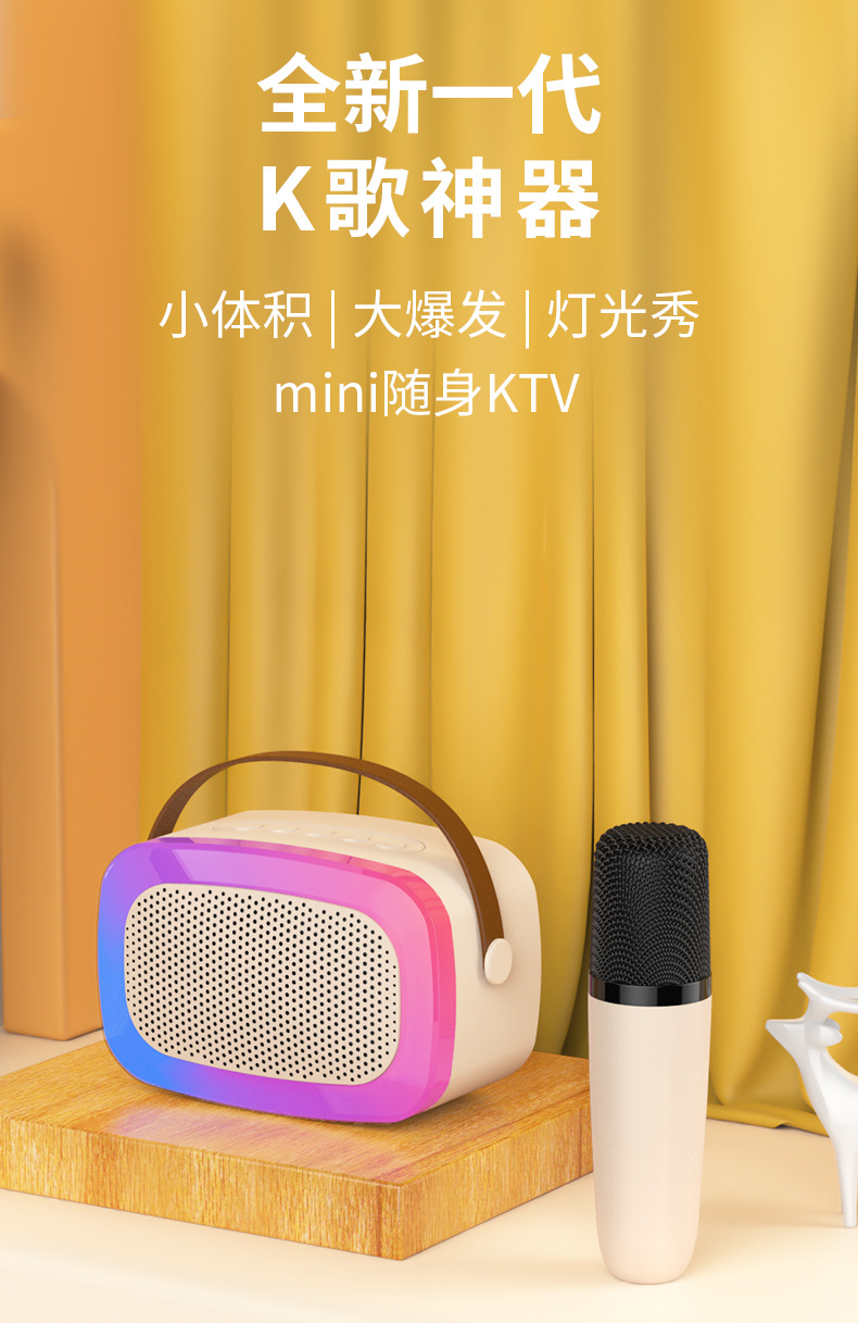 2025년 새로운 무선 블루투스 스피커, 마이크가 포함된 노래방 올인원 미니 스피커, 음악 분위기 조명 포함스토어 가기