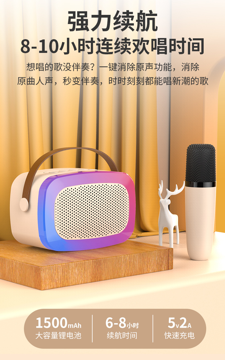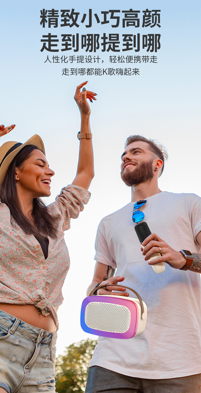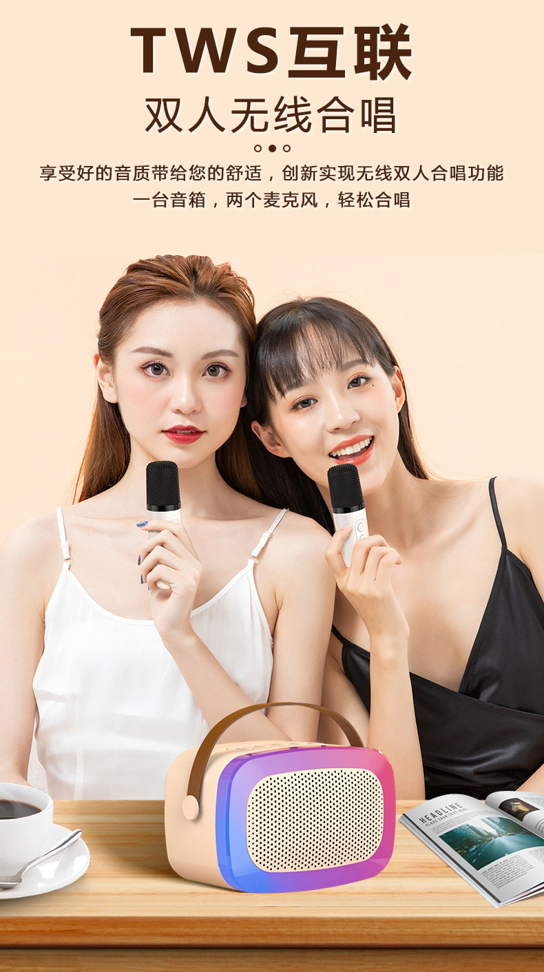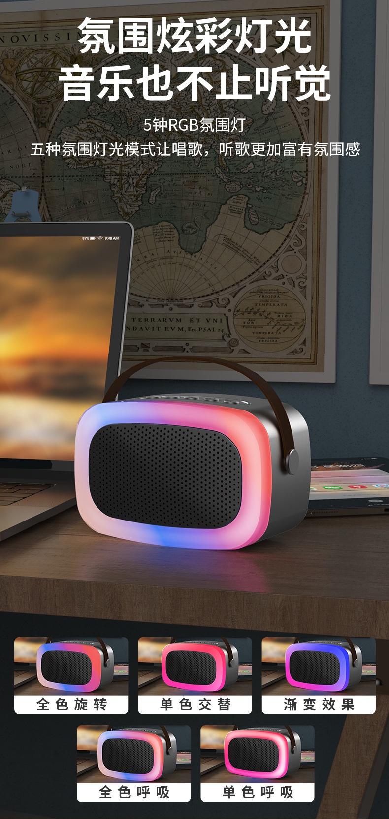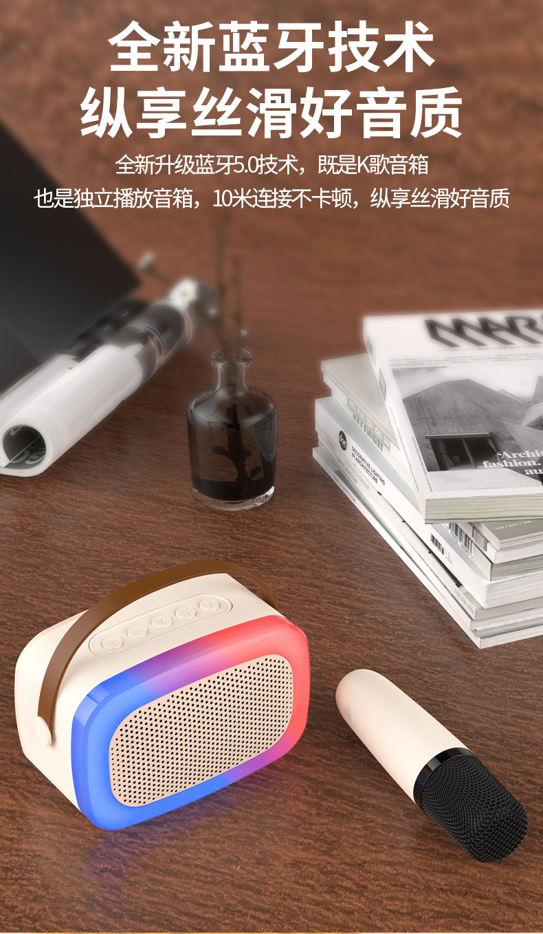 2025년 새로운 무선 블루투스 스피커, 마이크가 포함된 노래방 올인원 미니 스피커, 음악 분위기 조명 포함