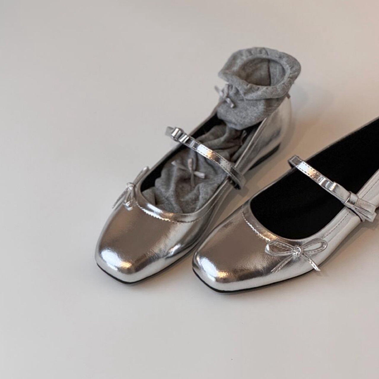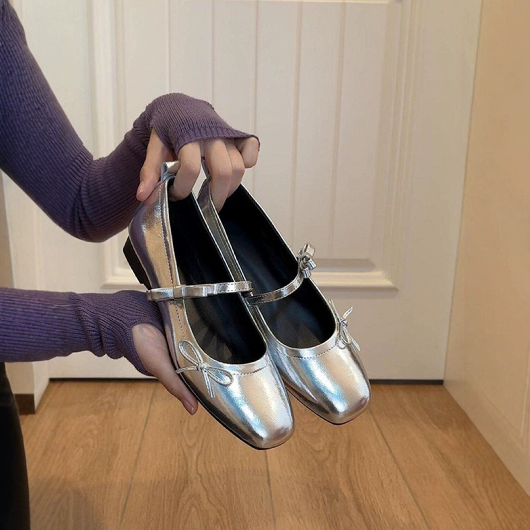 양가죽 버전 ~ 여성용 정품 가죽 프렌치 레트로 플랫 보우 펌프스 신발 새로운 실버 메리 제인 이브닝 슈즈스토어 가기