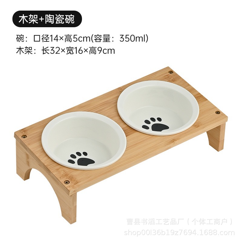 애완 동물 그릇 개밥 그릇 스테인레스 스틸 개 그릇 더블 그릇 세라믹 고양이 그릇 공장 직접 판매 나무 대나무 프레임 더블 그릇 애완 동물스토어 가기