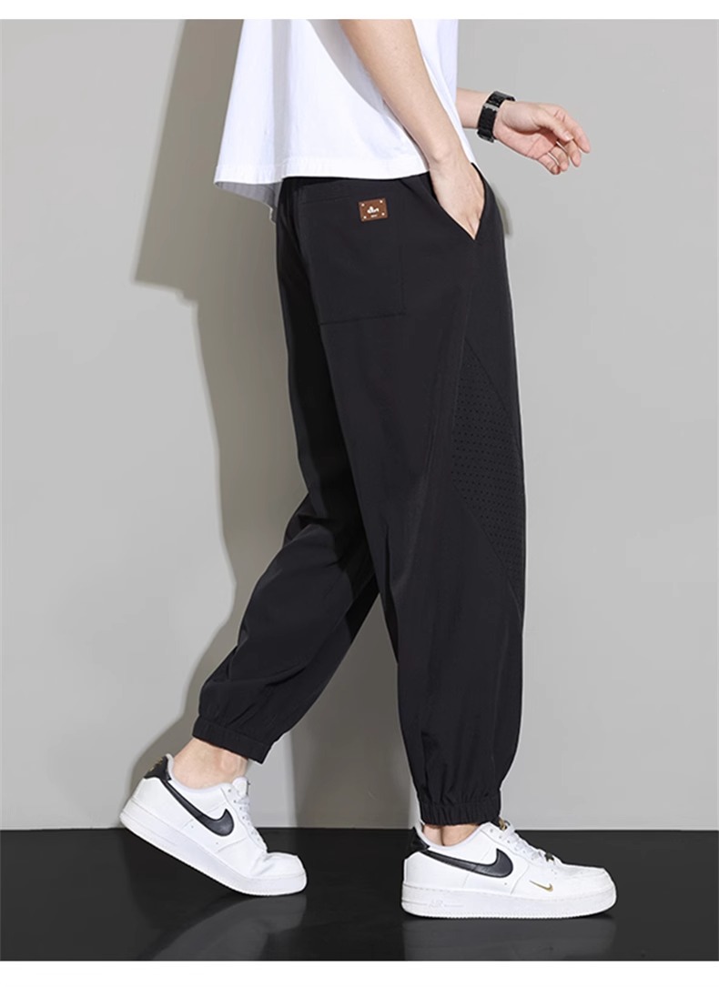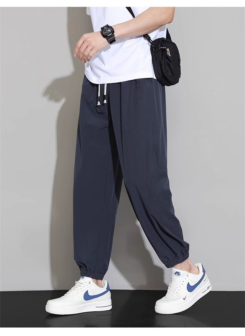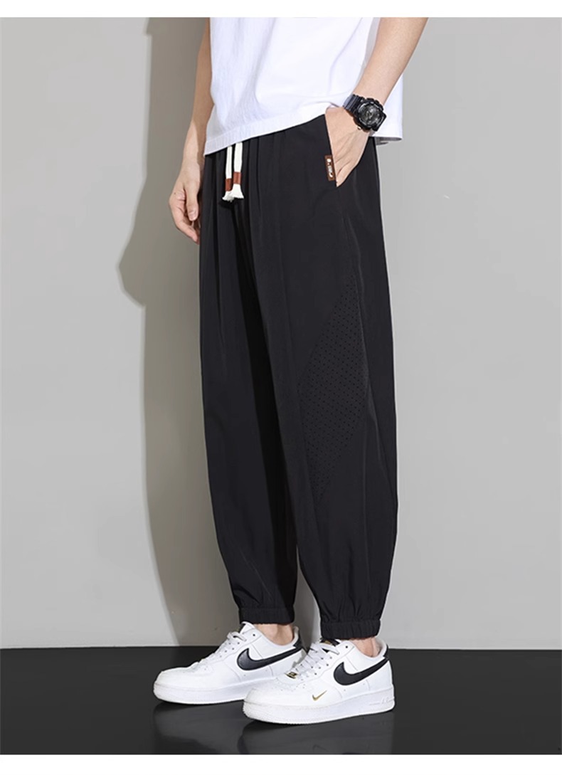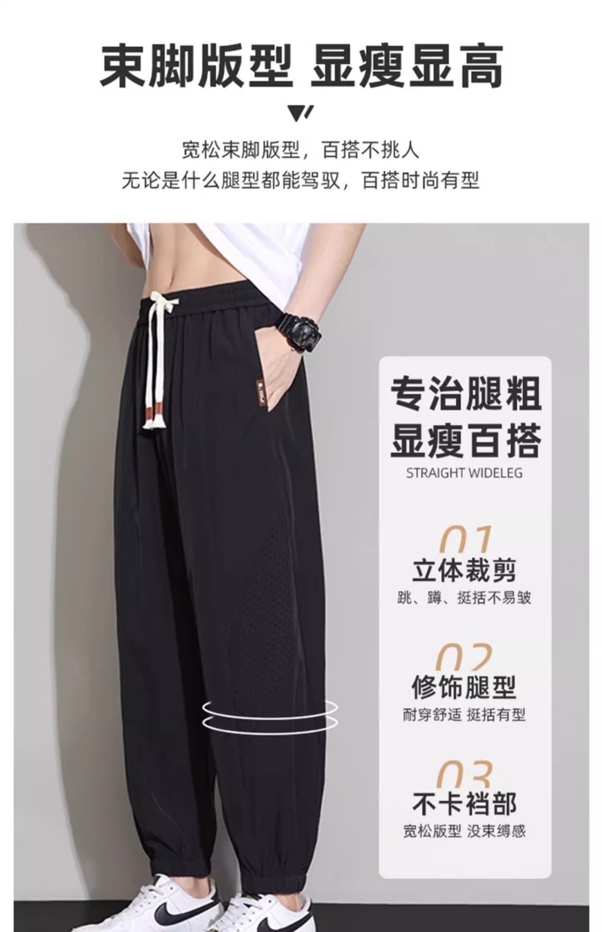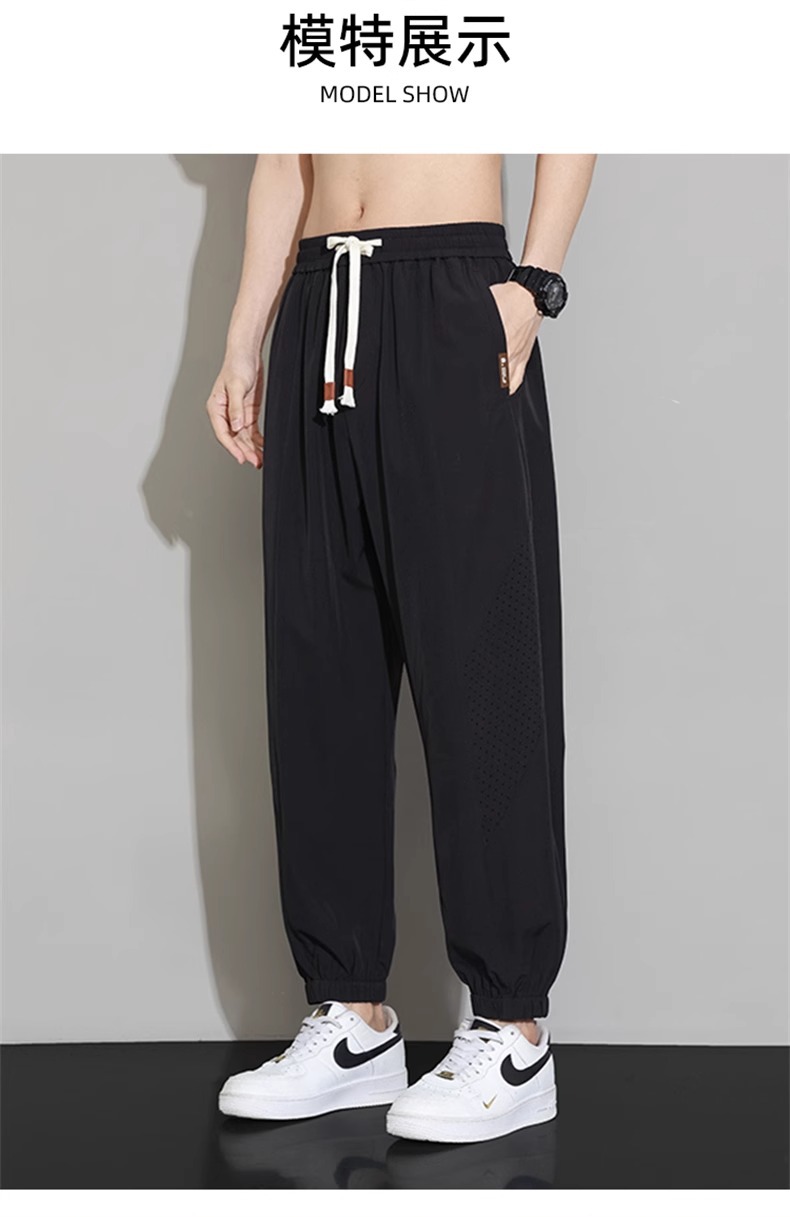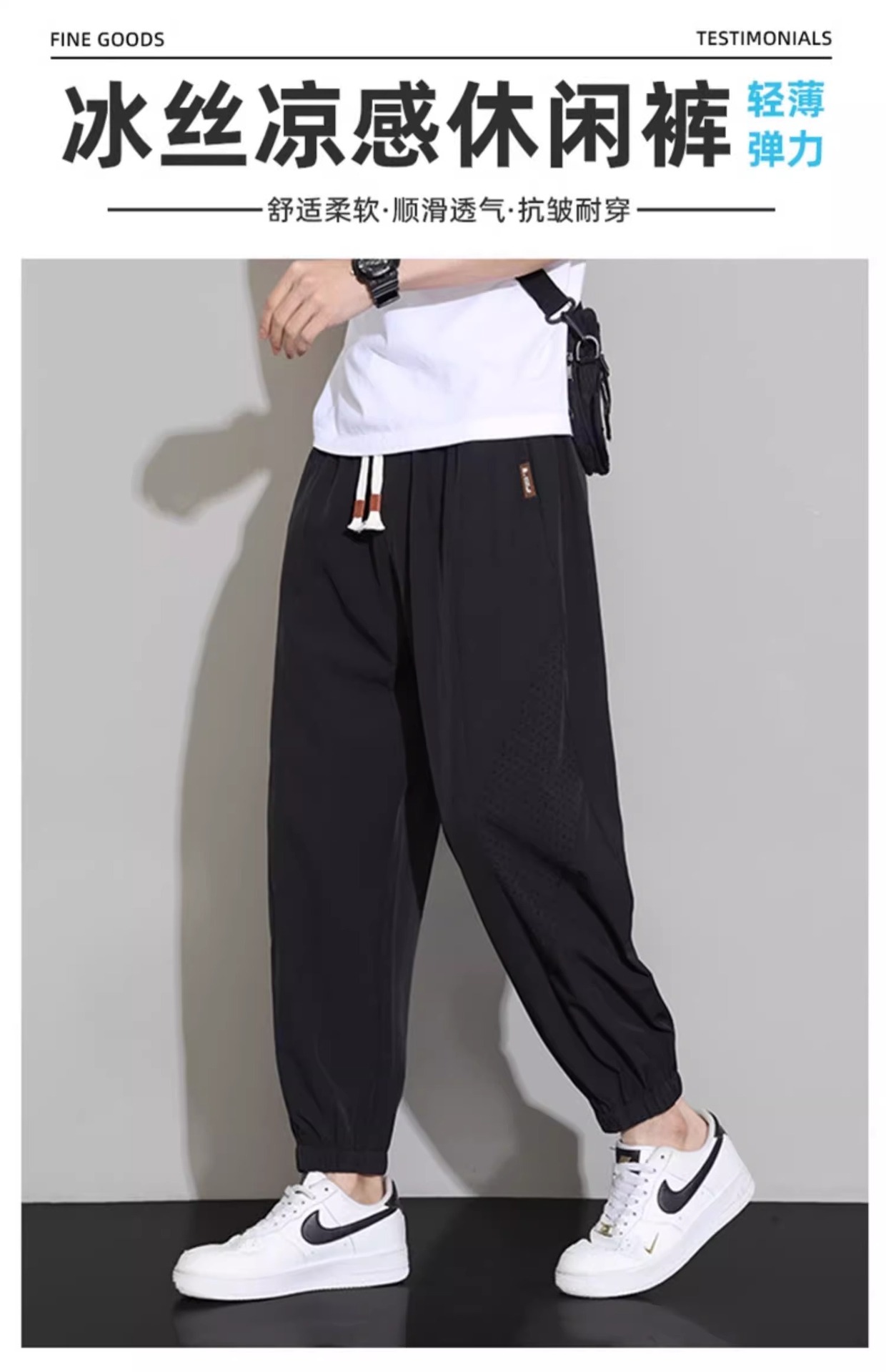 NASA 아이스 실크 캐주얼 바지 남성 여름 얇은 대형 남성 바지 플러스 뚱뚱한 9 점 긴 바지 스포츠를위한 속건성