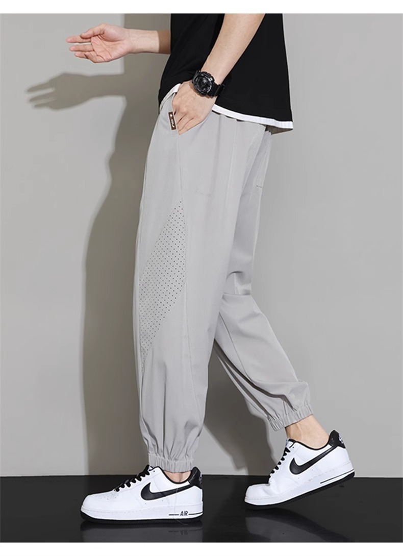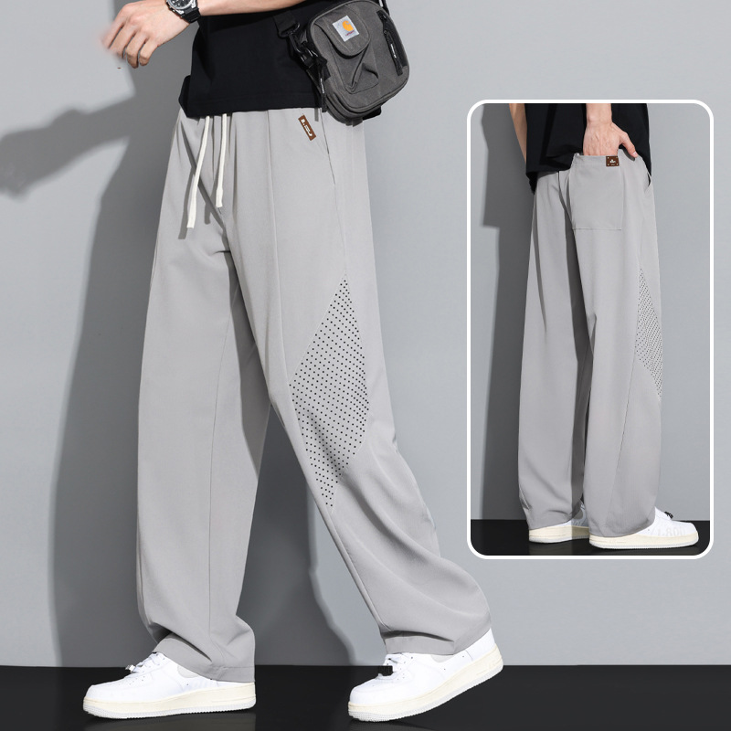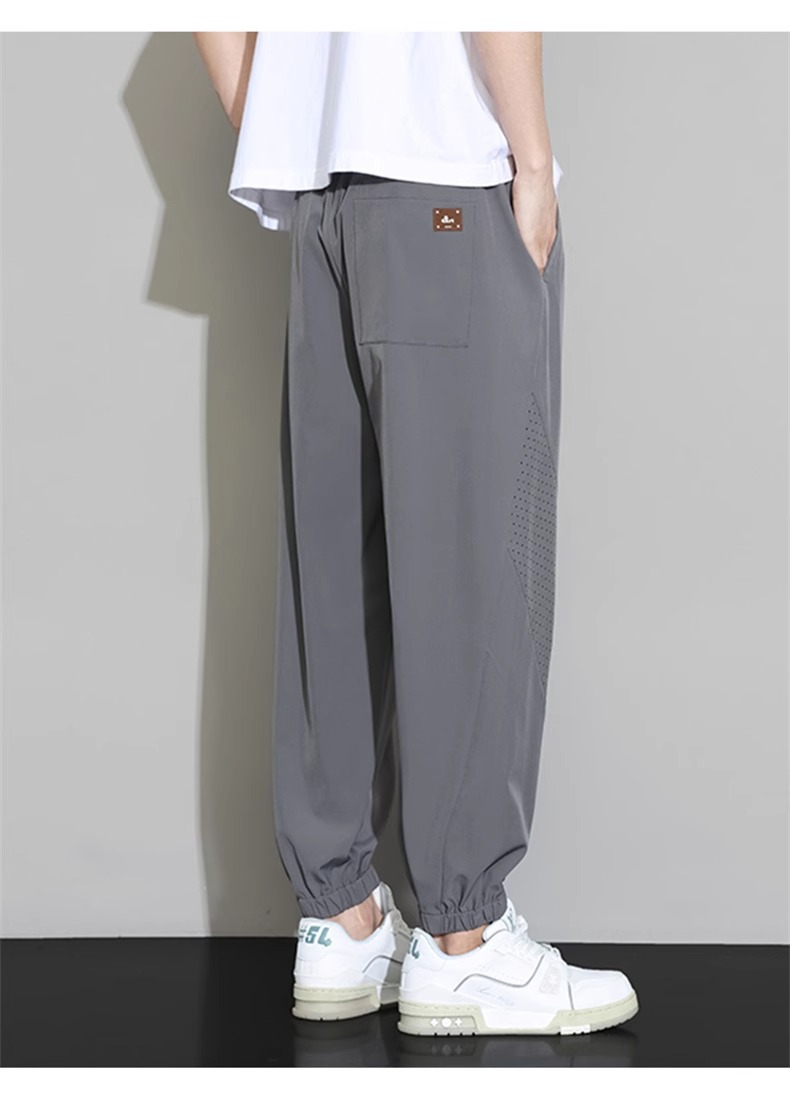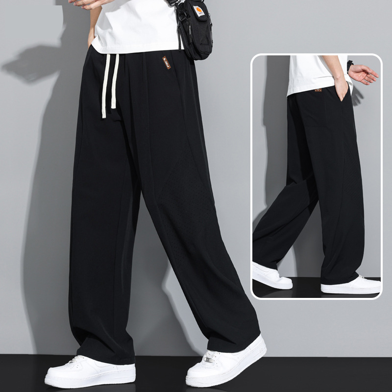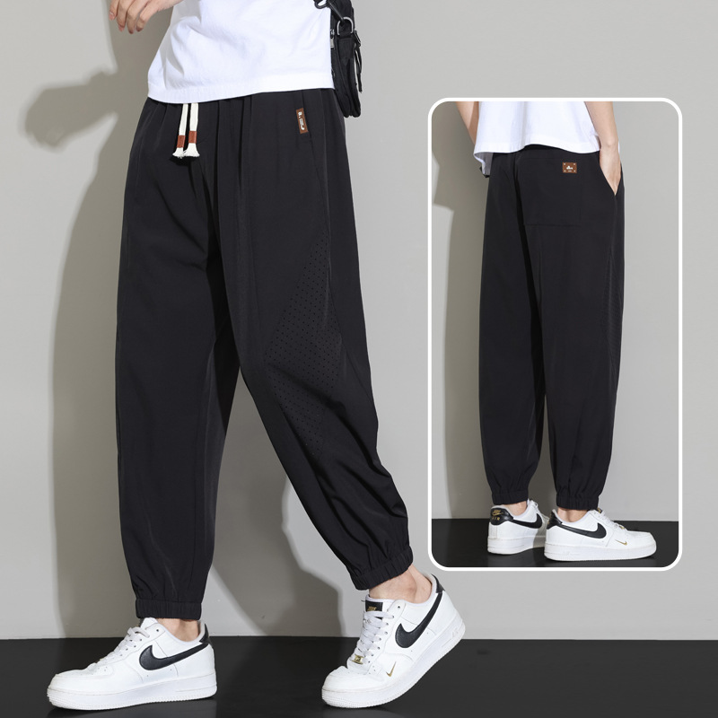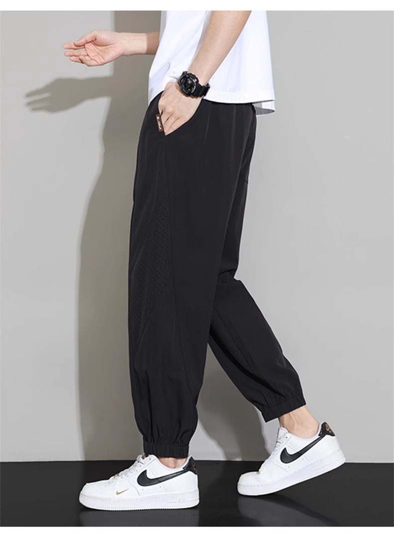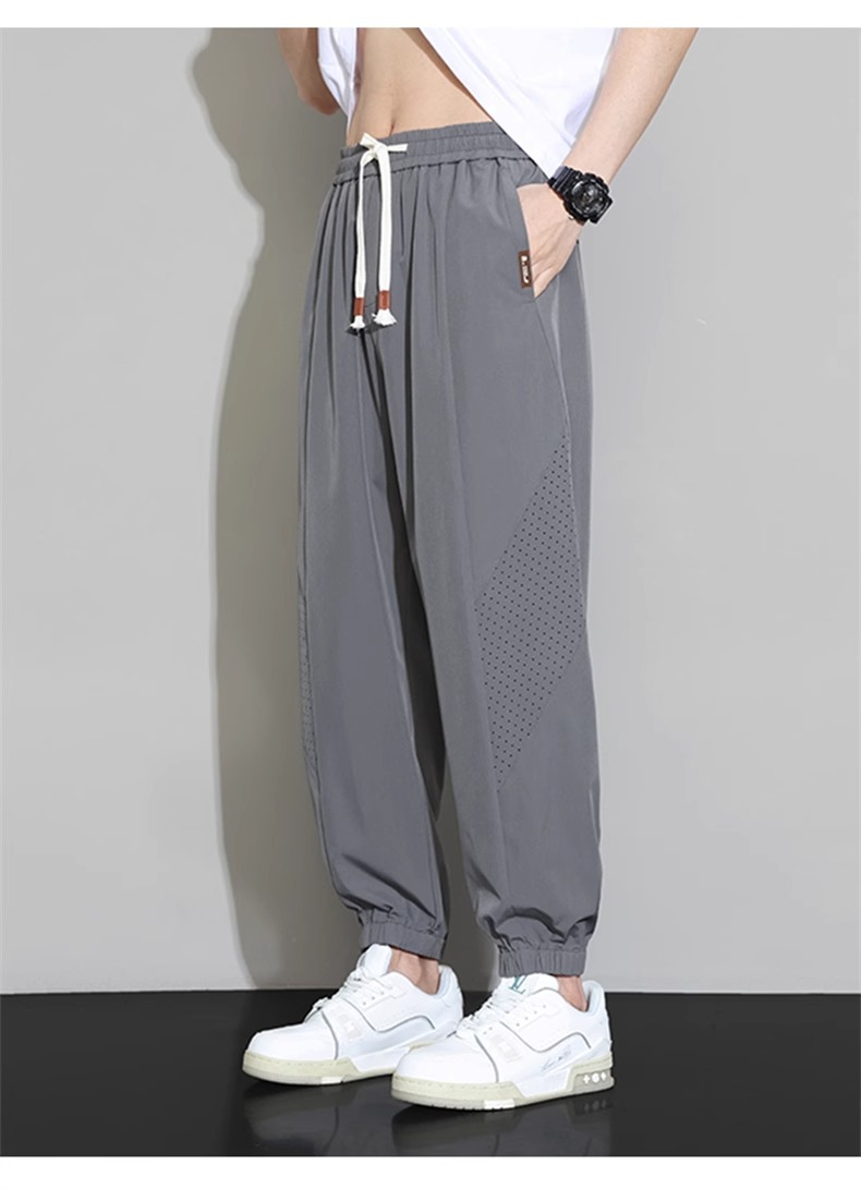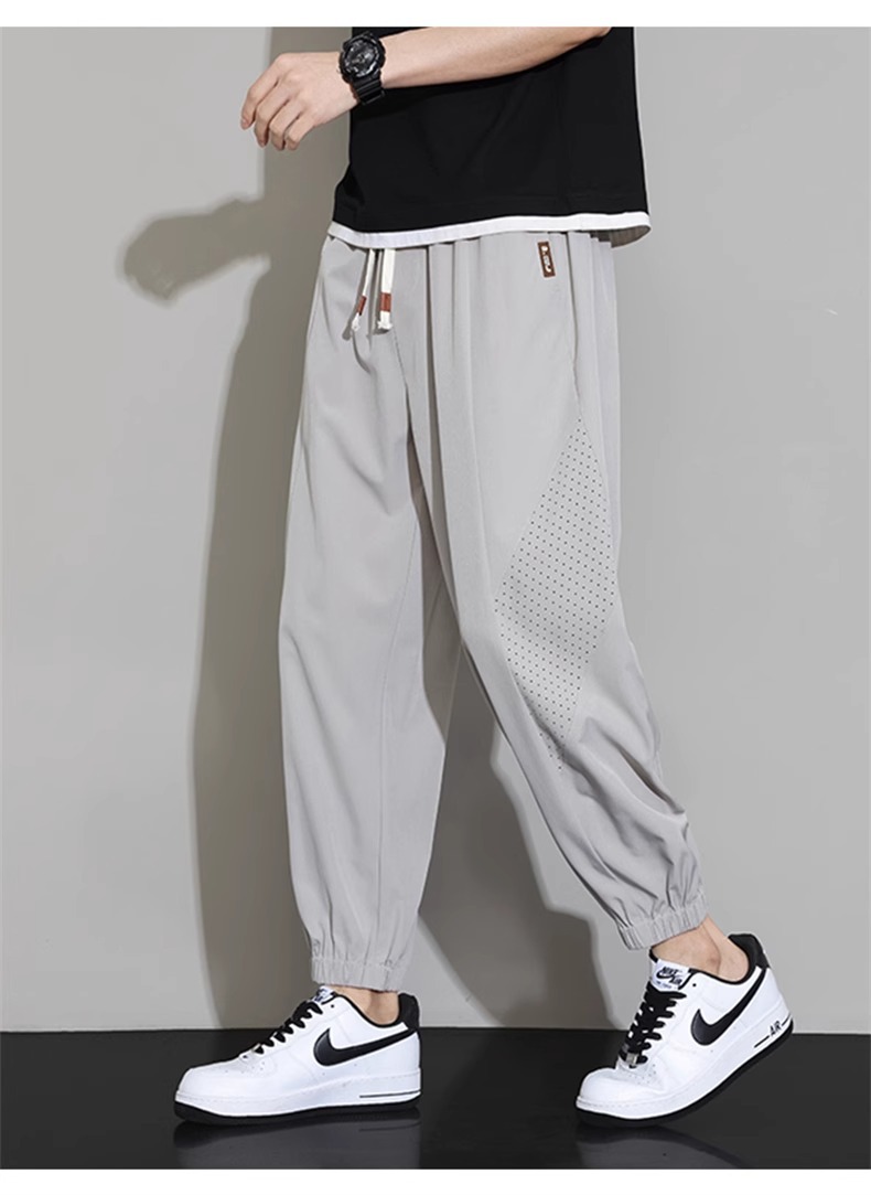 NASA 아이스 실크 캐주얼 바지 남성 여름 얇은 대형 남성 바지 플러스 뚱뚱한 9 점 긴 바지 스포츠를위한 속건성