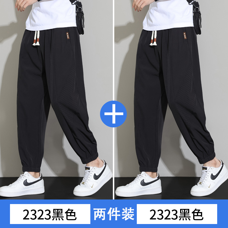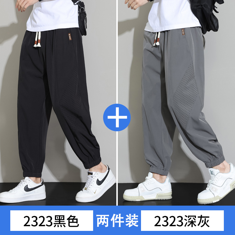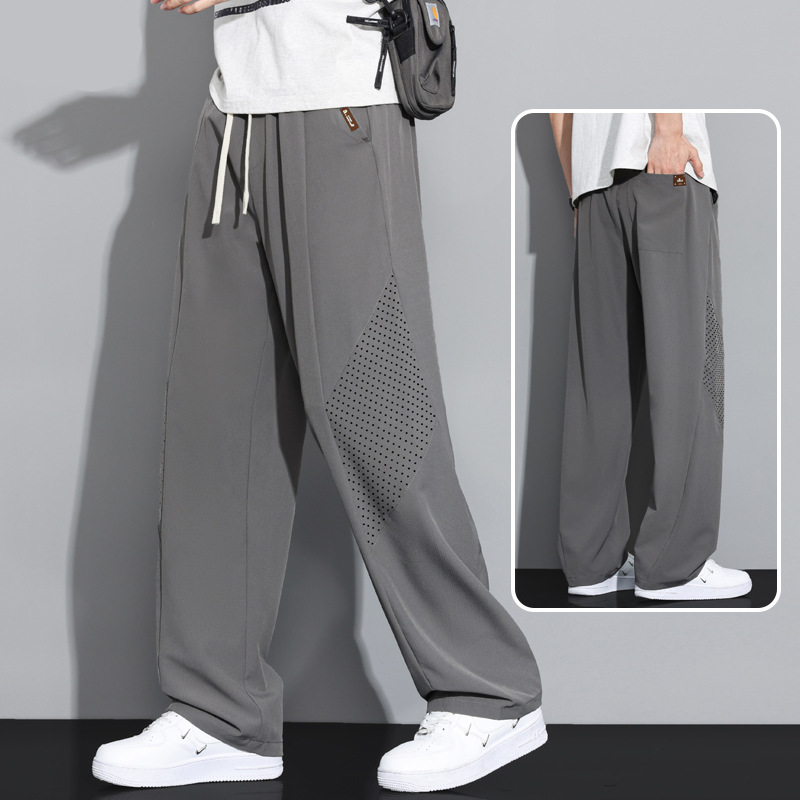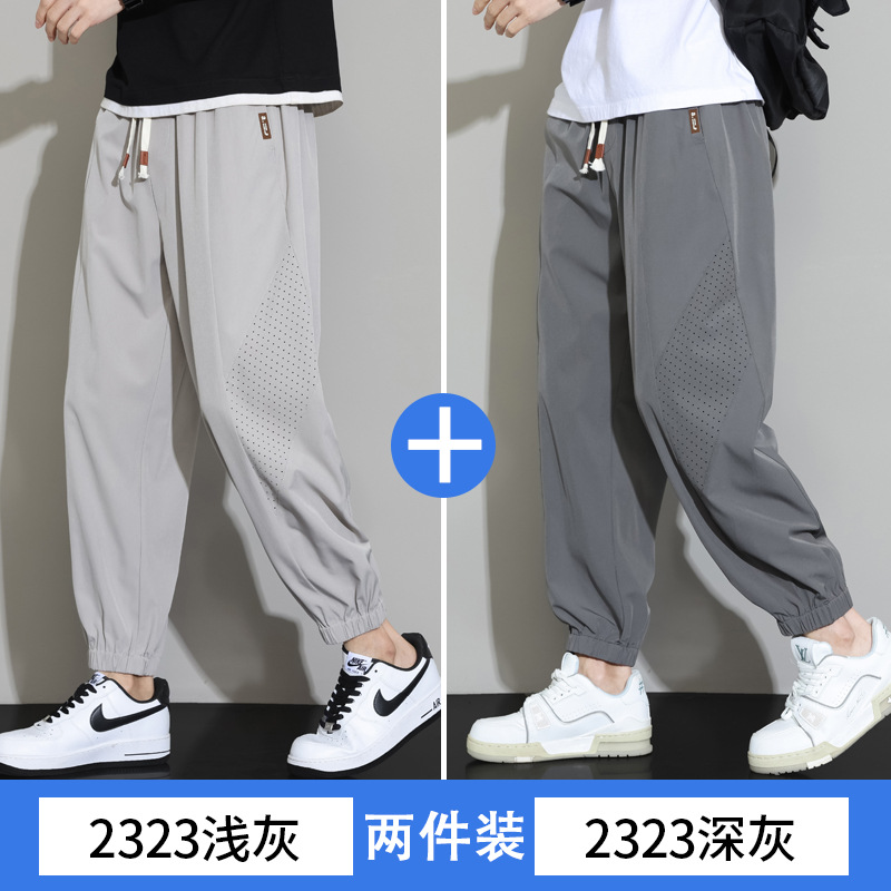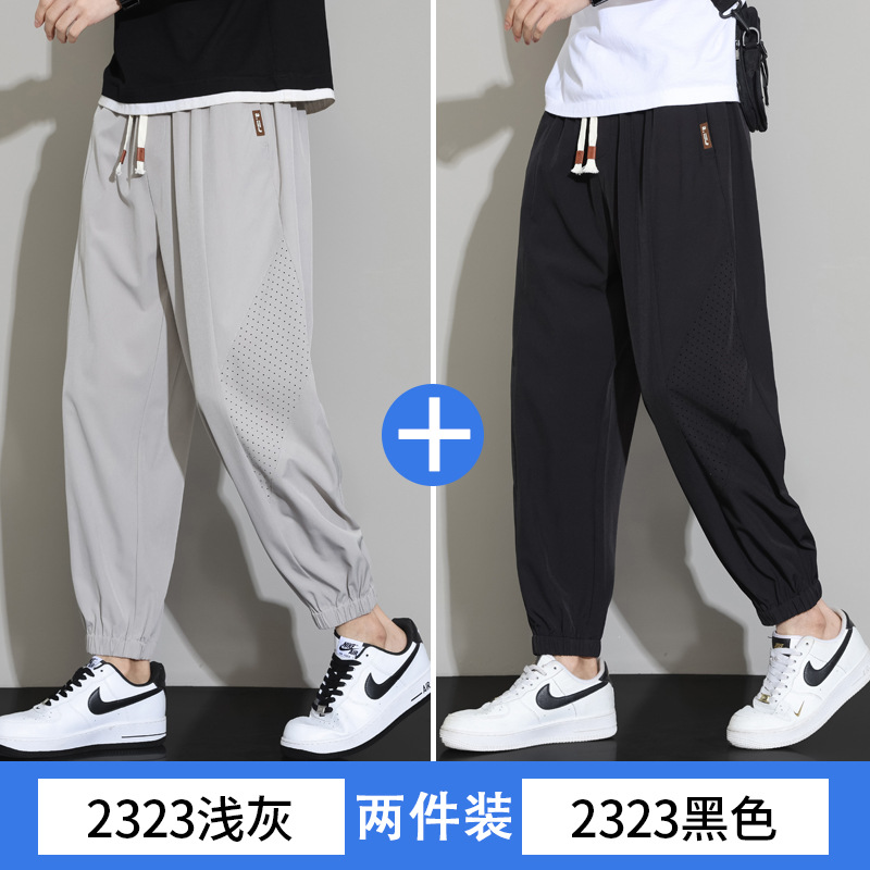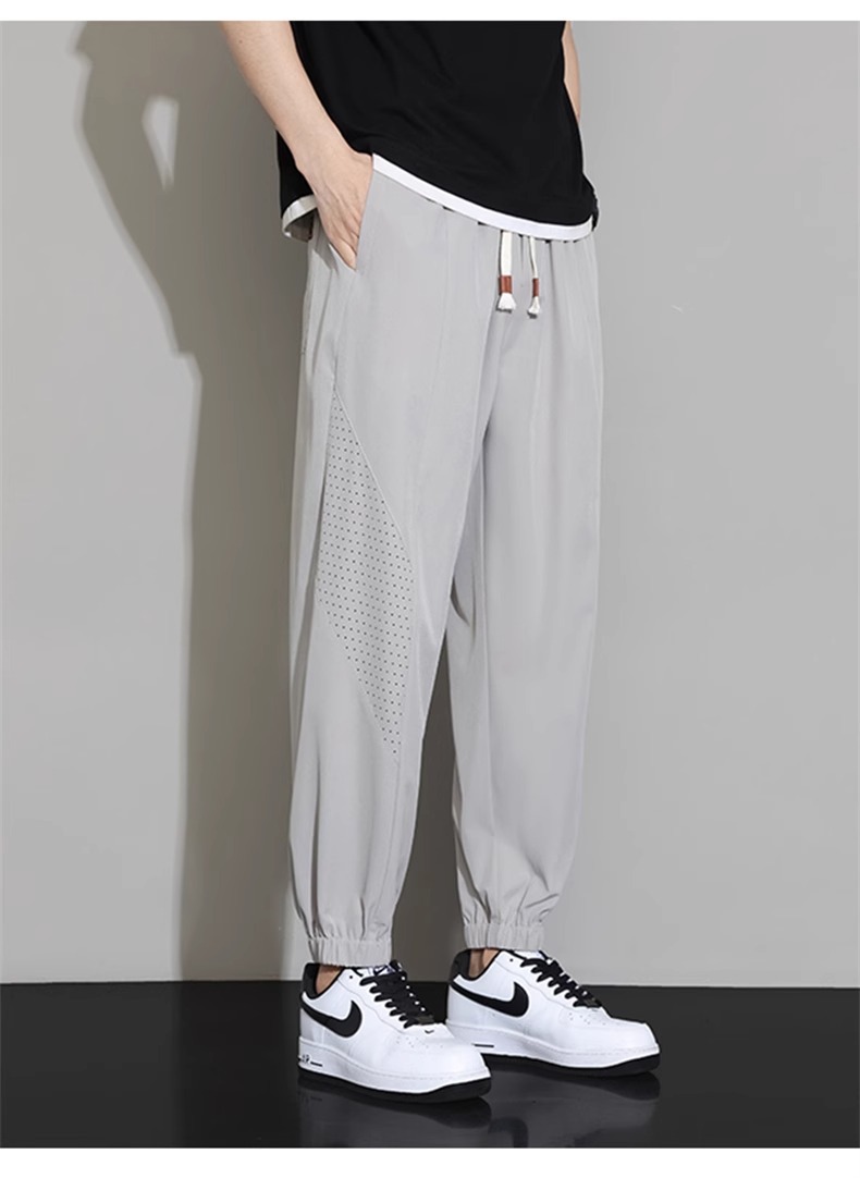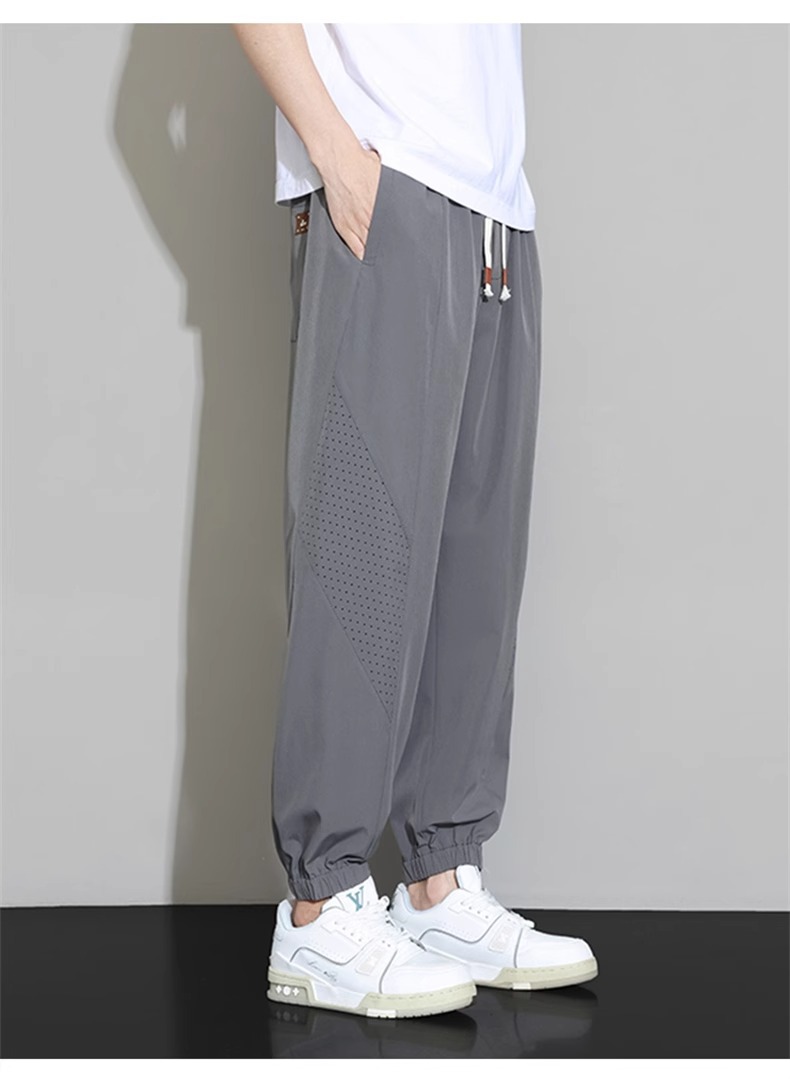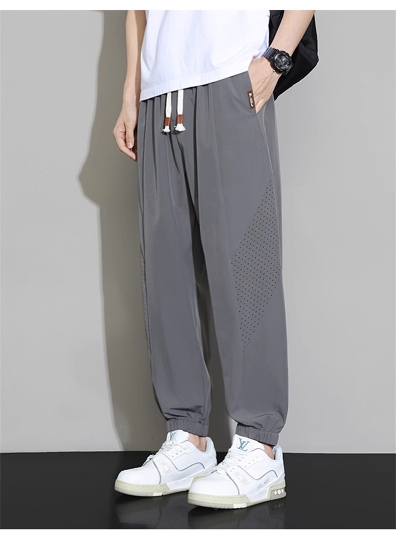 NASA 아이스 실크 캐주얼 바지 남성 여름 얇은 대형 남성 바지 플러스 뚱뚱한 9 점 긴 바지 스포츠를위한 속건성