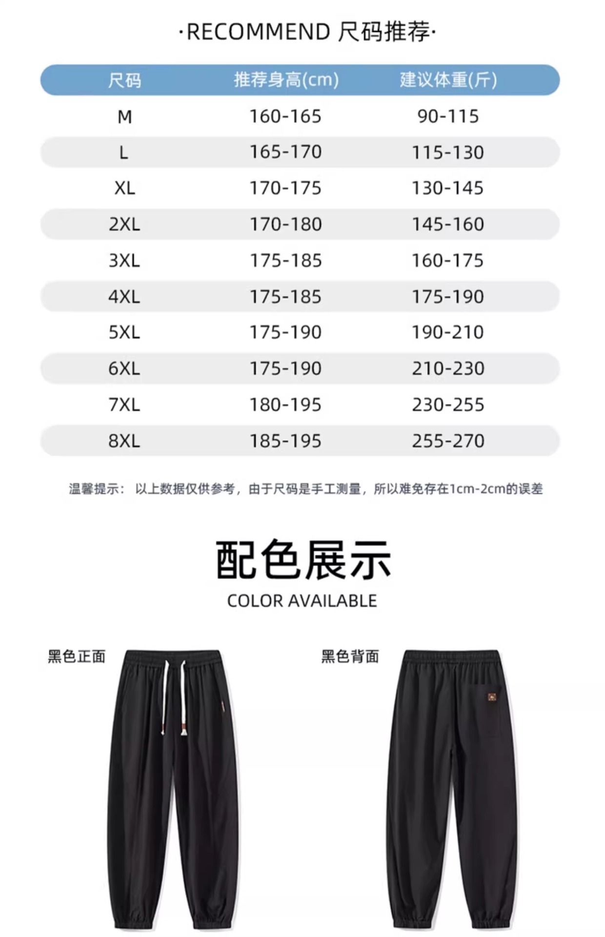 NASA 아이스 실크 캐주얼 바지 남성 여름 얇은 대형 남성 바지 플러스 뚱뚱한 9 점 긴 바지 스포츠를위한 속건성스토어 가기