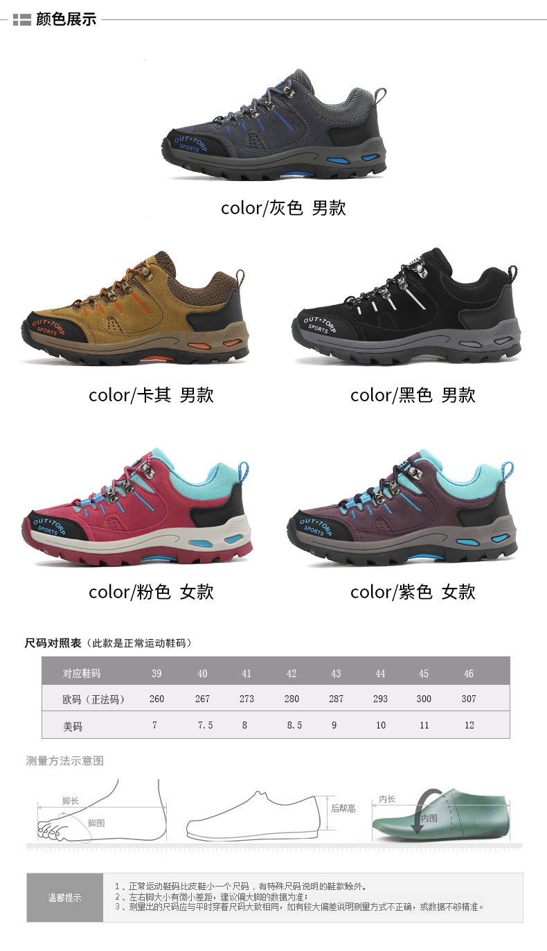 一件代发秋冬新款防滑户外鞋大码登山鞋情侣款男女鞋运动鞋