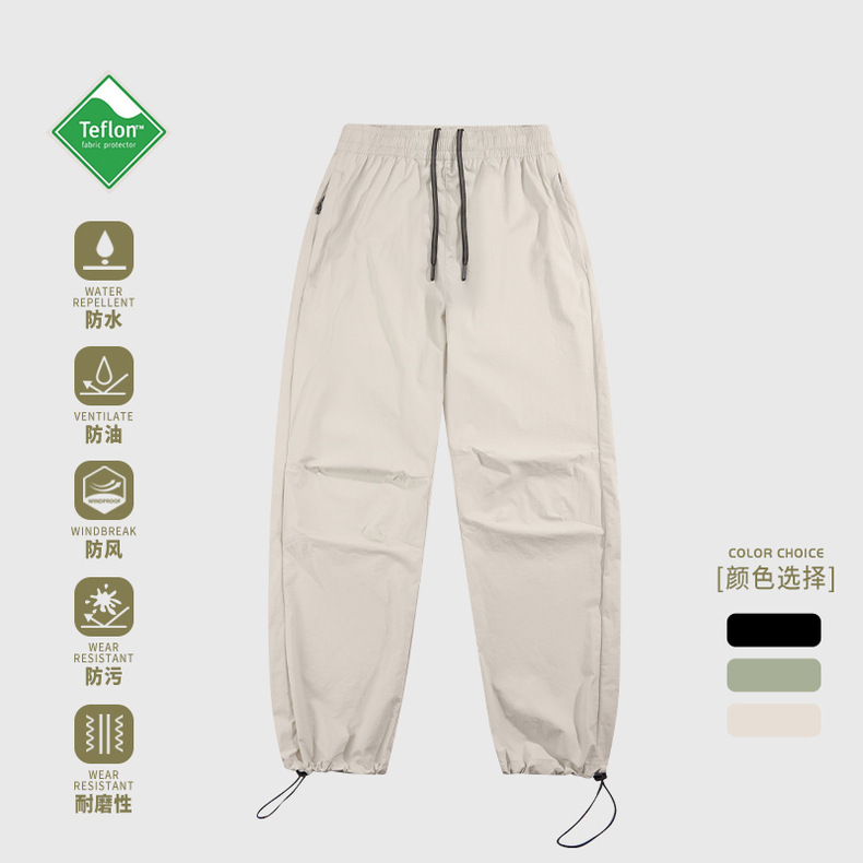 남성용 아웃도어 바지 25 여름 얇은 속건성 통기성 3방수 작업복 드로스트링 커프스 캐주얼 바지 커플 우산 바지