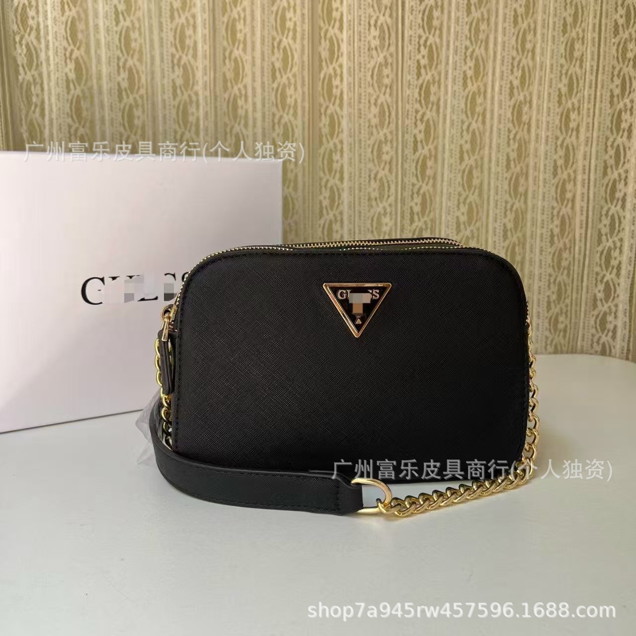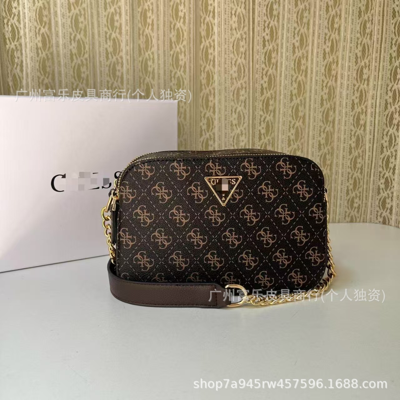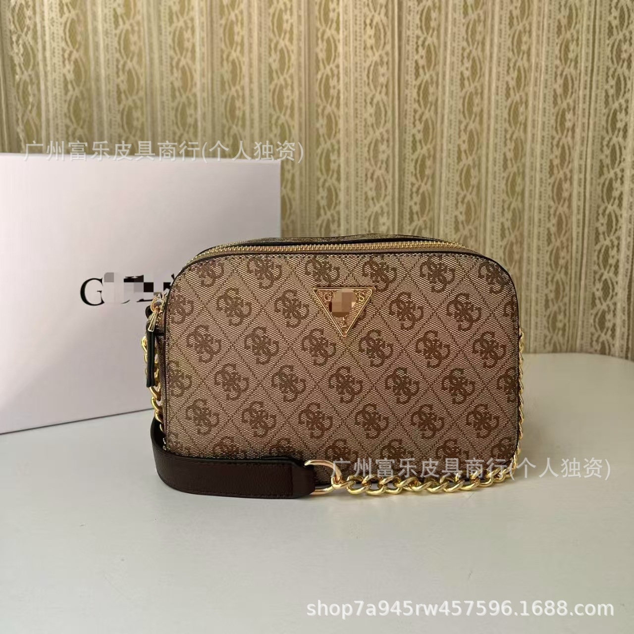 GS 대외 무역 유럽과 미국의 새로운 스타일 인쇄 복고풍 역삼각형 체인 접합 카메라 가방 작은 사각형 가방 싱글 숄더 크로스 바디 여성용 가방스토어 가기