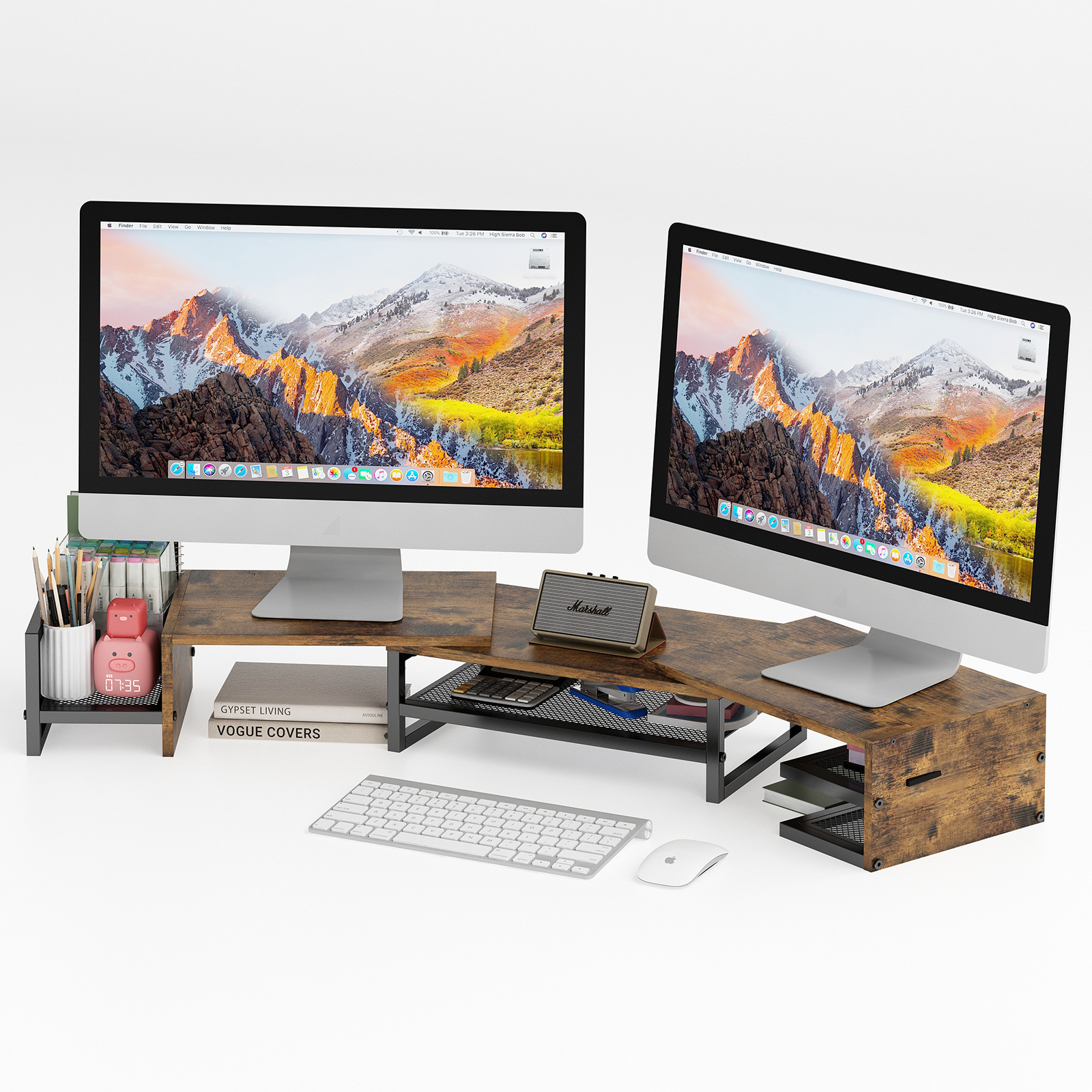 국경 간 표준 부품 듀얼 스크린 컴퓨터 높이 조절 테이블 메이크업 보관함 파일 보관함 문구 카운터 정리
