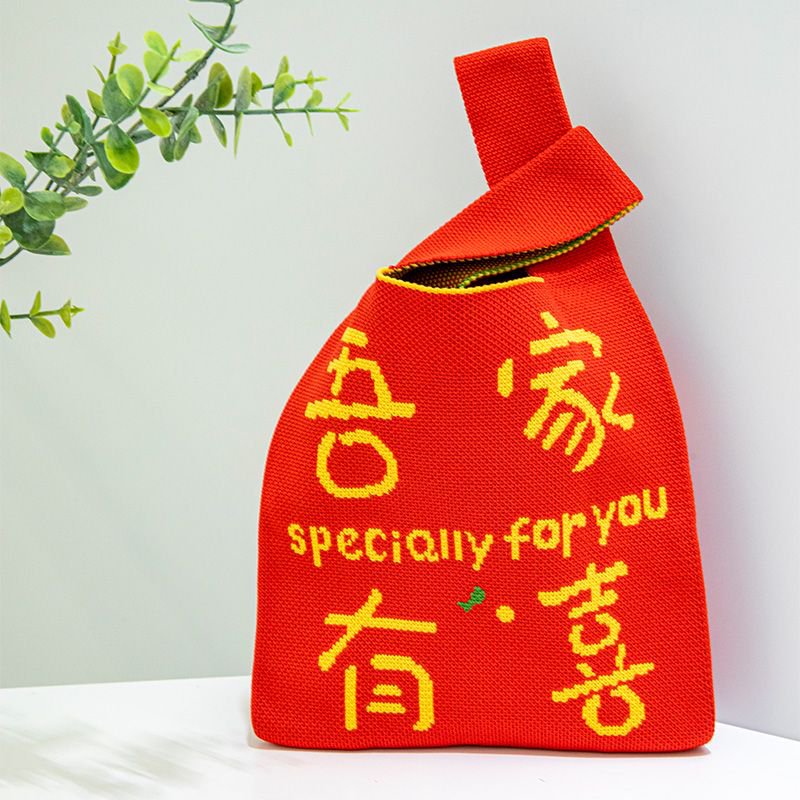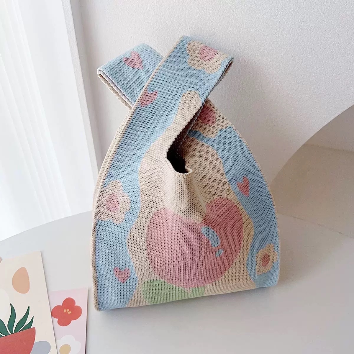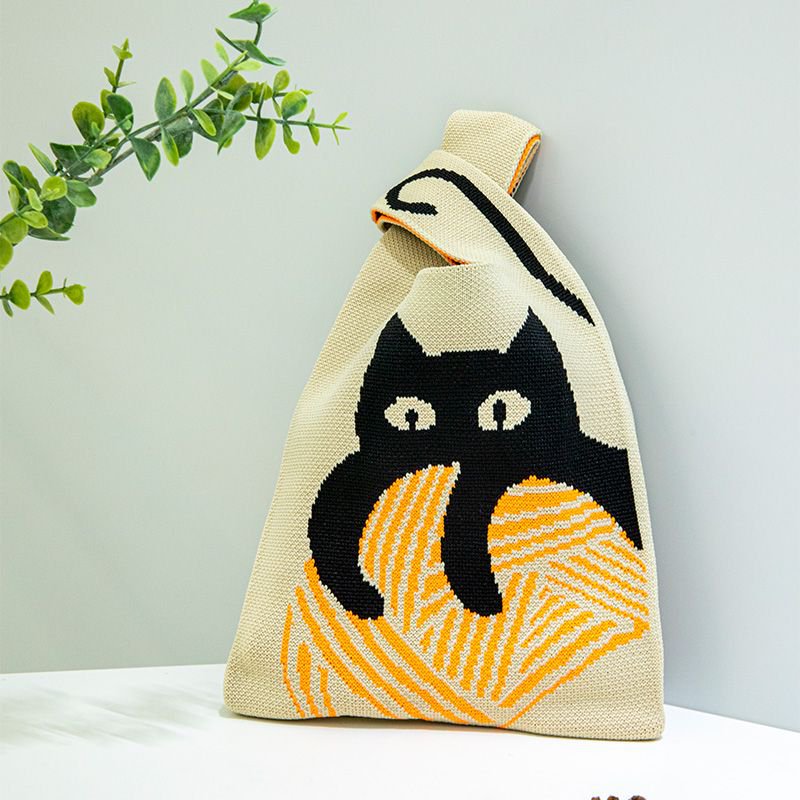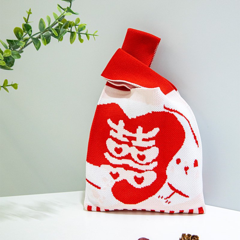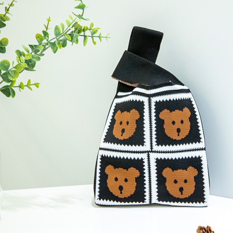 니트 가방, 선물 가방, 토끼 핸드백, 대용량 선물 가방, 손목에 달린 작은 가방