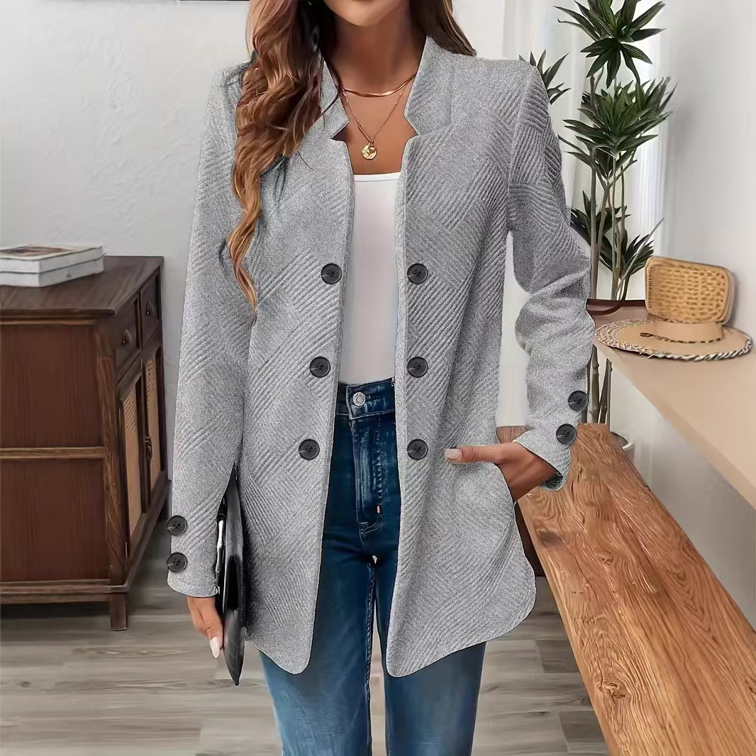 2025 가을, 겨울 유럽과 미국 여성 국경 새로운 패션 세 개의 더블 버튼 재킷 탑 슈트스토어 가기