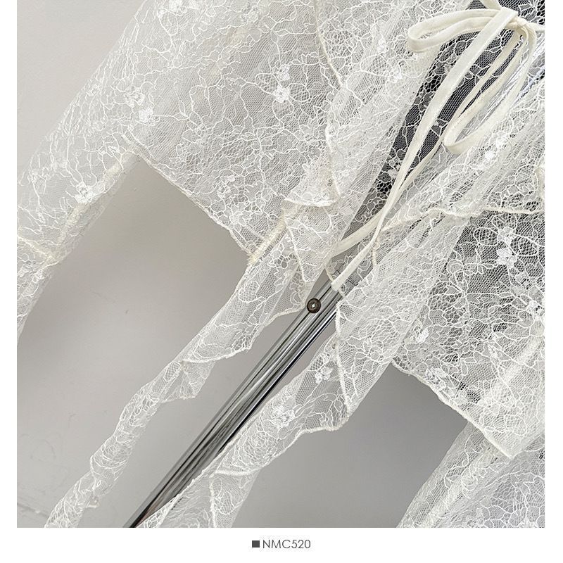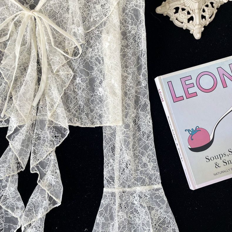 여성을위한 러플 레이스 업 짧은 레이스 카디건 여름 얇은 플레어 긴팔 쉬폰 코트 숄 탑스토어 가기