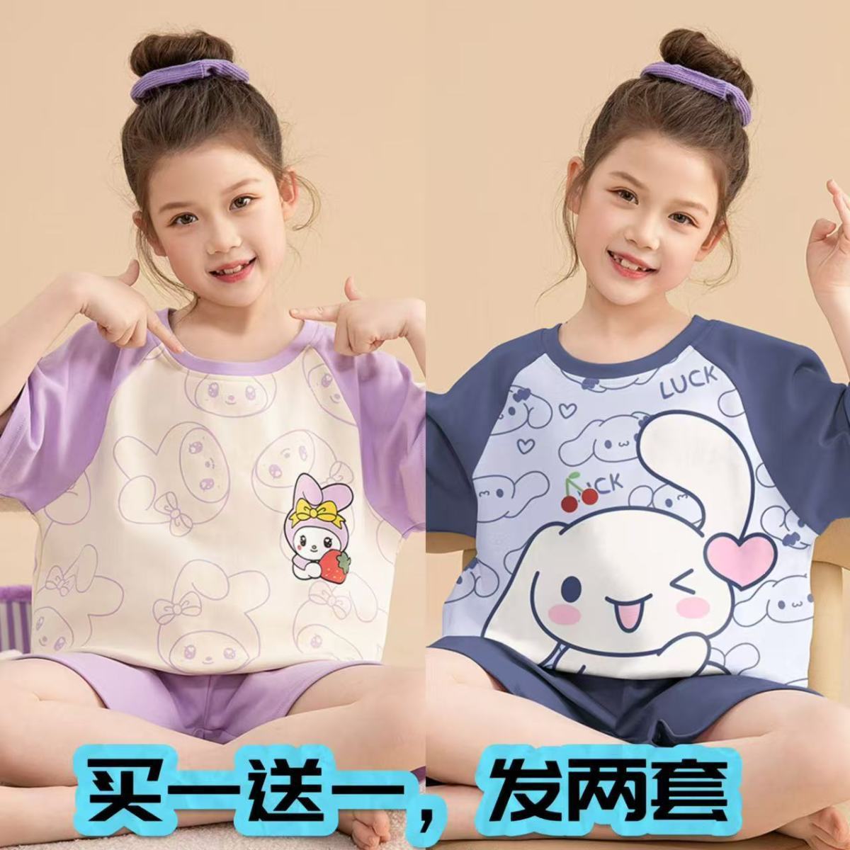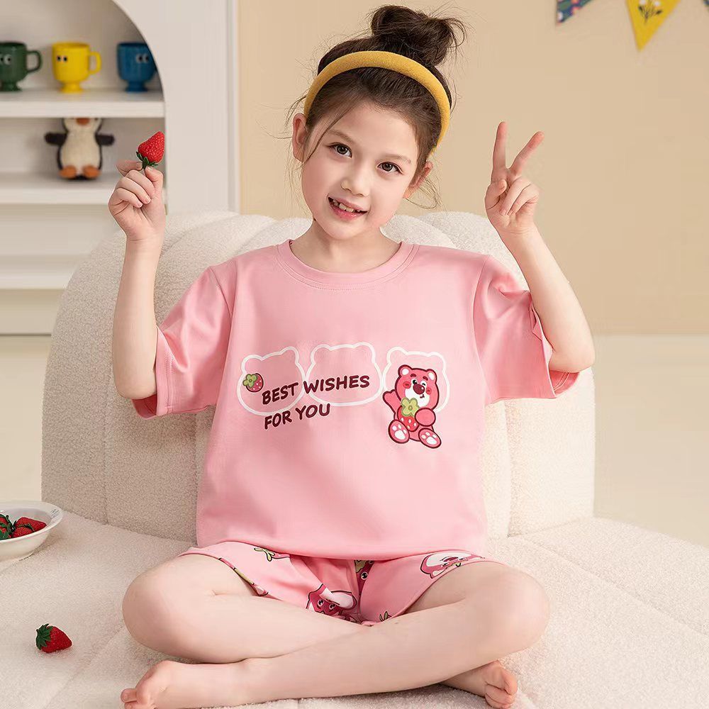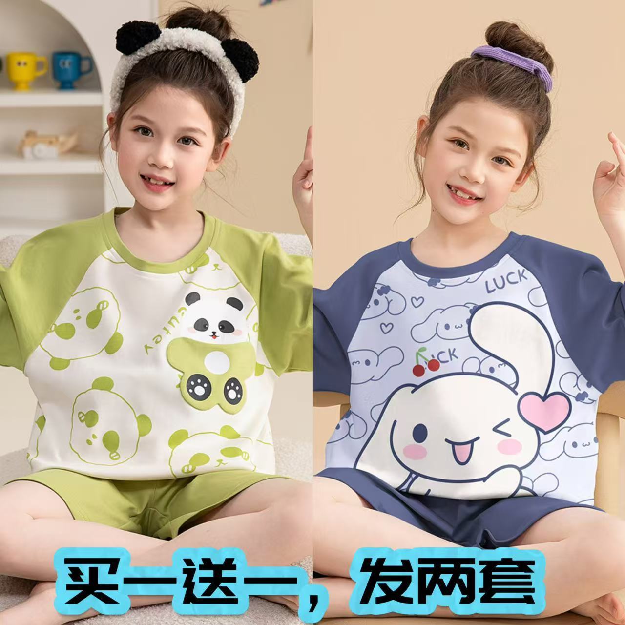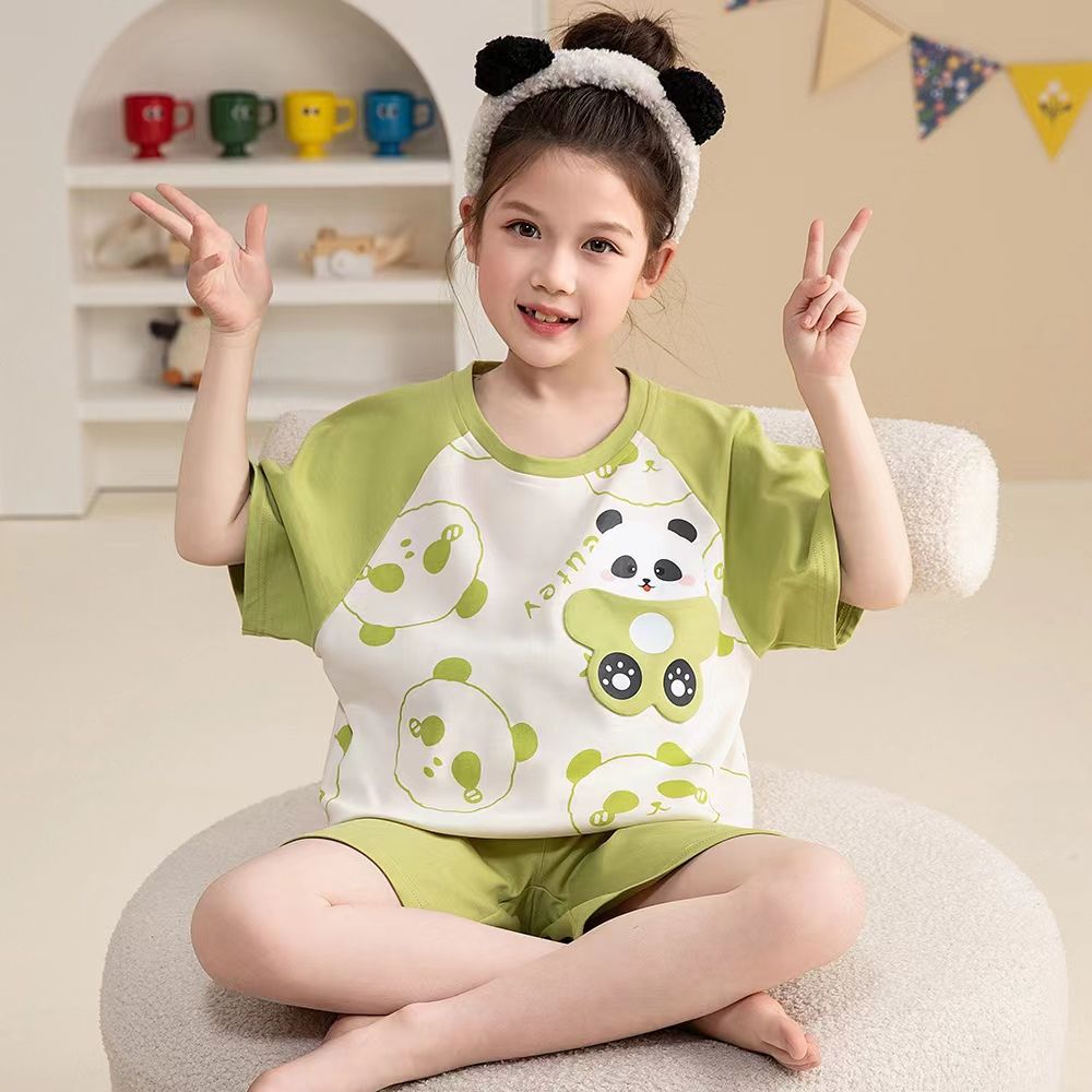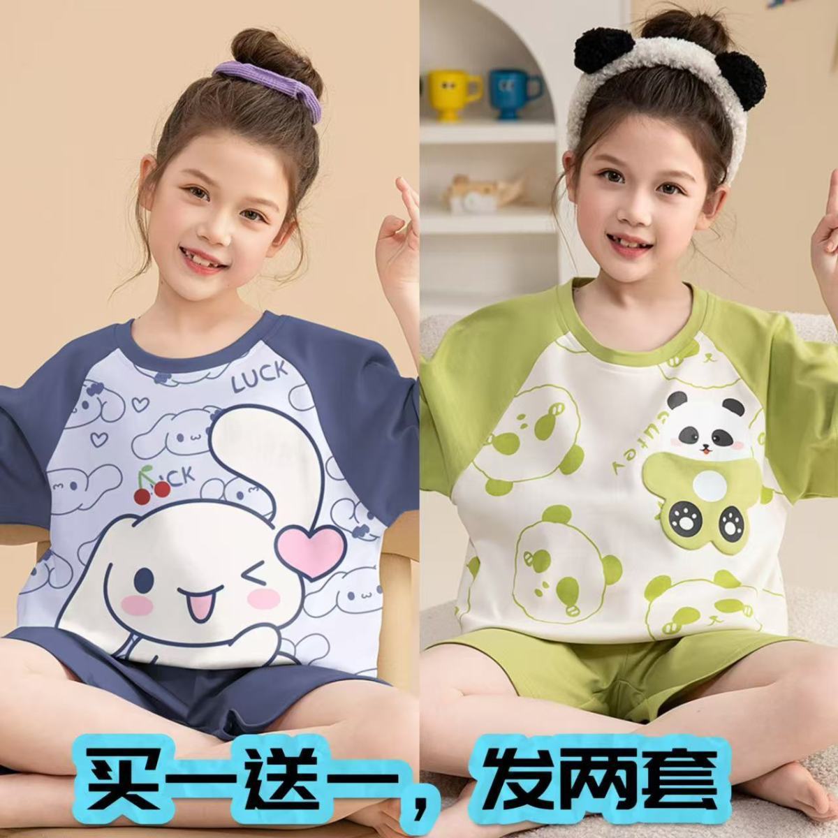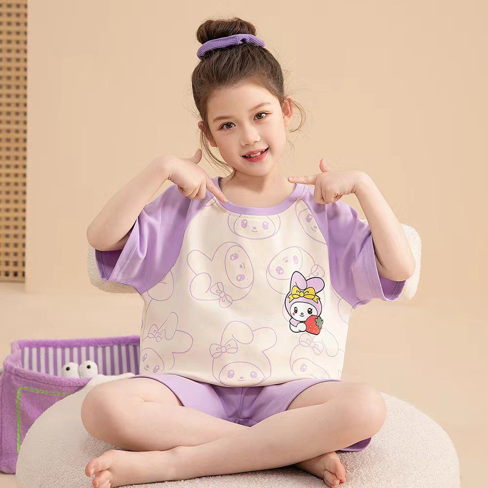 어린이 잠옷 소녀 여름 얇은 2025 새로운 가정 의류 여름 큰 어린이 에어컨 의류 세트 토끼 모피스토어 가기
