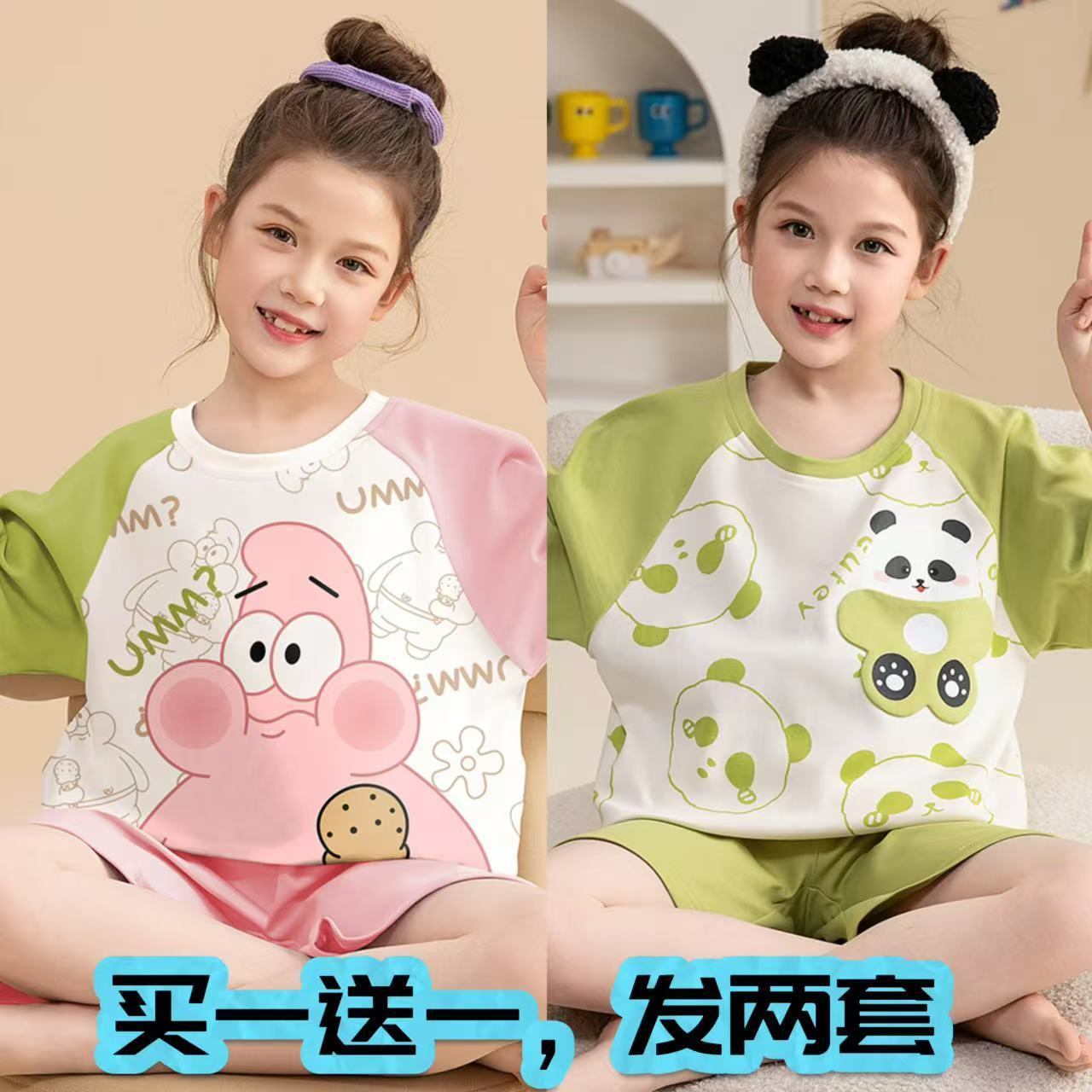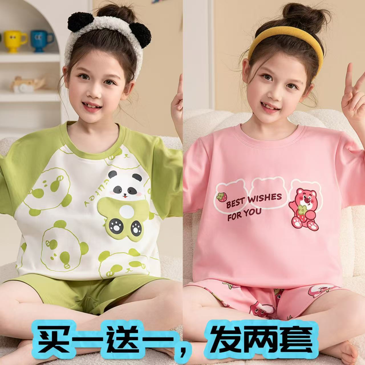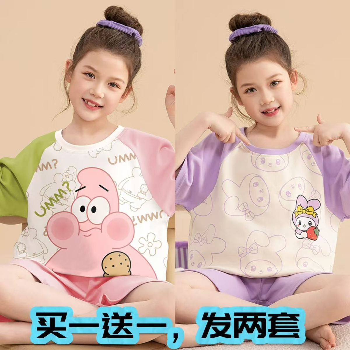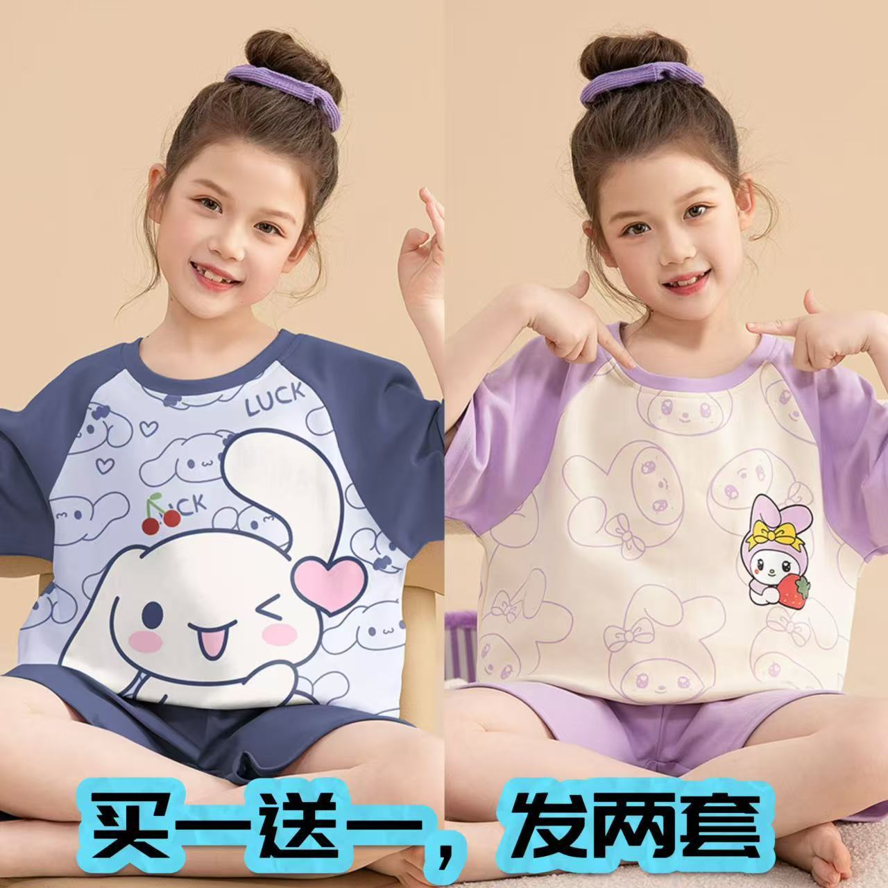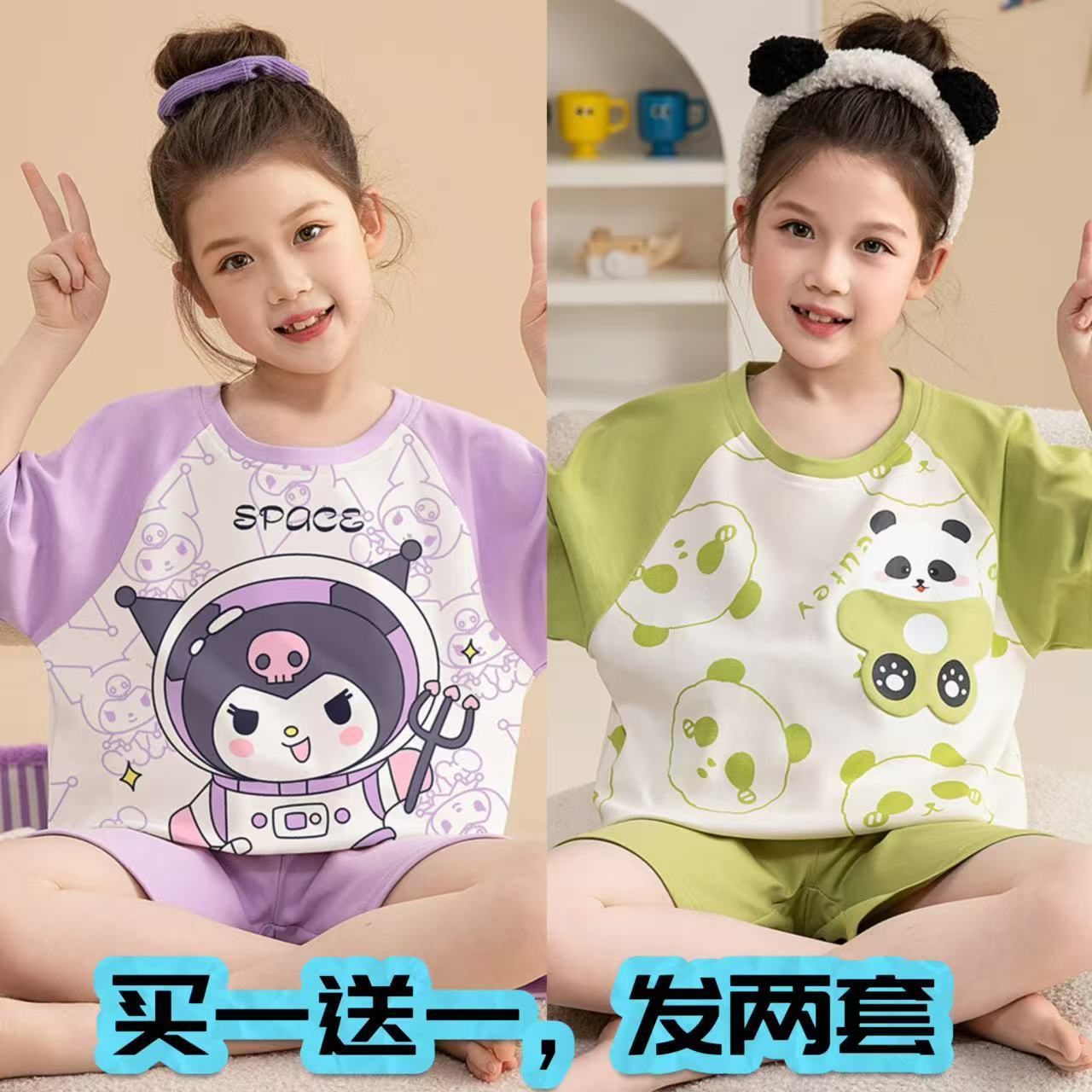 어린이 잠옷 소녀 여름 얇은 2025 새로운 가정 의류 여름 큰 어린이 에어컨 의류 세트 토끼 모피스토어 가기