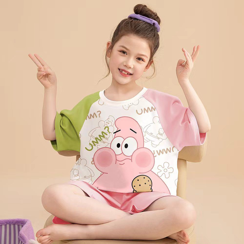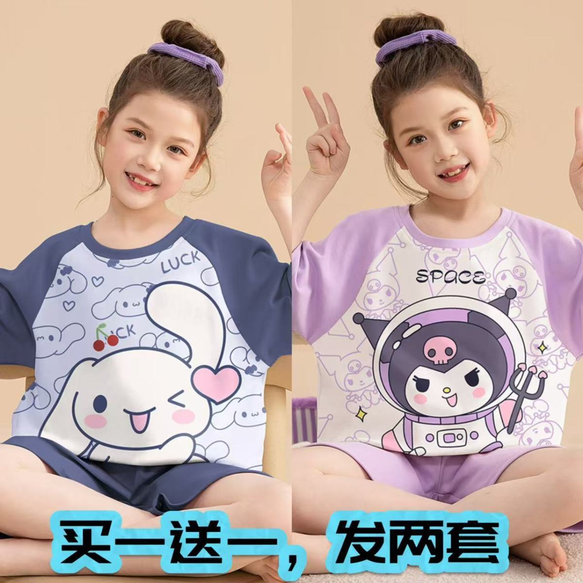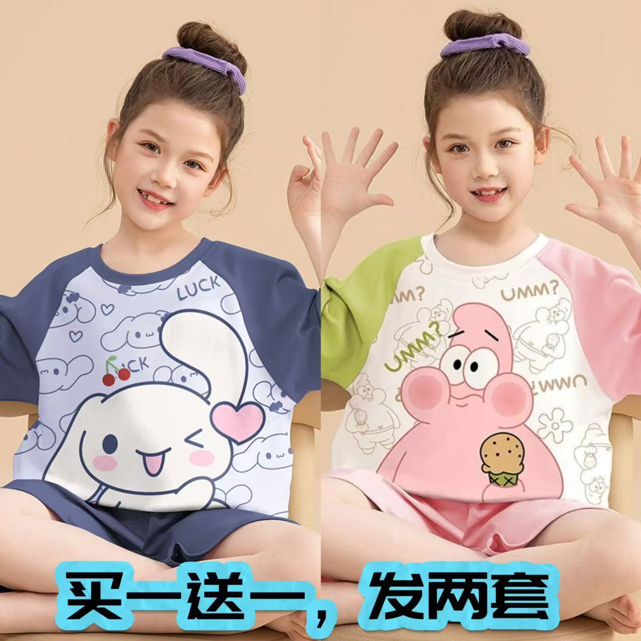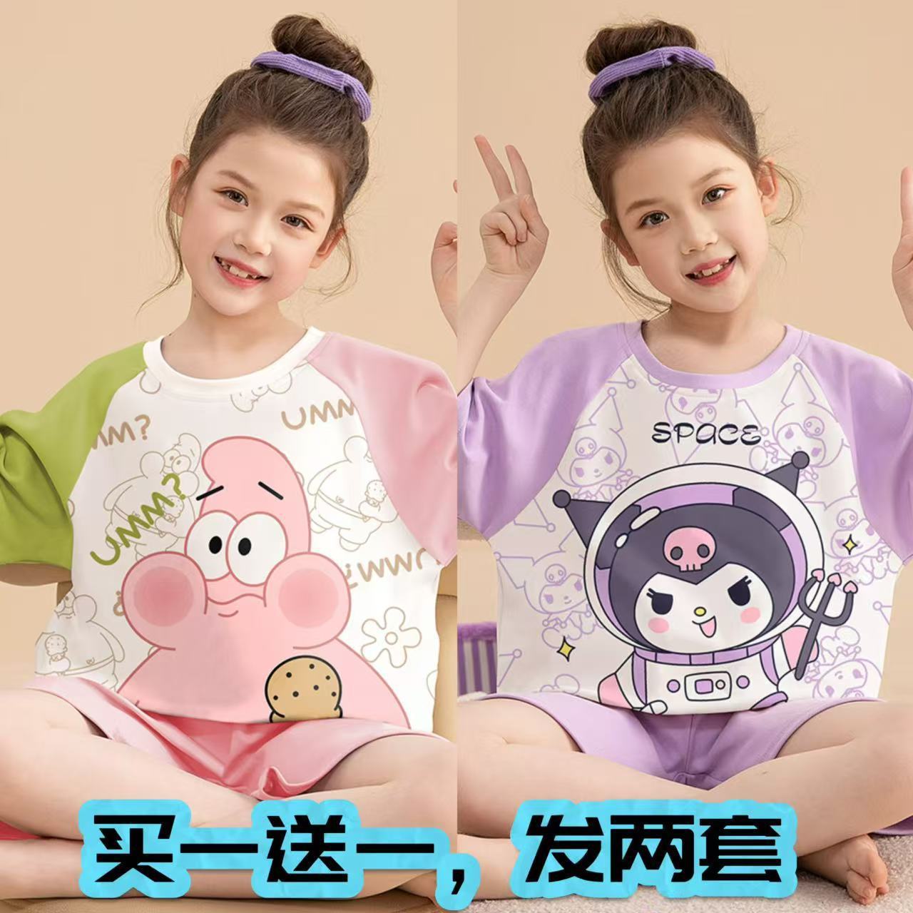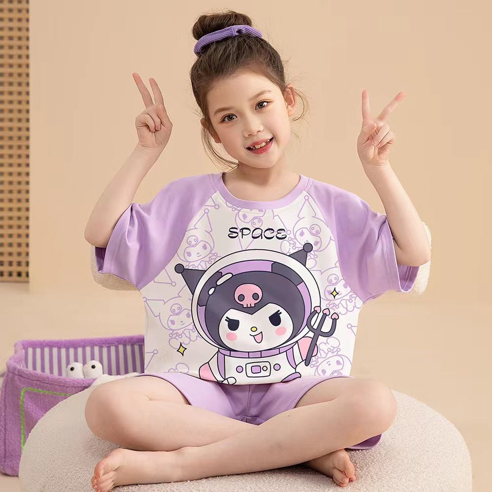 어린이 잠옷 소녀 여름 얇은 2025 새로운 가정 의류 여름 큰 어린이 에어컨 의류 세트 토끼 모피스토어 가기