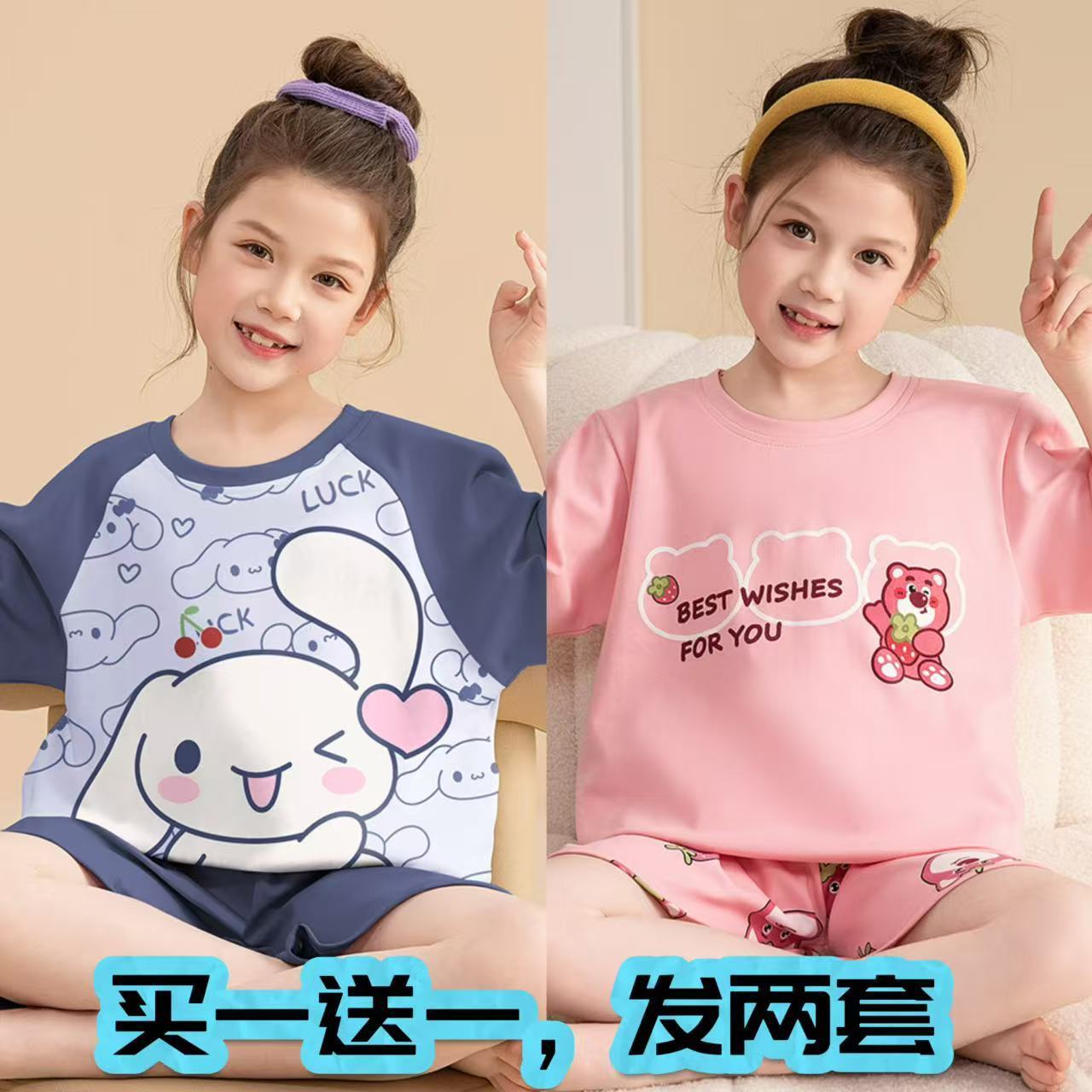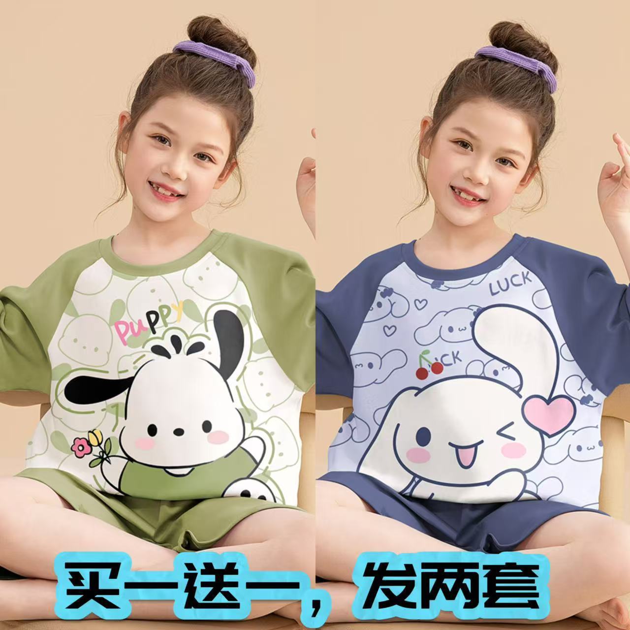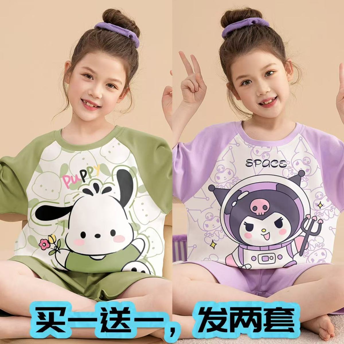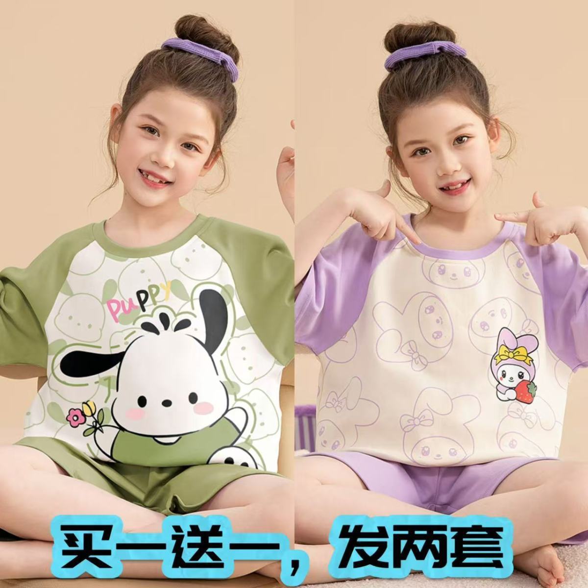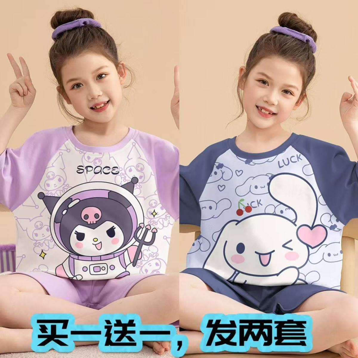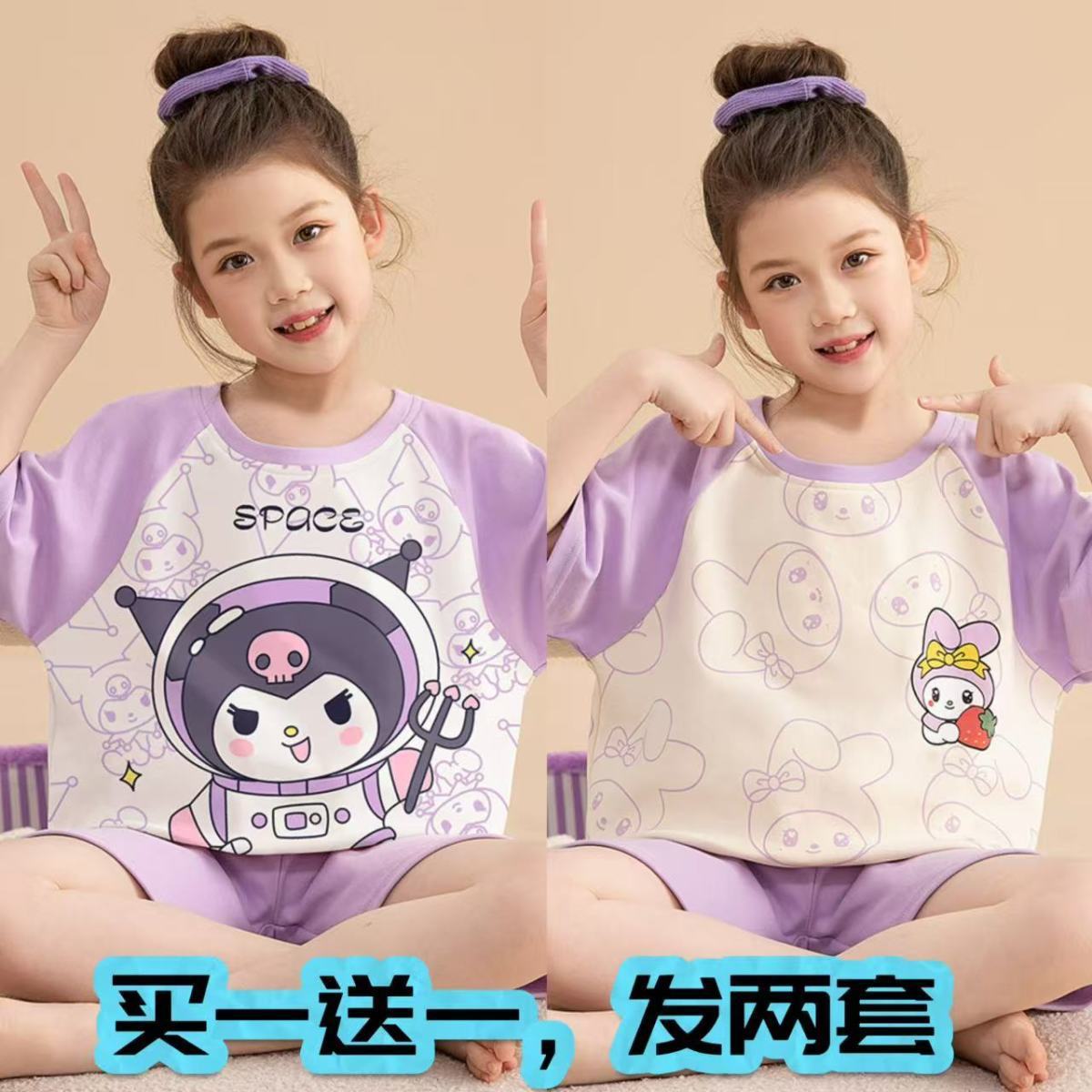 어린이 잠옷 소녀 여름 얇은 2025 새로운 가정 의류 여름 큰 어린이 에어컨 의류 세트 토끼 모피스토어 가기