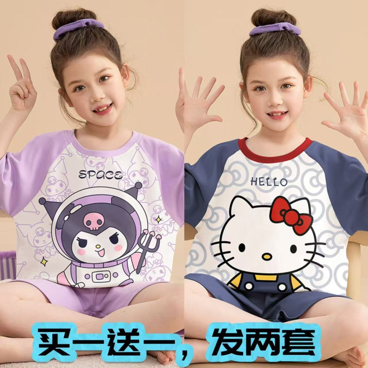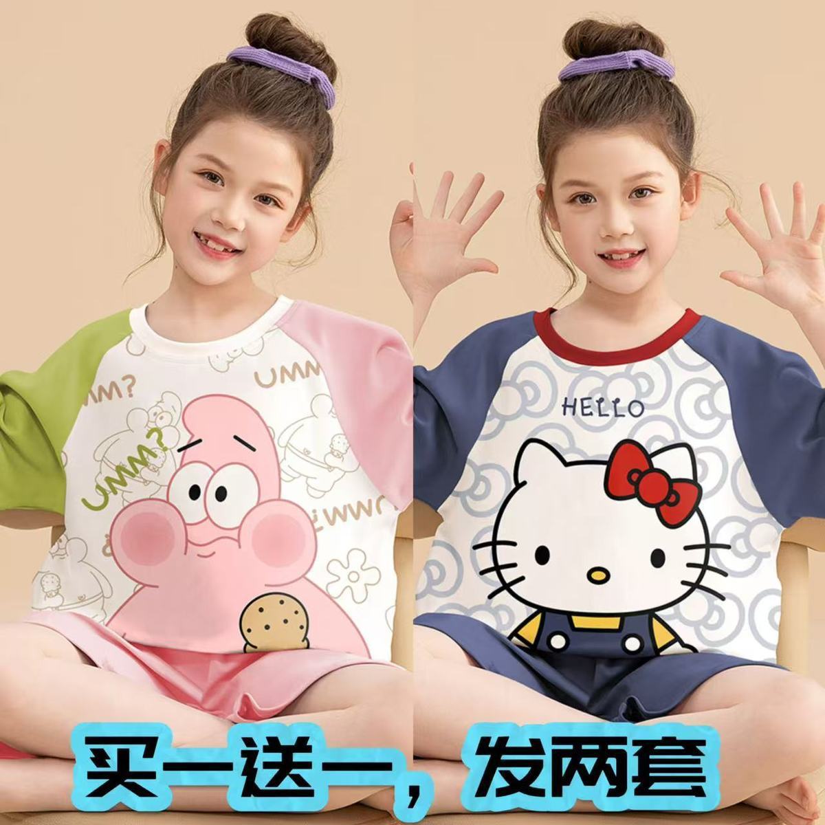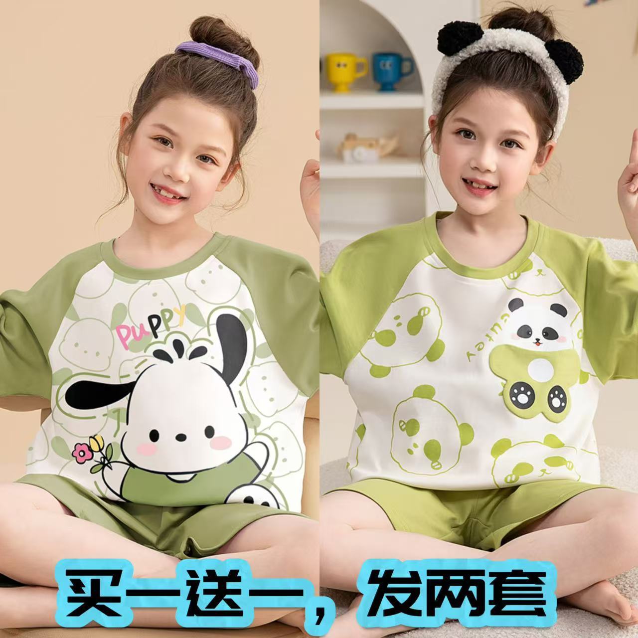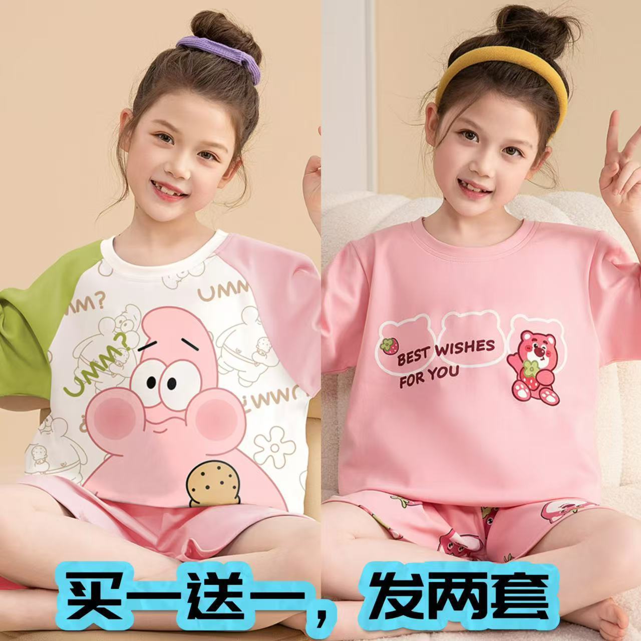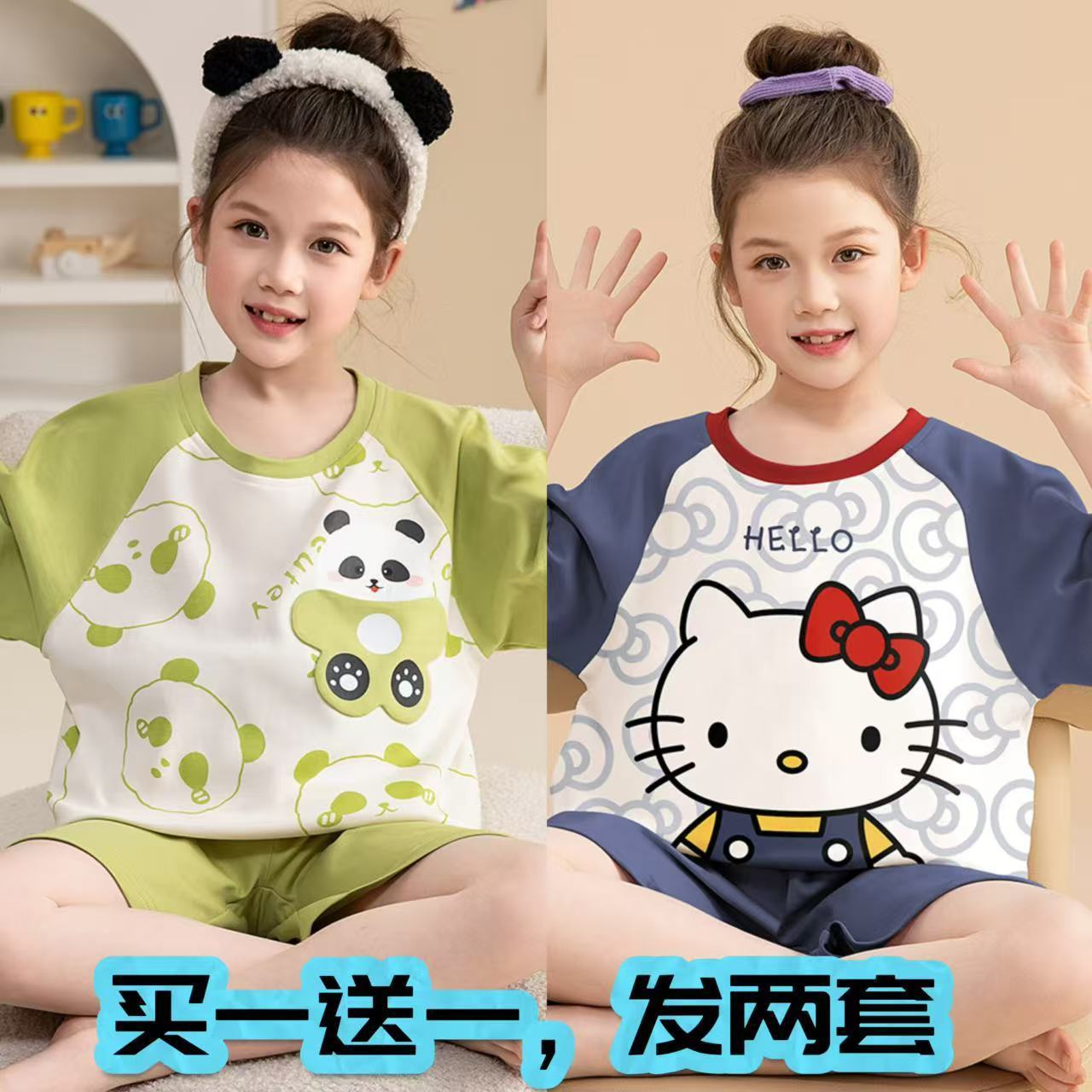 어린이 잠옷 소녀 여름 얇은 2025 새로운 가정 의류 여름 큰 어린이 에어컨 의류 세트 토끼 모피스토어 가기