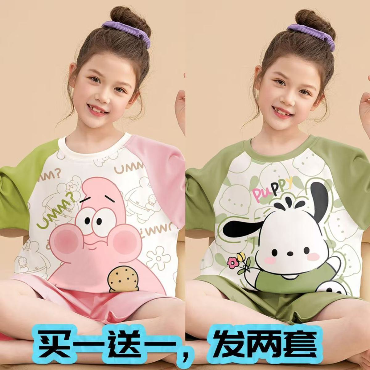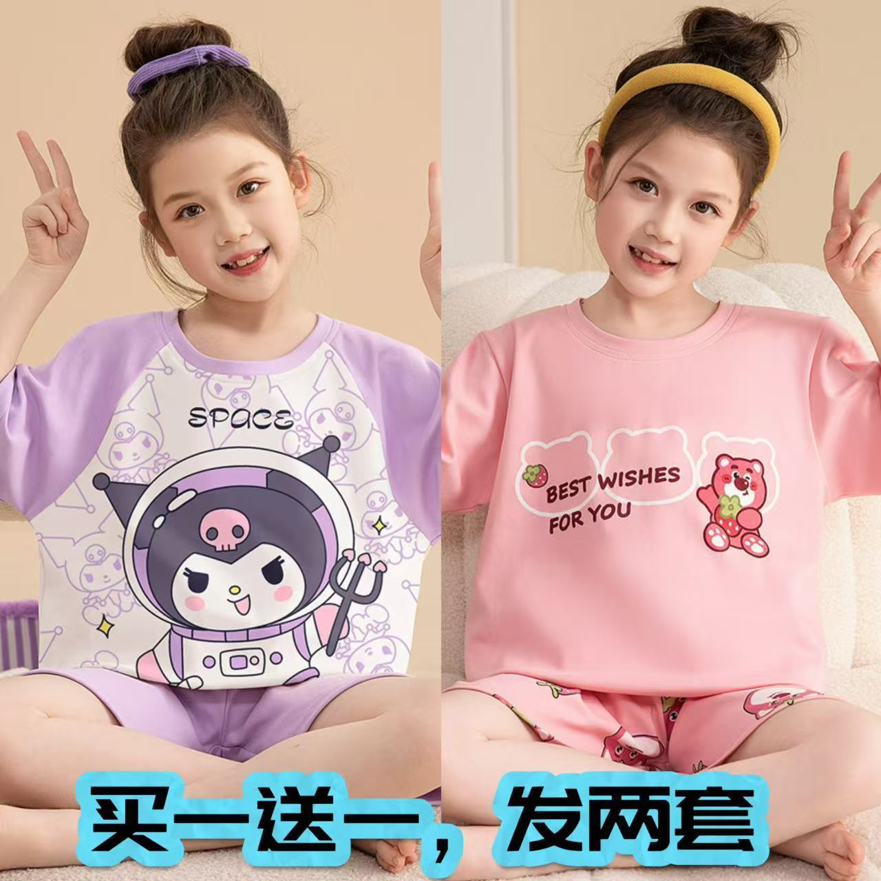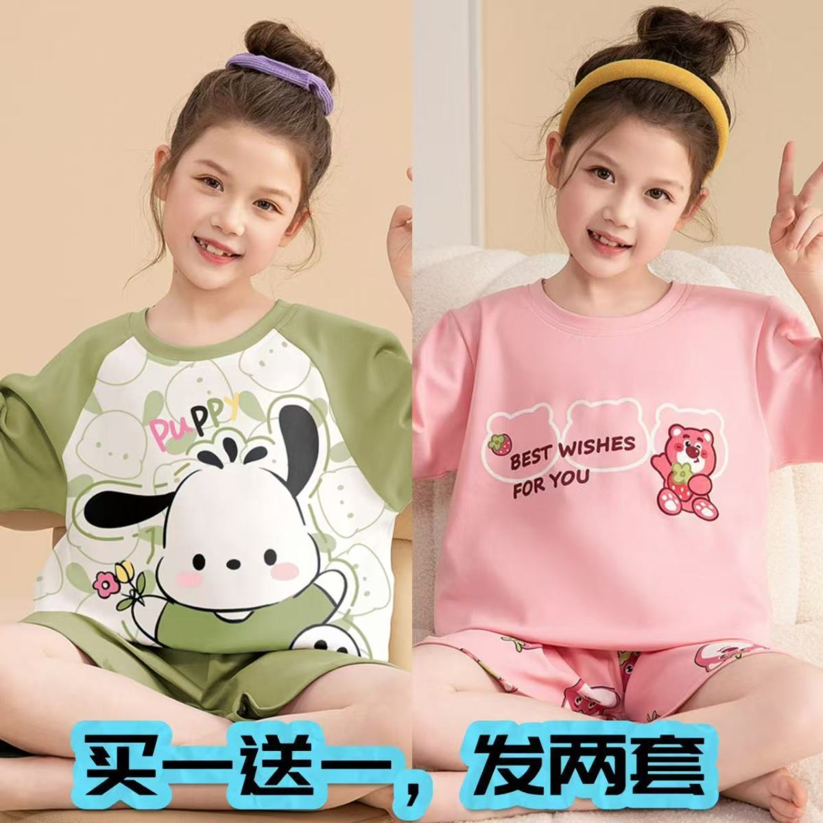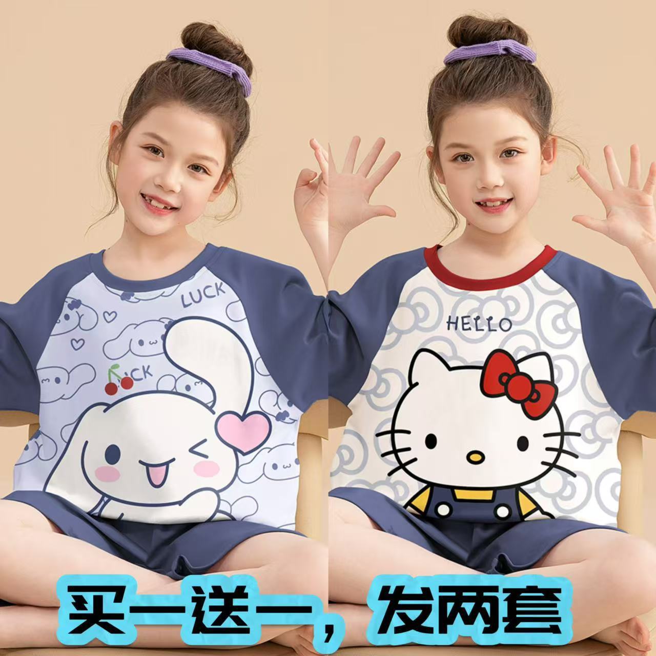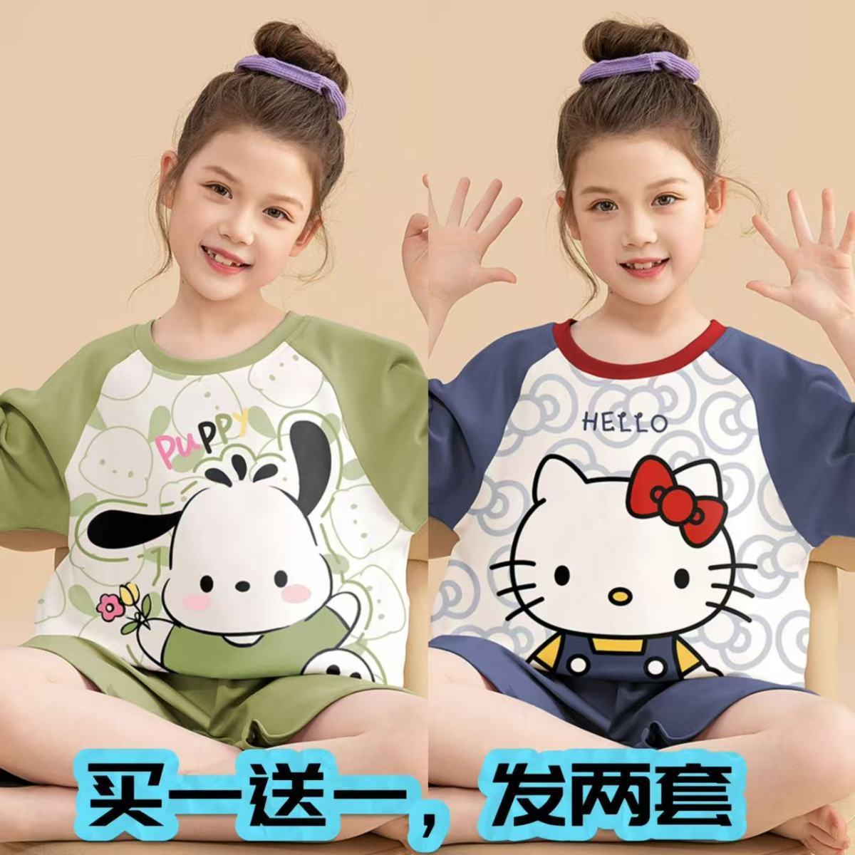 어린이 잠옷 소녀 여름 얇은 2025 새로운 가정 의류 여름 큰 어린이 에어컨 의류 세트 토끼 모피스토어 가기