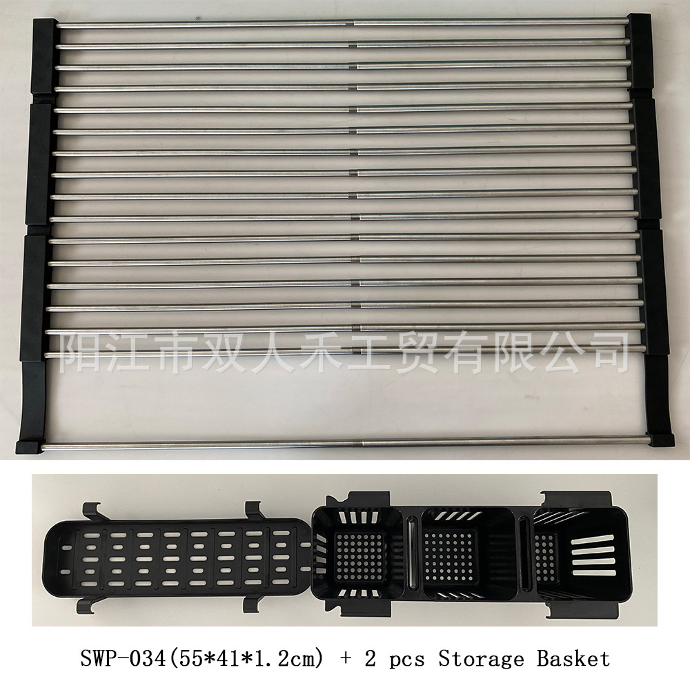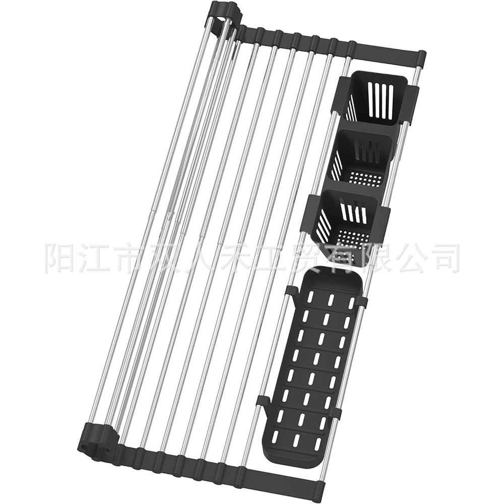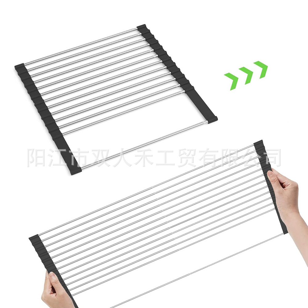 주방 텔레스코픽 스테인레스 스틸 배수 랙 싱크대 과일 및 야채 롤러 블라인드 배수 랙 접이식 가정용 그릇 및 접시 컵 보관 랙