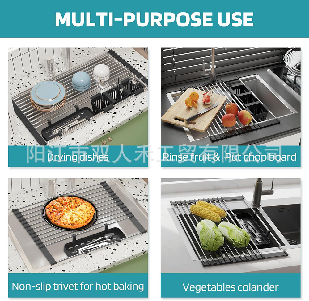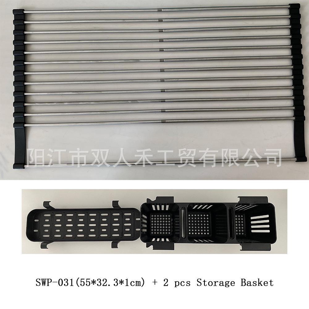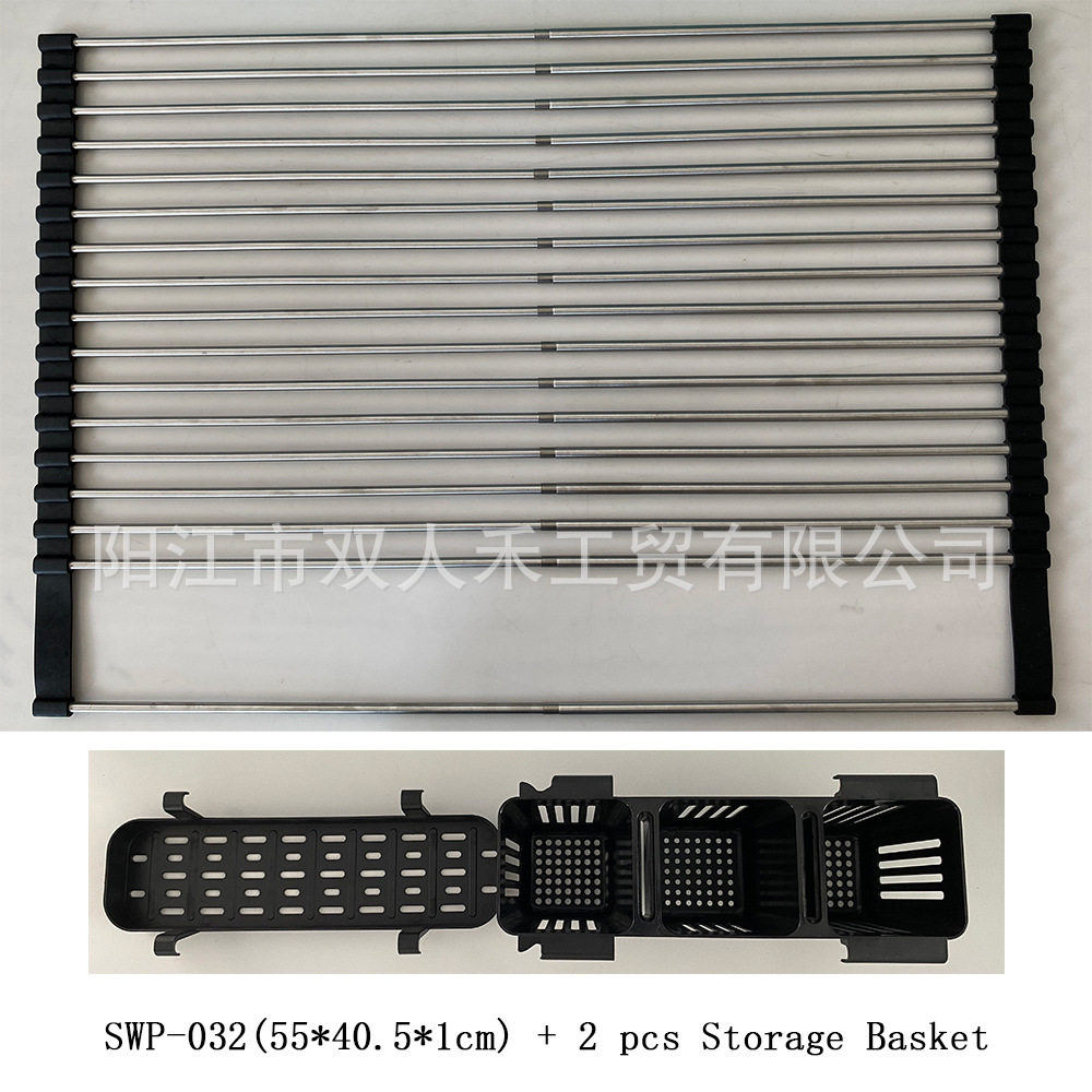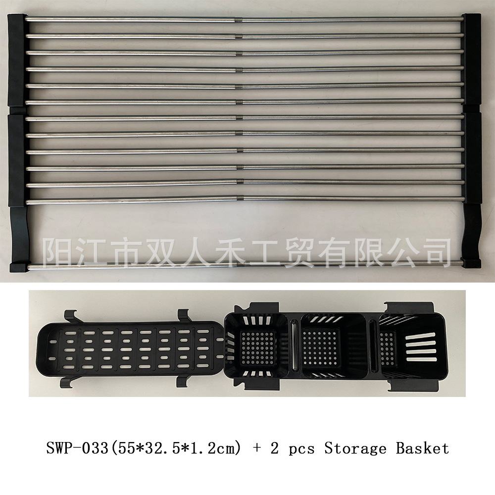 주방 텔레스코픽 스테인레스 스틸 배수 랙 싱크대 과일 및 야채 롤러 블라인드 배수 랙 접이식 가정용 그릇 및 접시 컵 보관 랙