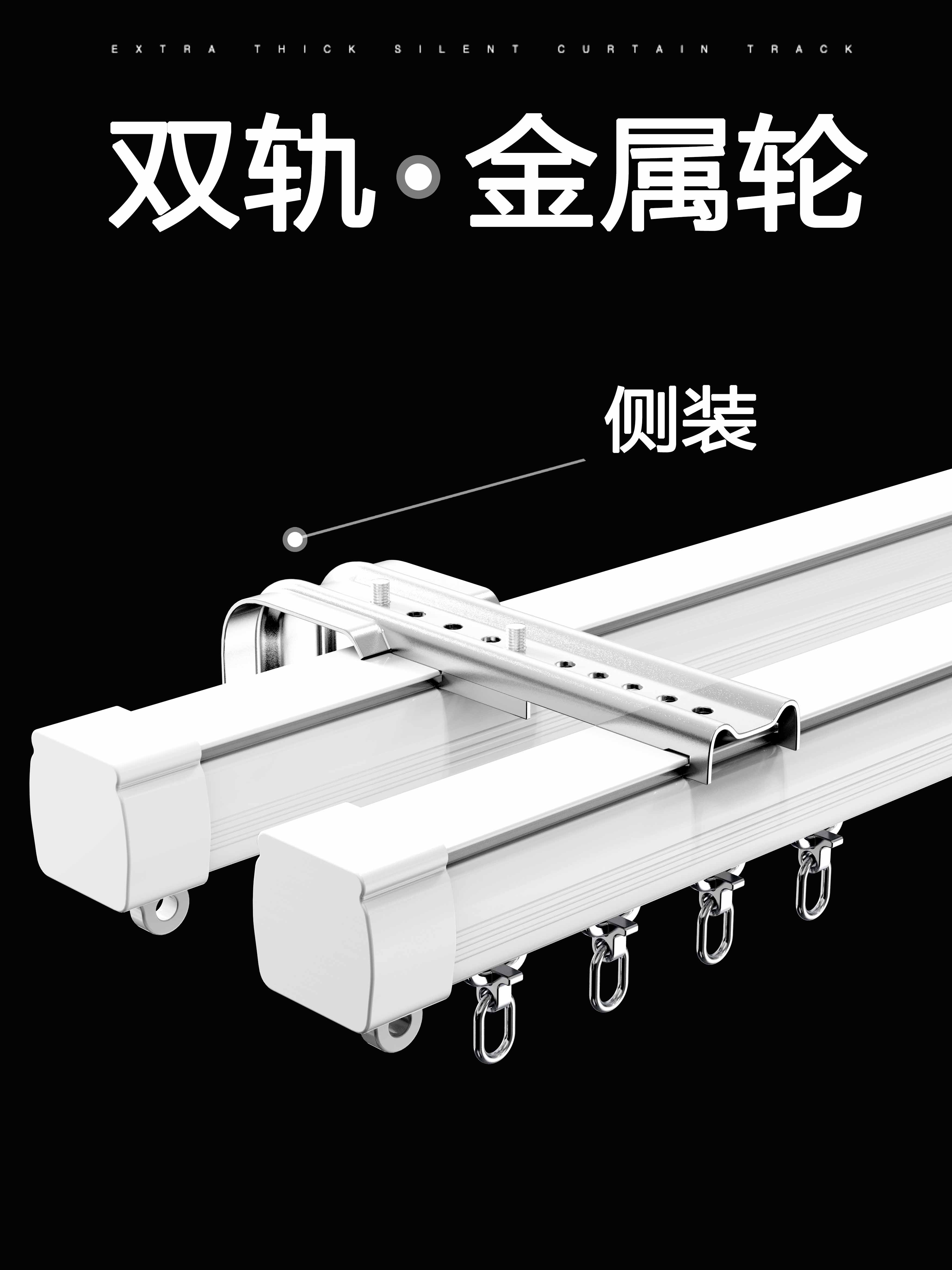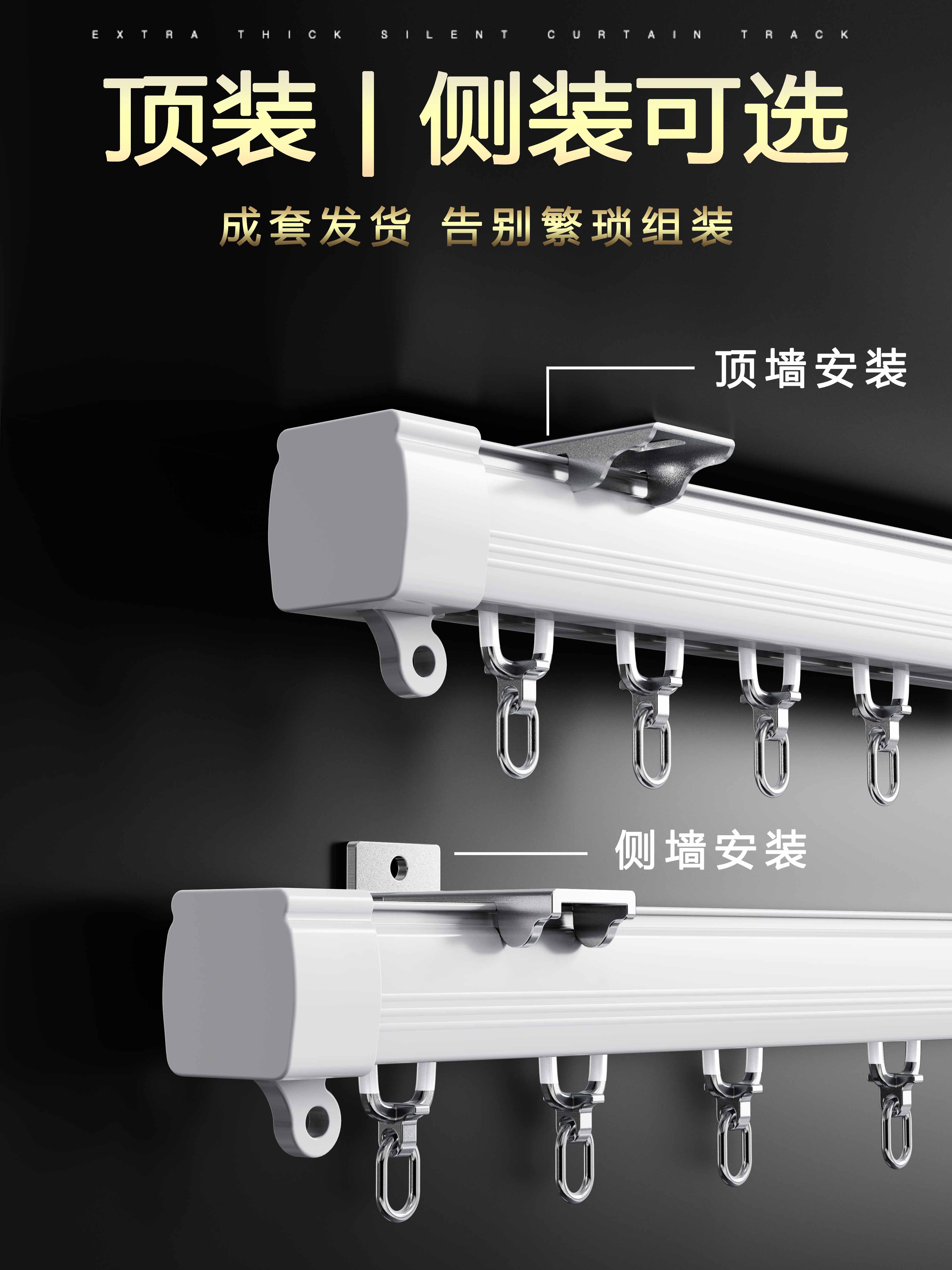 무소음 커튼 트랙 풀리 탑 마운트 사이드 마운트 커튼 레일 슬라이드 레일 세트 싱글 및 더블 레일 후크 슬라이드