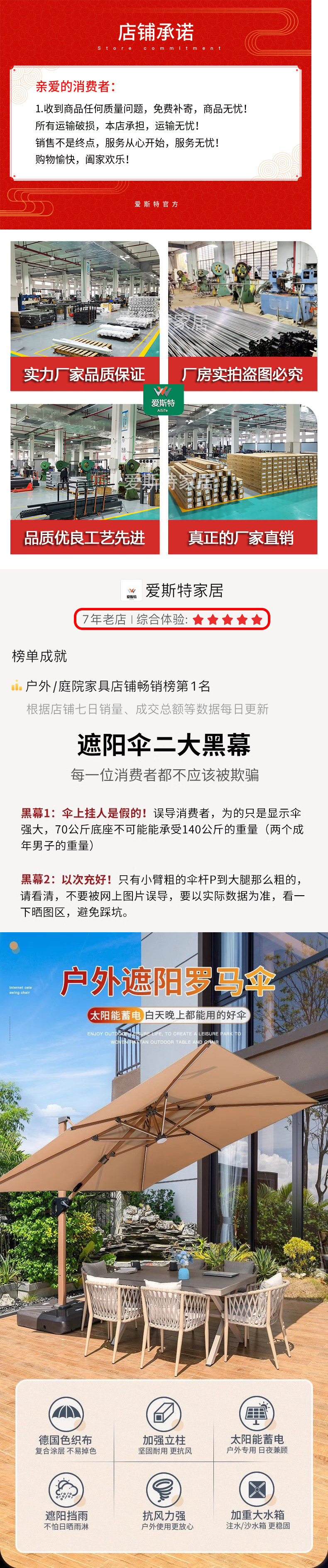 야외 파라솔, 안뜰 우산, 야외 대형 태양 우산, 야외 스톨 자외선 차단 로마 우산, 빌라 테라스 발코니 우산스토어 가기