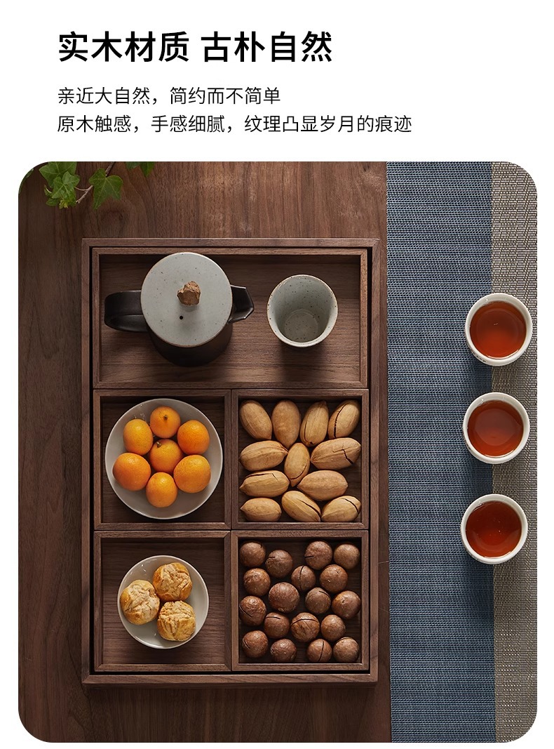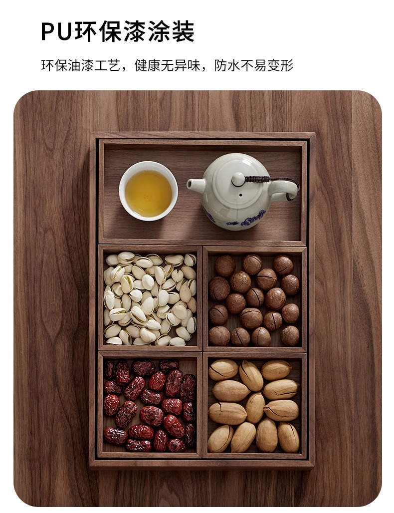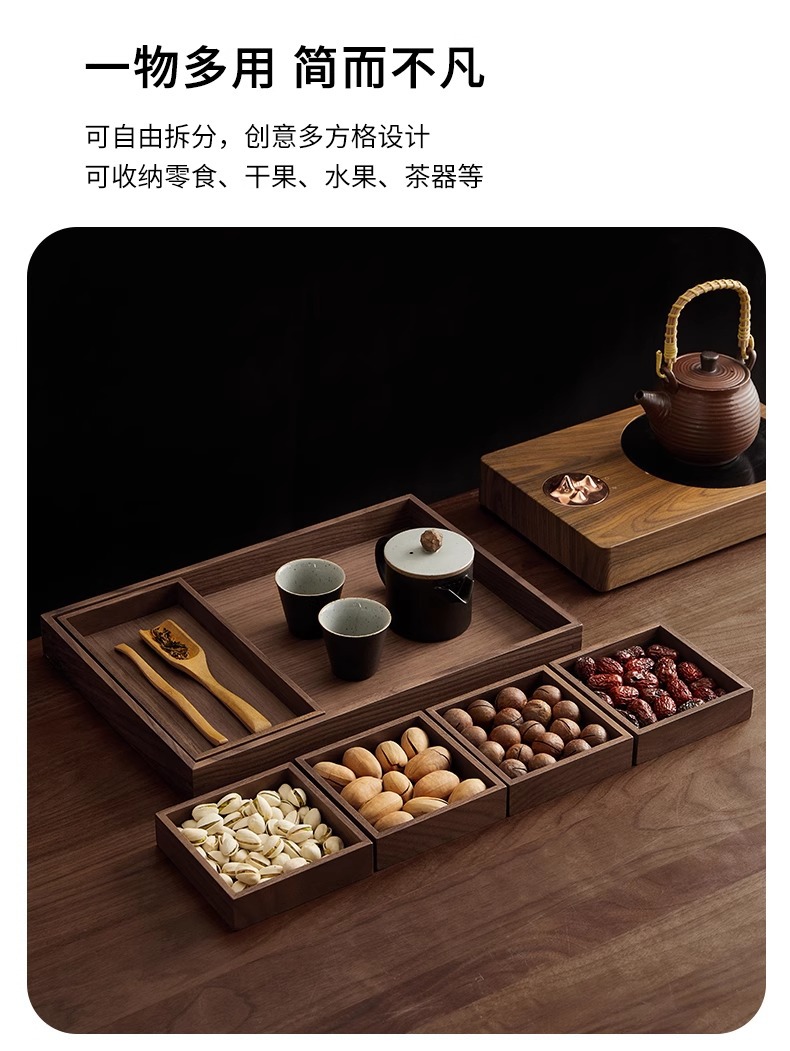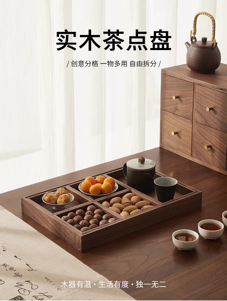 말린 과일 스낵 트레이 가정용 호두 단단한 나무 고급스러운 빛 럭셔리 복고풍 새로운 중국 차 세트 스낵 트레이스토어 가기