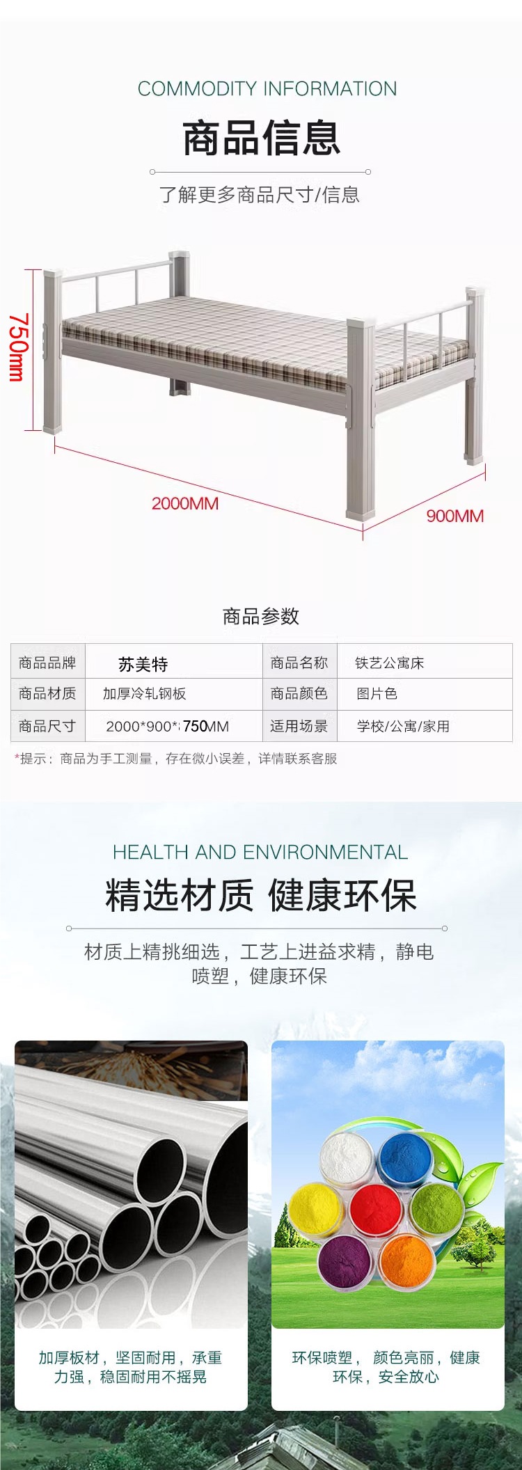 단층 철제 침대 싱글 침대 학생 직원 기숙사 철제 프레임 침대 더블 침대 1.35m 철제 이층 침대스토어 가기