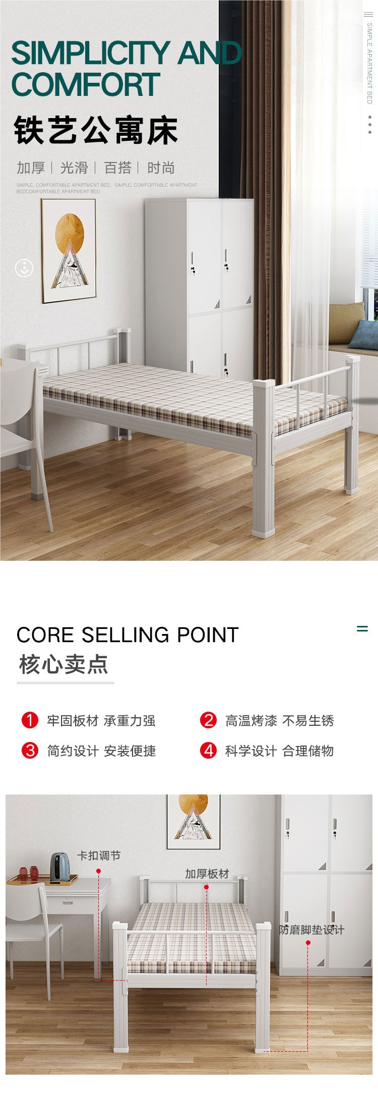 단층 철제 침대 싱글 침대 학생 직원 기숙사 철제 프레임 침대 더블 침대 1.35m 철제 이층 침대