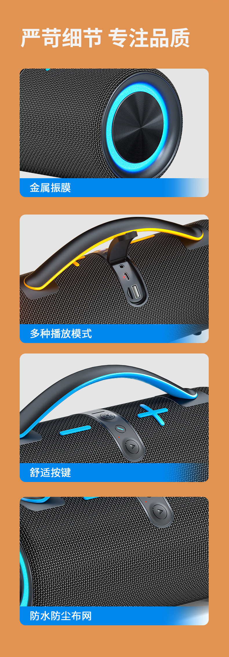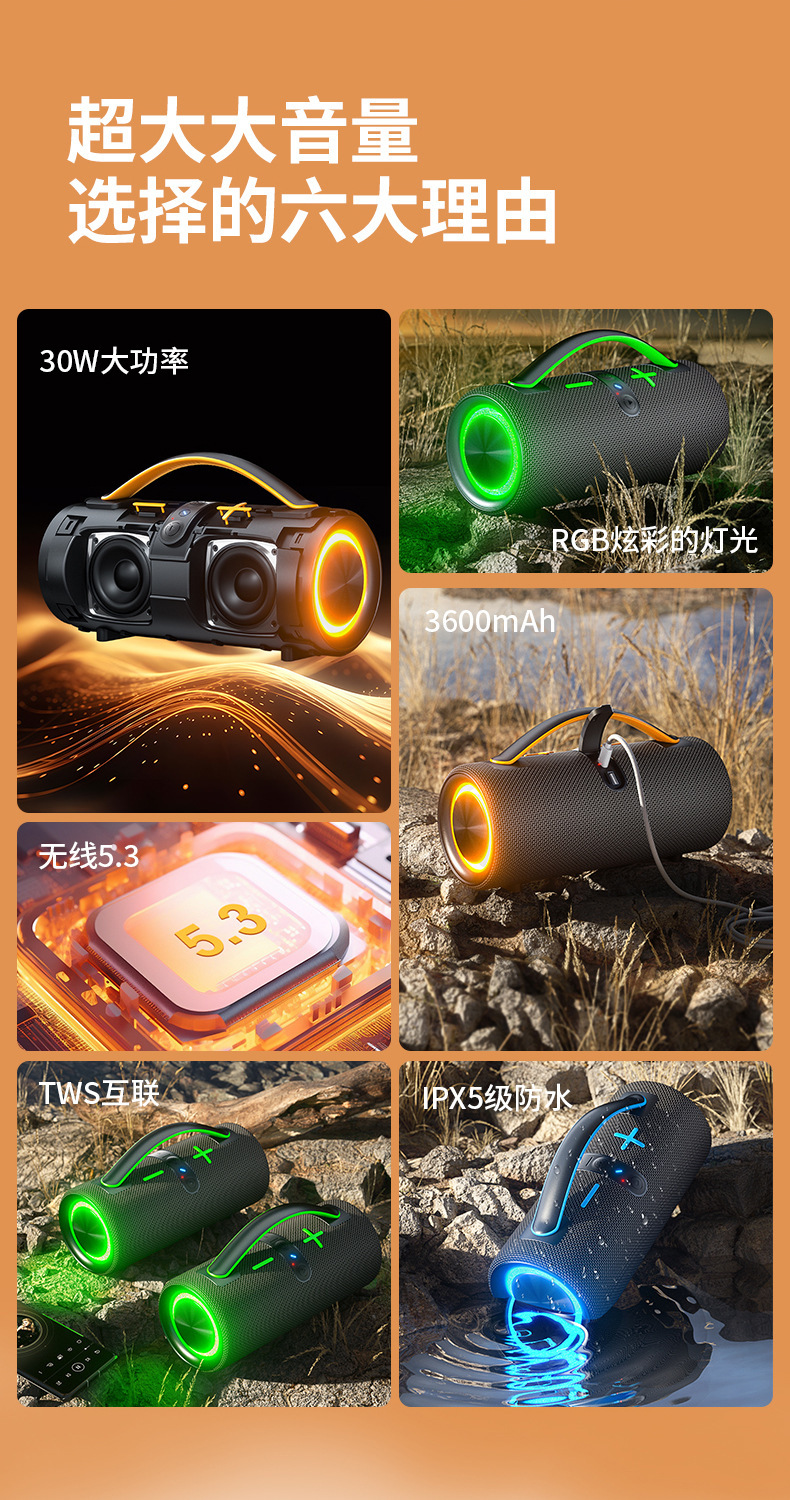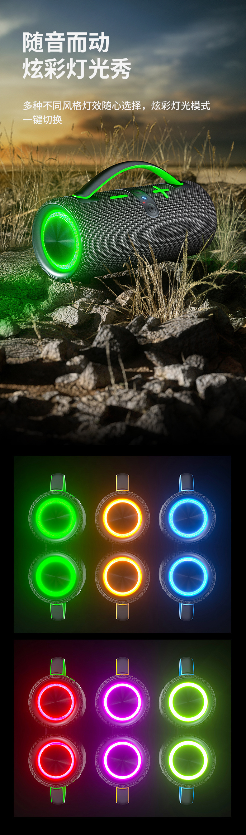 무선 야외 블루투스 스피커 방수 서브우퍼 RGB 조명 휴대용 블루투스 스피커 스테레오 고음량스토어 가기