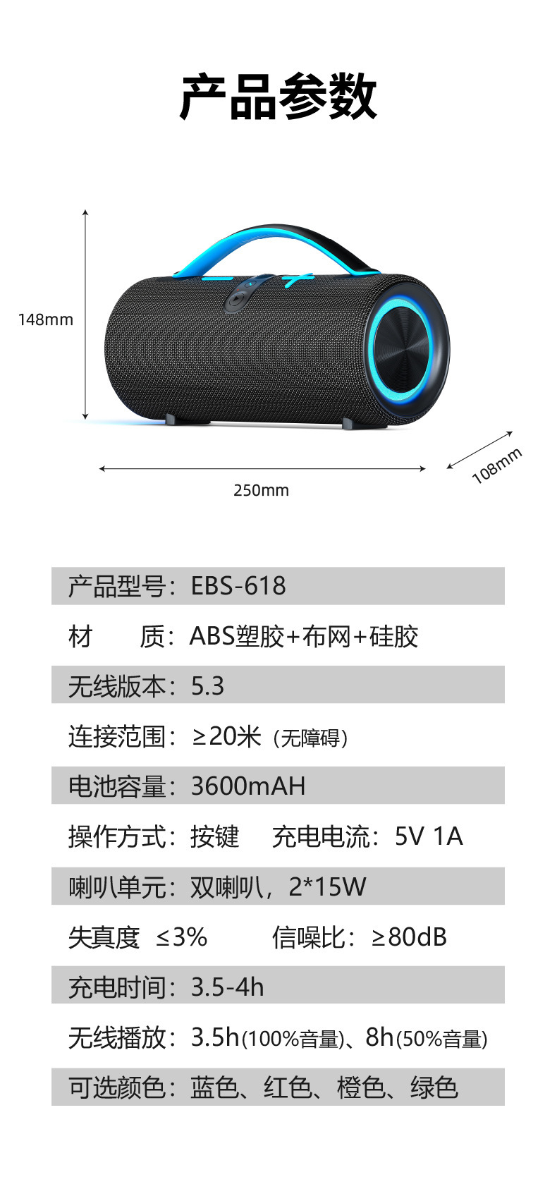 무선 야외 블루투스 스피커 방수 서브우퍼 RGB 조명 휴대용 블루투스 스피커 스테레오 고음량