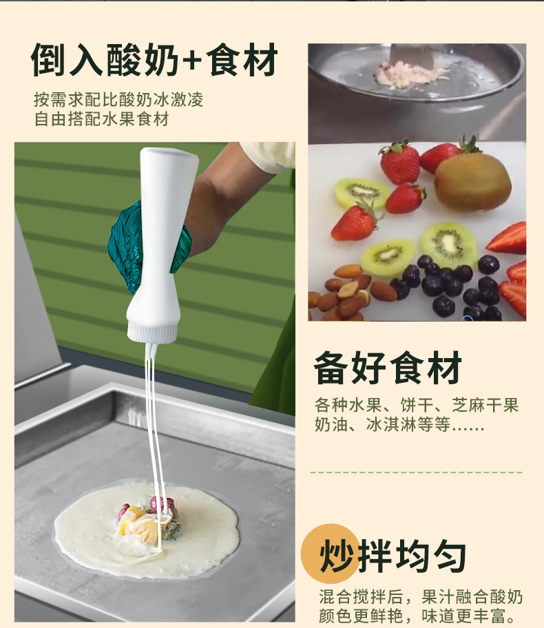 제조업체의 도로변 두껍게 자른 요거트 기계, 상업용 아이스 크레이프 기계, 스노우 아이스크림, 과일 아이스크림 롤 스무디 기계